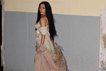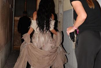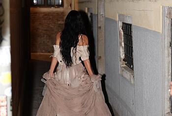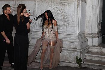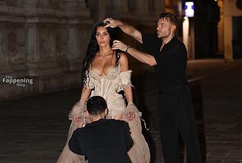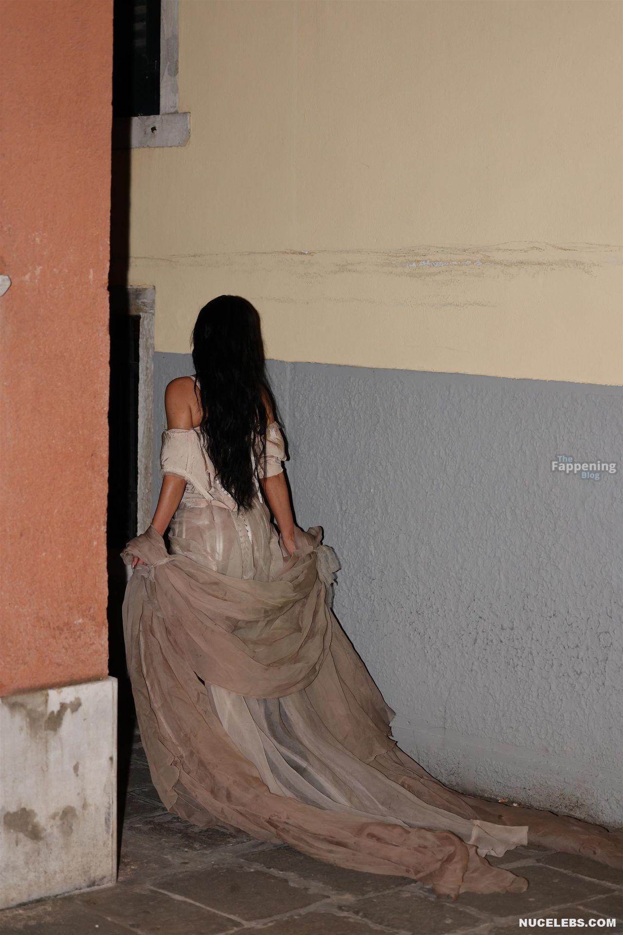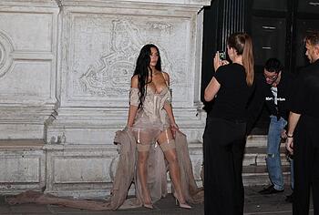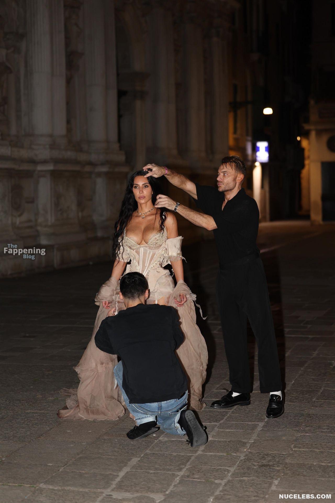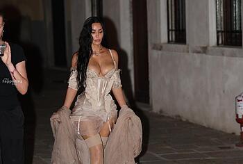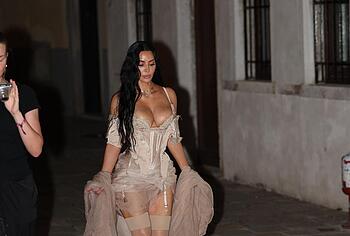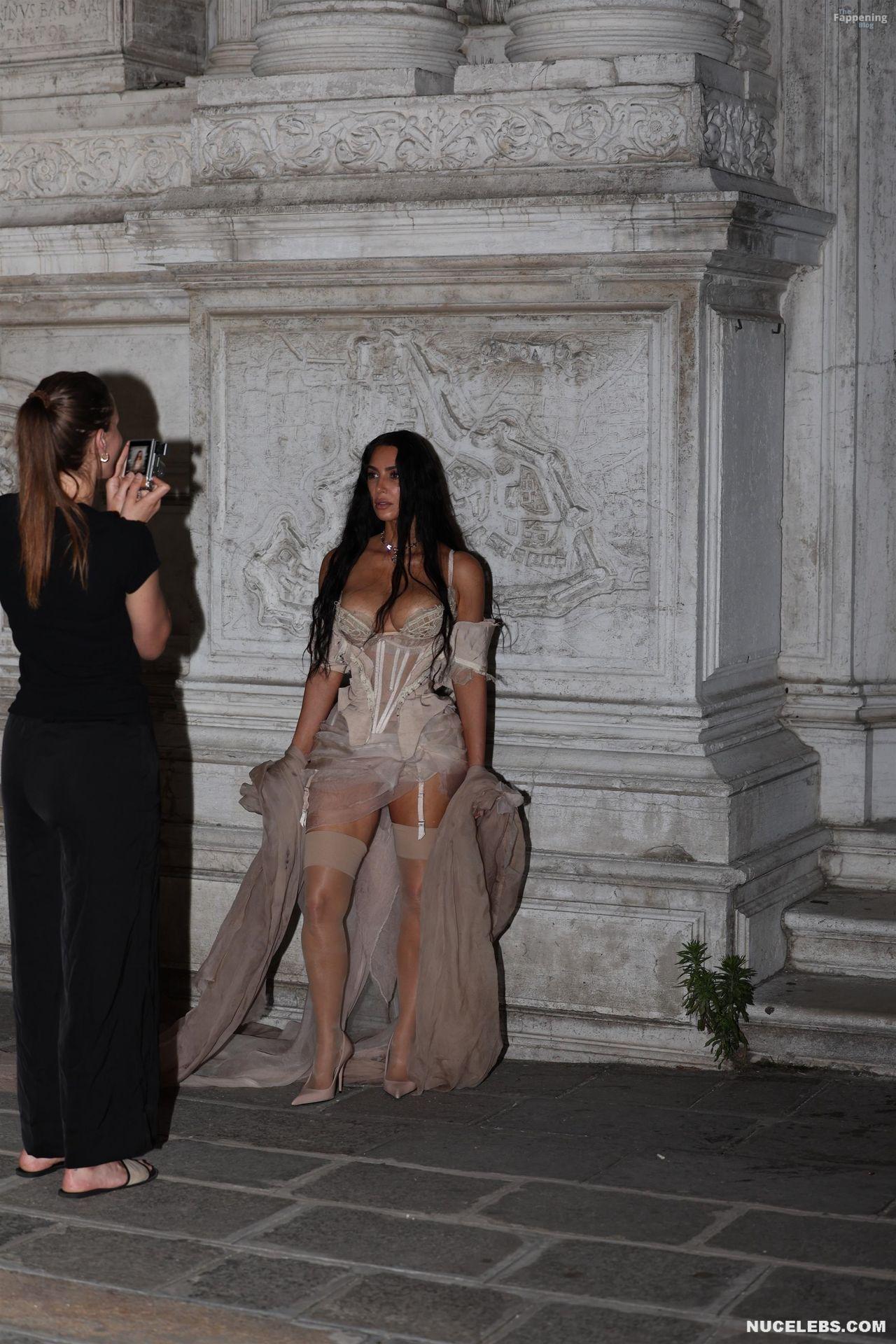 Kim Kardashian loves to be the center of attention and her outfits certainly attract all eyes! This TV star loves to spoil us by appearing in tiny bikinis. However, her recent photo shoot in a see through outfit turned out to be absolutely stunning! So, she posed in a gray transparent dress and stockings. But the neckline of the dress was incredibly deep! So much so that Kim Kardashian nude boobs were almost completely on display! It would have taken just one awkward movement and this celebrity nude tits would have jumped out!