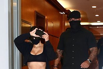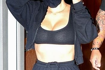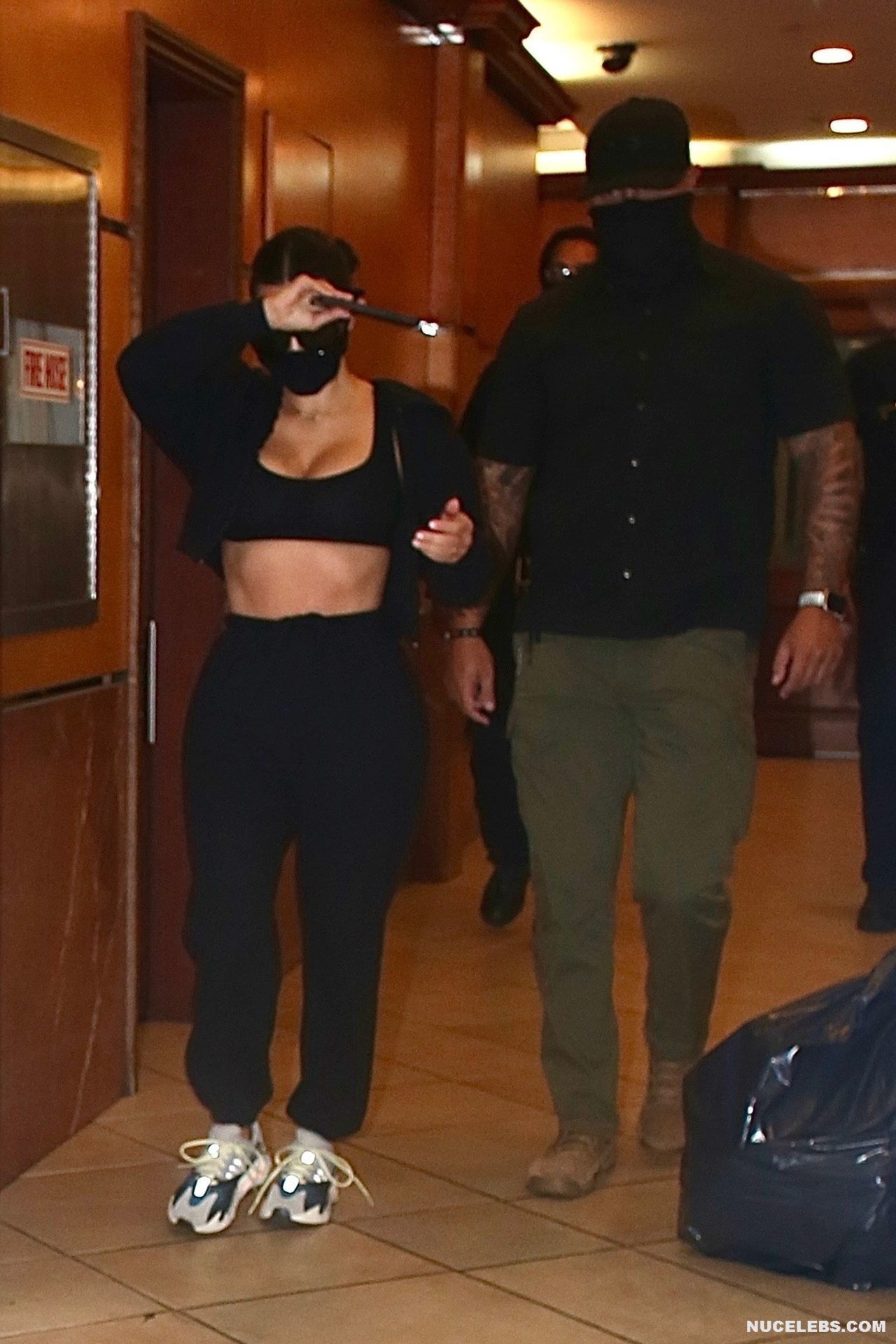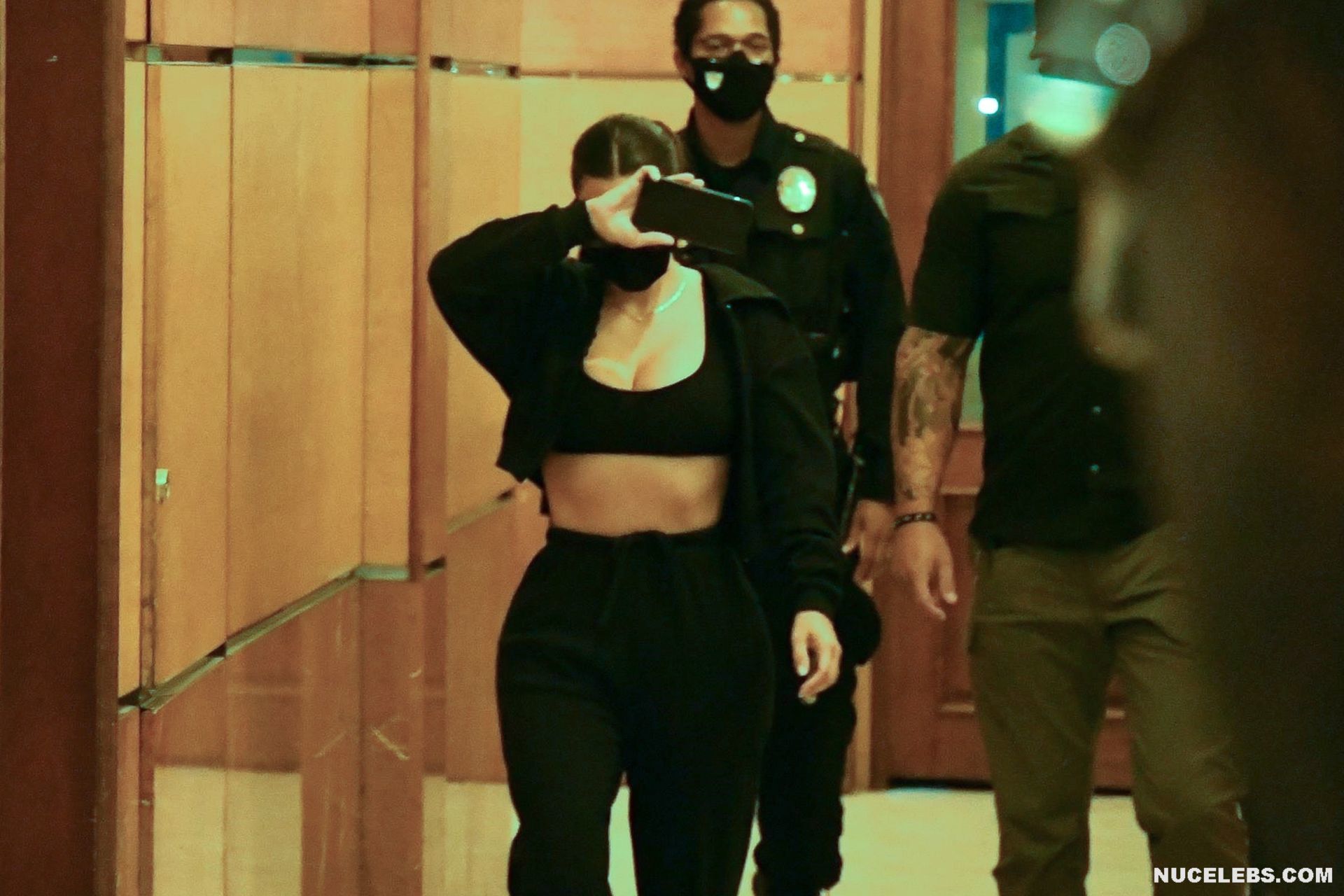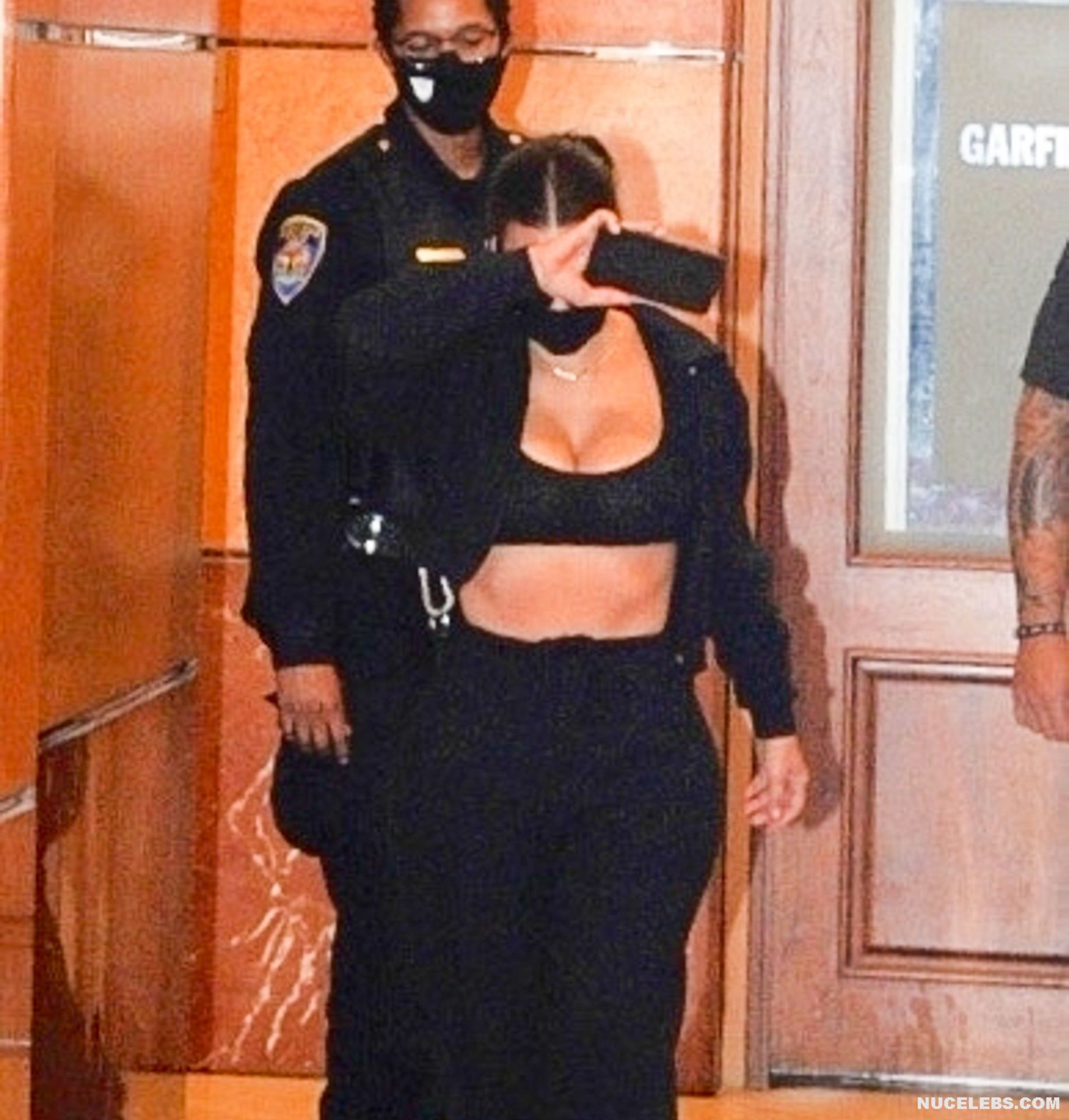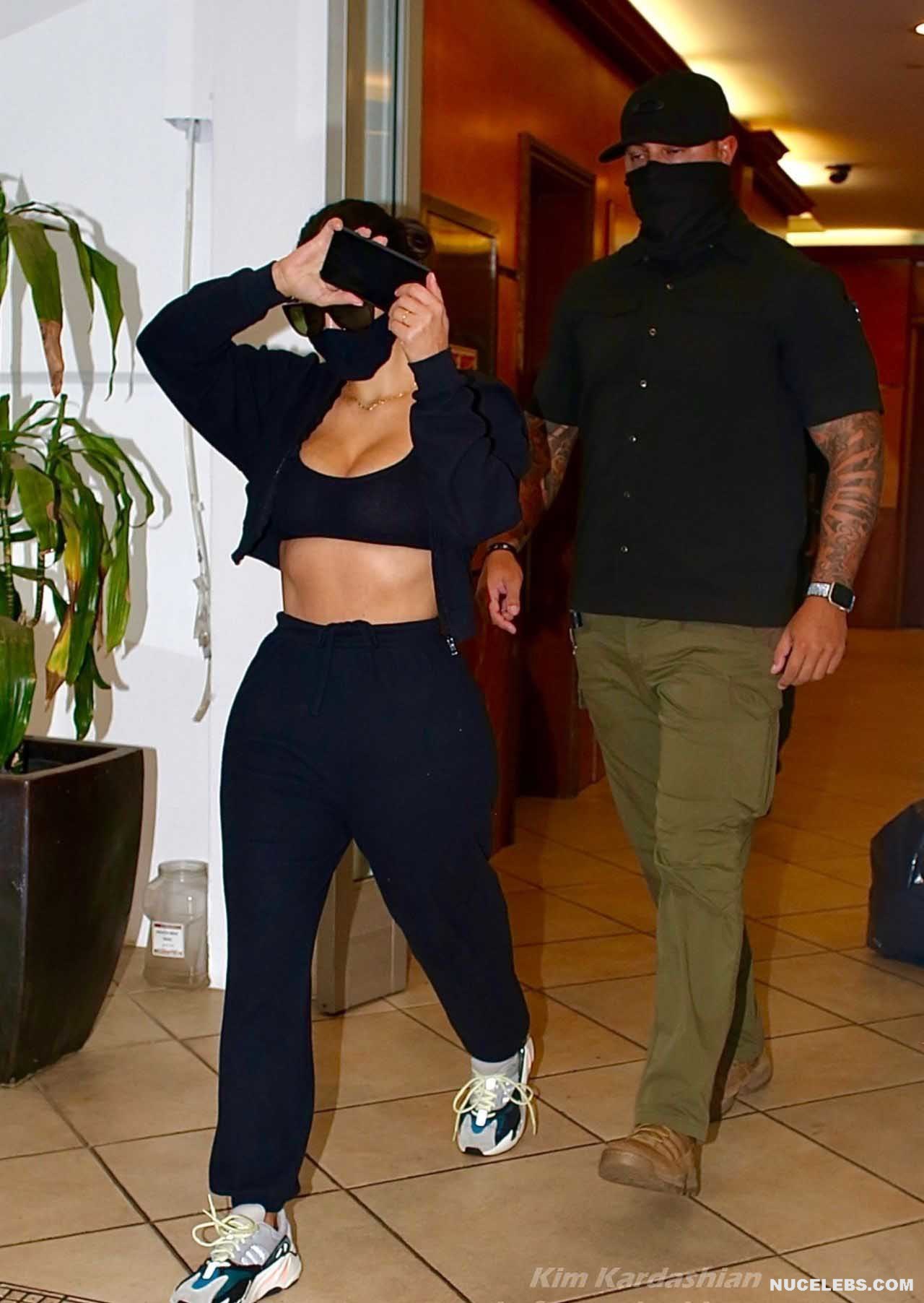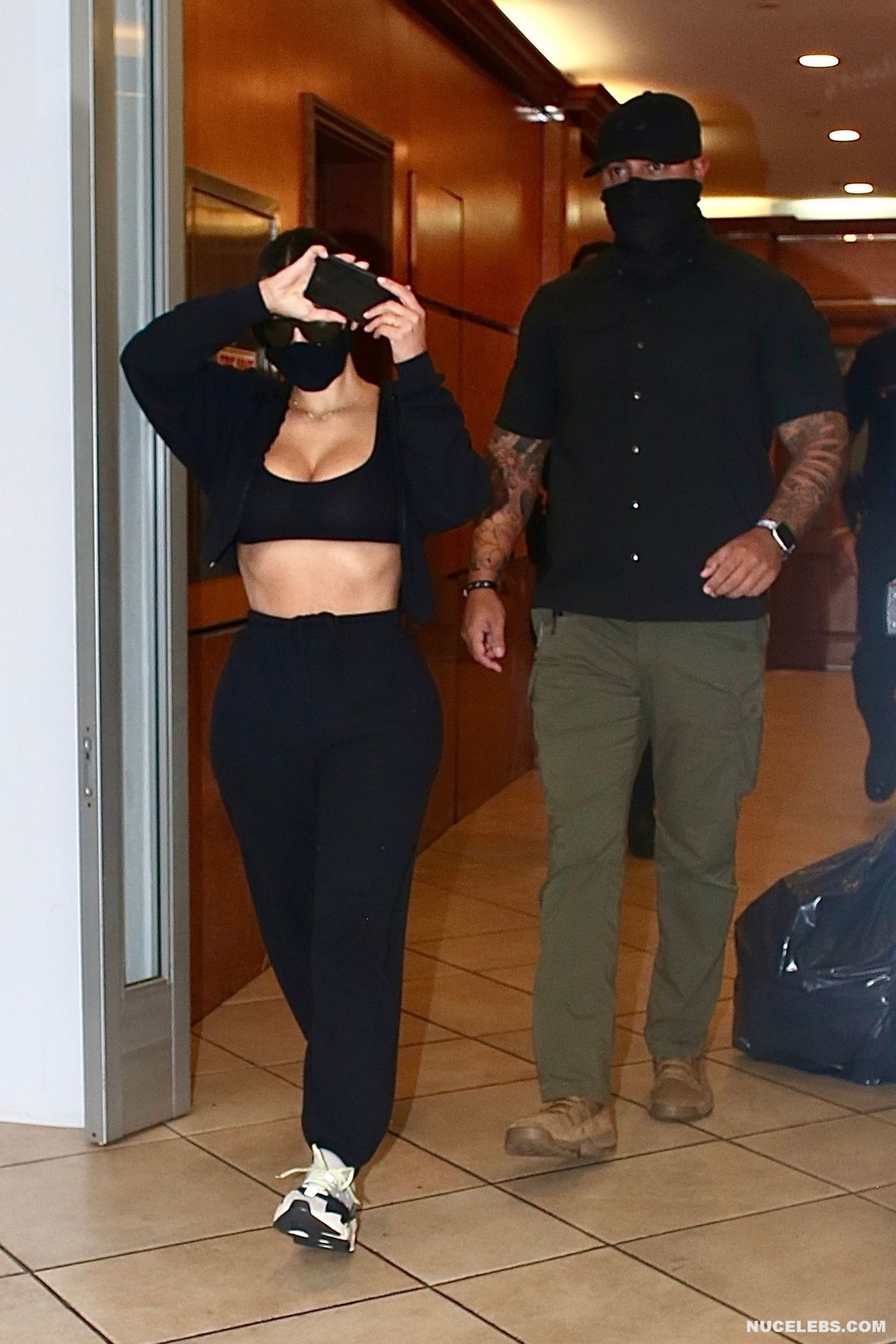 Recently, some very naughty pictures of Kim Kardashian with almost nude boobs hit the network. As you can see, this American TV star did not want to be photographed at all. Therefore, the girl tried in every possible way to cover her face. This celebrity was dressed in a very provocative outfit – she was wearing only a short black top. By the way, Kim Kardashian’s nude boobs with brown nipples were so big that the fabric of the top stretched out and her huge breasts showed through.