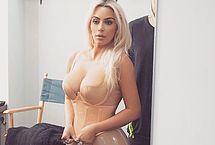 There’s no way Kim Kardashian would let us down and hide from the cameras. That’s why we have another set of hot pictures. This time you can see this Latin goddess with big tits in tight and slutty outfits, as well as lingerie, posing with blond hair. You can see her behind the scenes as a model, getting ready for another photo shoot, and looking absolutely irresistible.