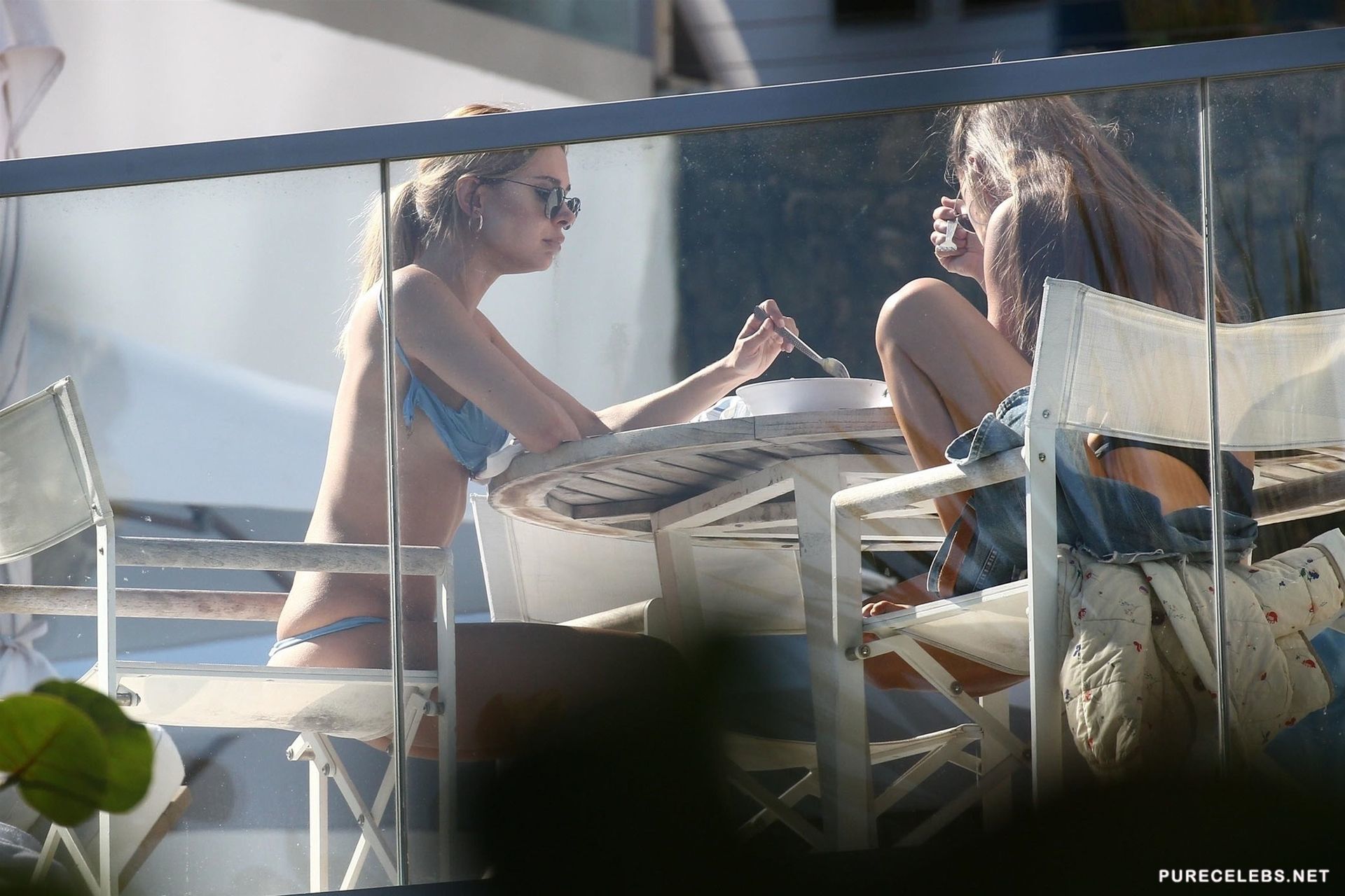 Kimberley Garner has decided that she does not get enough attention, so she put on her swimsuit and went to the beach. She needed some media coverage so people would talk about her more. We can check out how she keeps her body fit with regular exercise and healthy eating. Her nipple even slips from the bikini as she walks around in a hot manner.