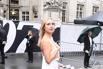 Kimberley Garner loves to attract public attention. That is why this charming blonde chooses rather provocative outfits for herself, appearing at various events. Well, this TV presenter has a really amazing figure! This is why she looked so stunning in a white, high cut bodycon dress. By the way, white panties covering Kimberley Garner’s nude pussy were visible from the cutout. Well, maybe next time this star will be so bold that she will not wear underwear under her revealing outfit?