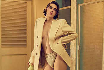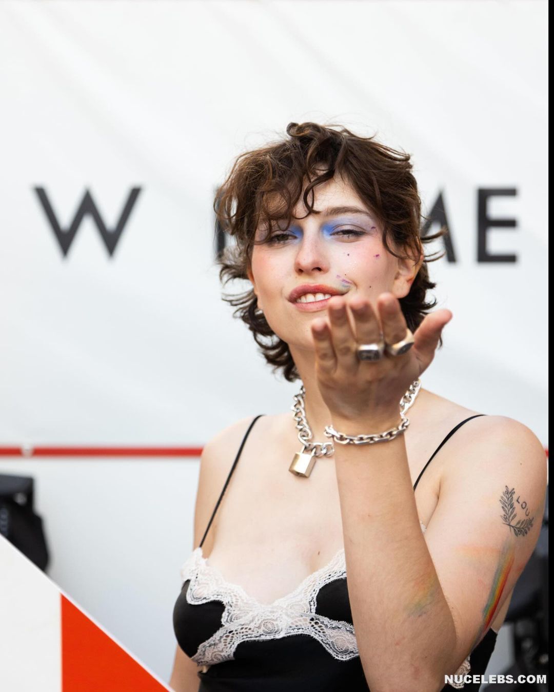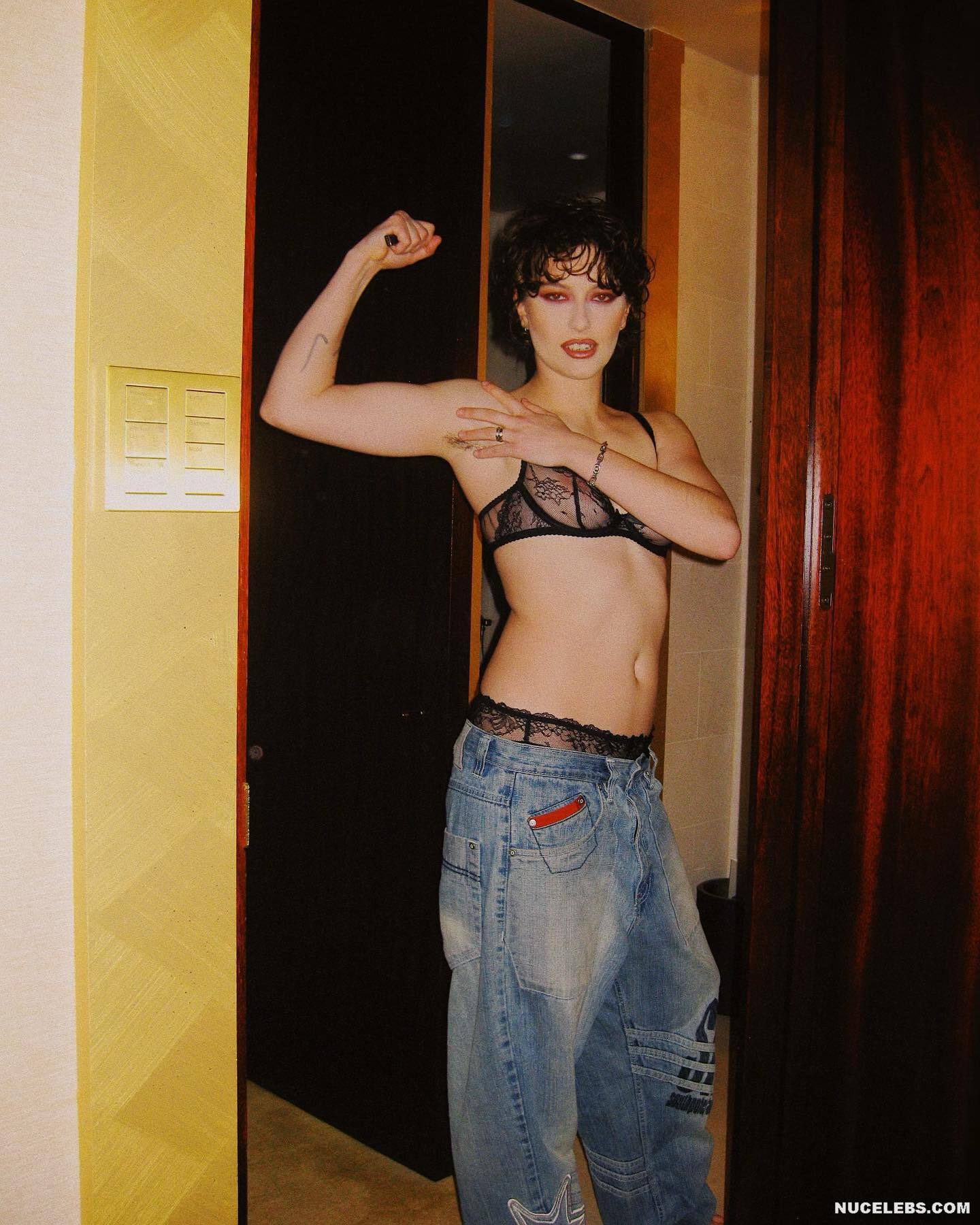 Step into the world of a star! Explore all the best nude photos of King Princess. This American singer will gladly ignite your fantasy with her photos in see through outfits and lingerie pics. But this chick is so confident that she also willingly poses without clothes. So, King Princess showed off her nude awesome buttocks and boobs from different angles. In addition, when she spread her legs, her sweet pussy became visible, because her black panties moved a little to the side!