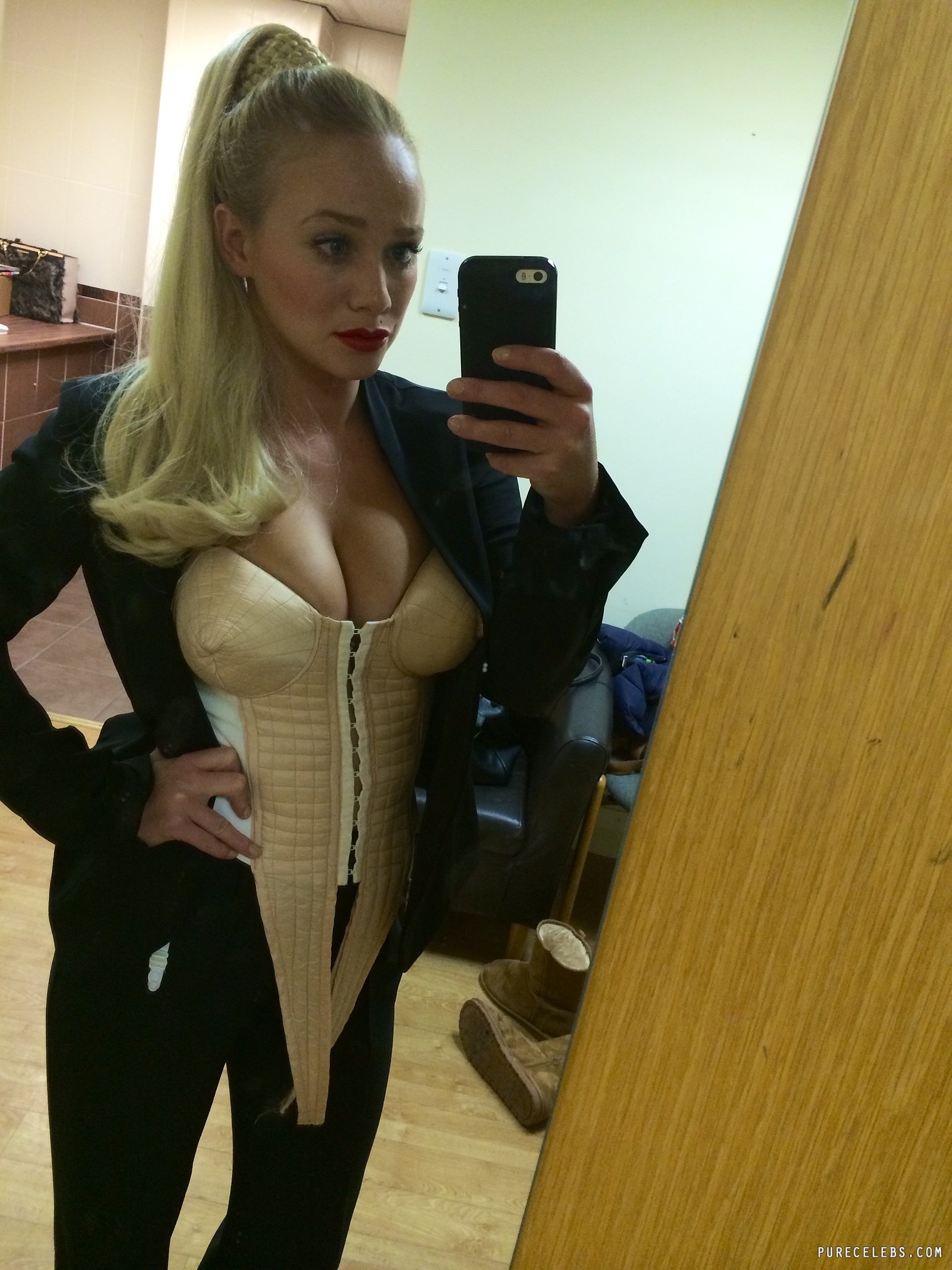 English actress Kirsty-Leigh Porter hardly expected her private nude photos to leak into the network. But it happened and now we can admire this naked celebrity. For example, in one of the photos, Kirsty-Leigh Porter boasted her huge nude boobs with brown nipples close-up. And in another photo, the girl poses in black tights and leaning over. It is worth noting that she was not wearing panties. Therefore, the wonderful naked pussy of this actress was visible to everyone.