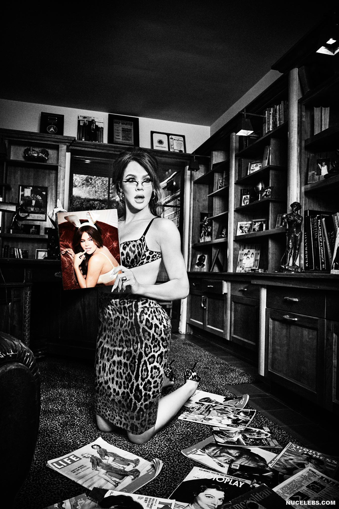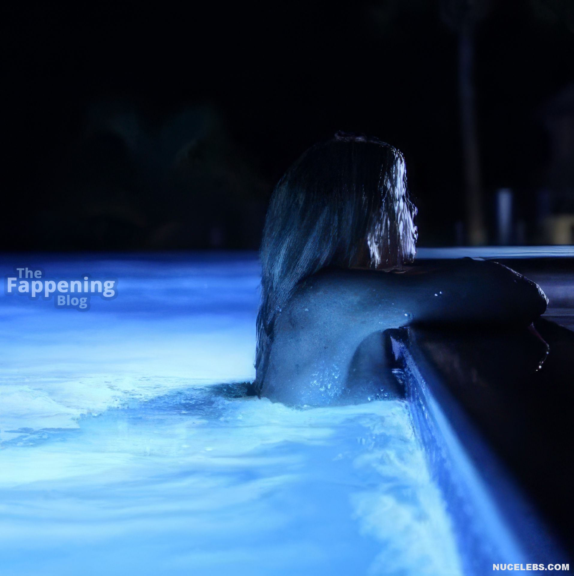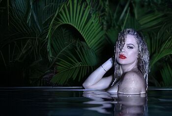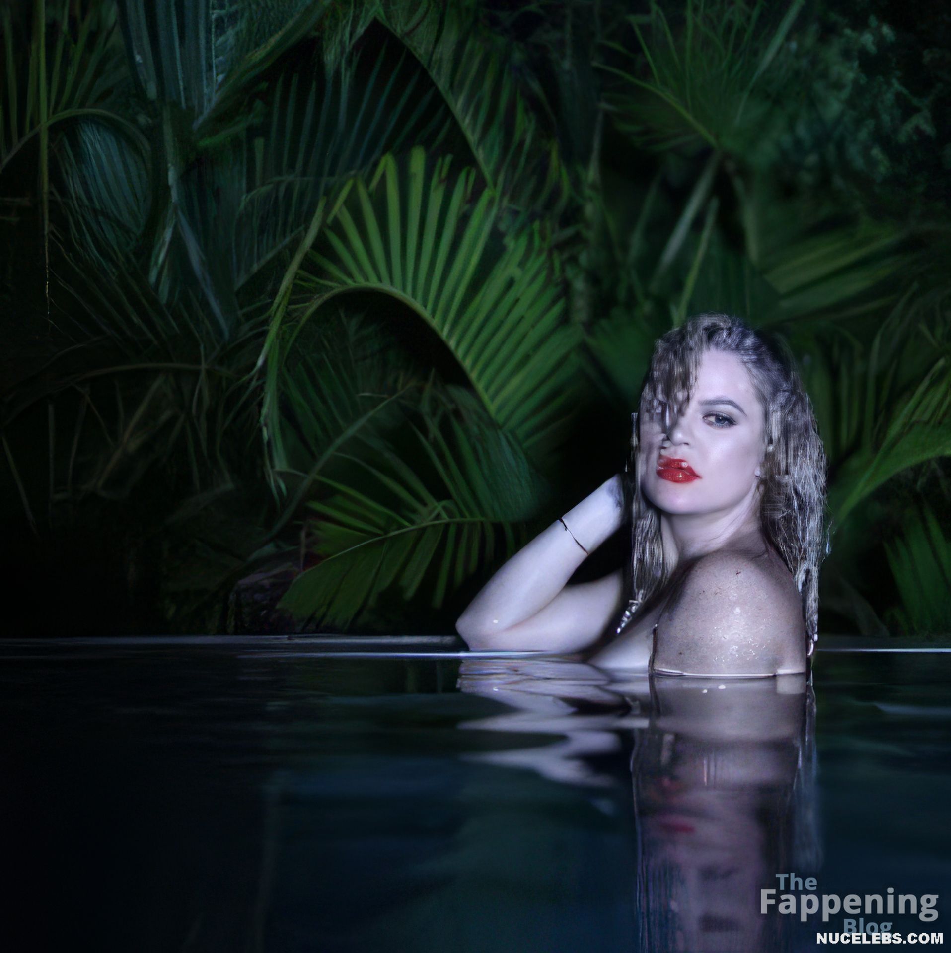 Experience the magic of Kourtney Kardashian through her nude and lingerie photos. This model’s portfolio includes many photos in revealing lace lingerie. For example, here are her stunning boobs almost slipping out of the low neckline of her pink negligee when she bent over… And during a photo shoot in the pool, this celebrity even posed topless! Drops of water seductively sparkled on Kourtney Kardashian’s nude tits, which she couldn’t hide under her large beads.