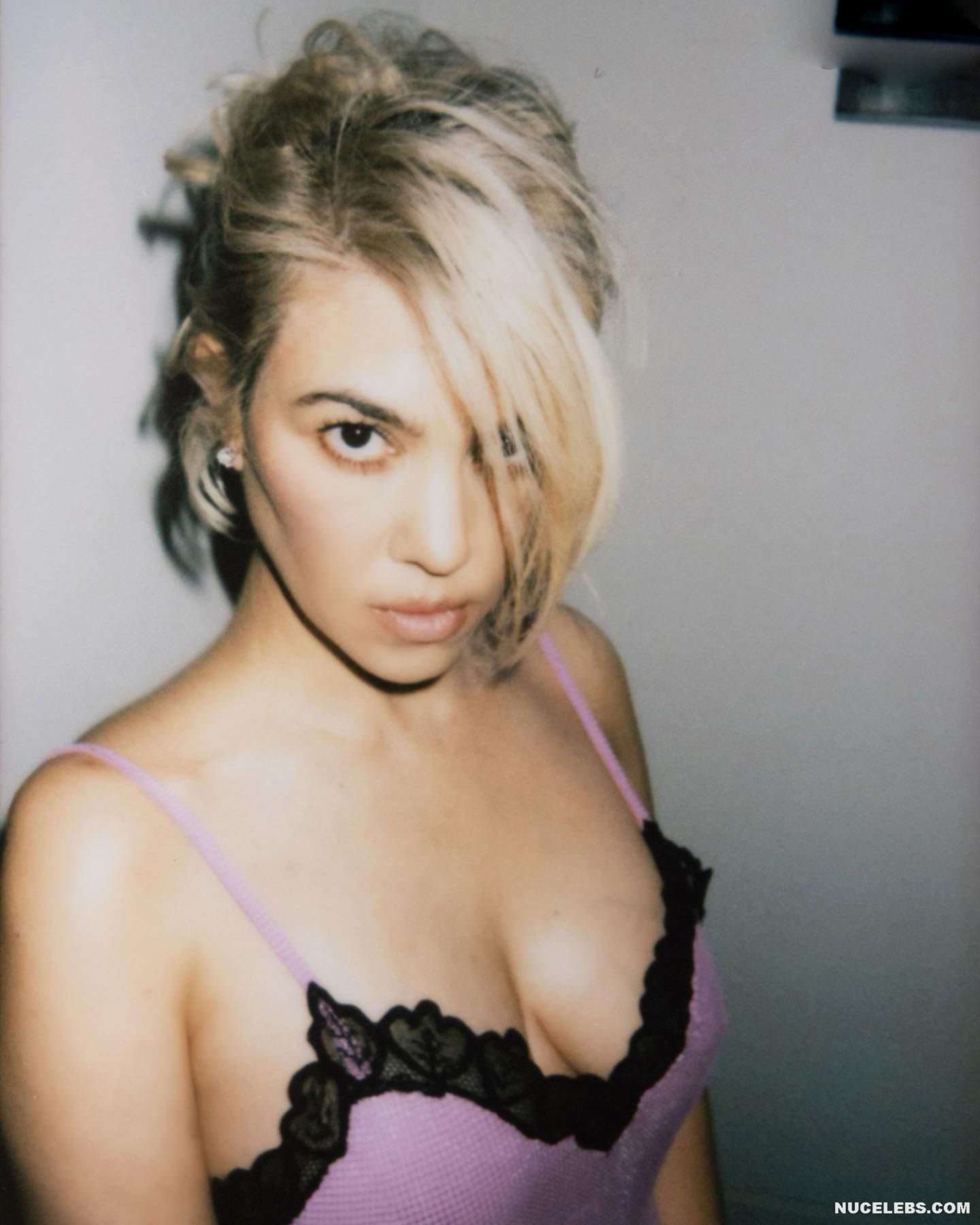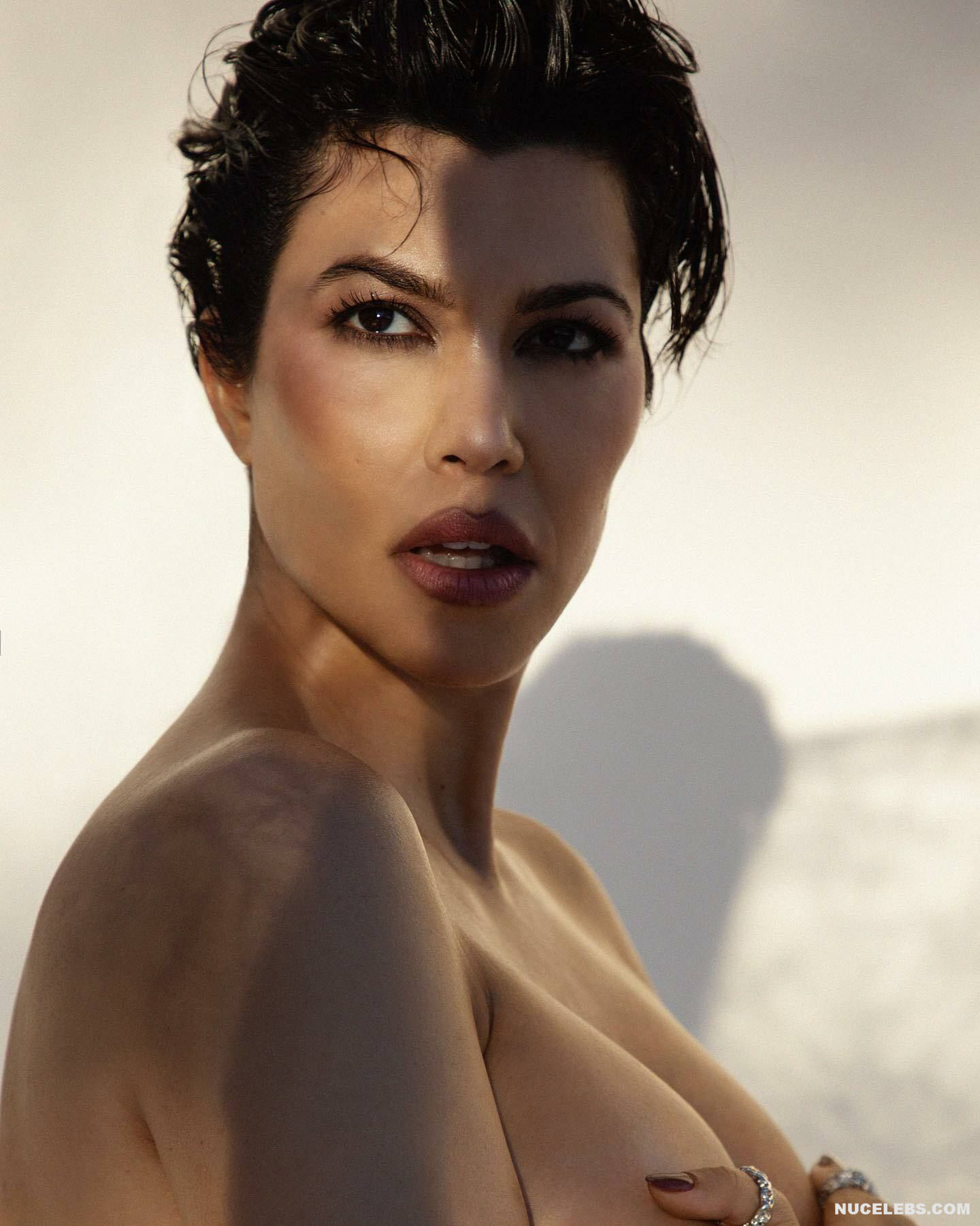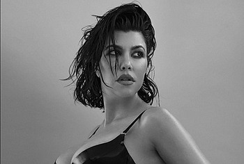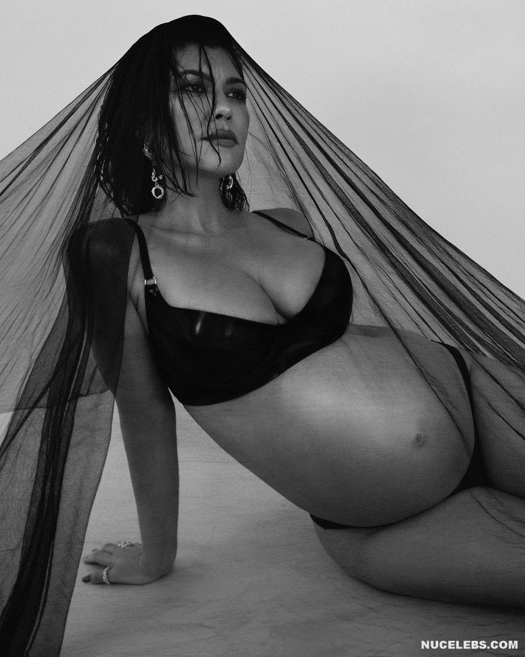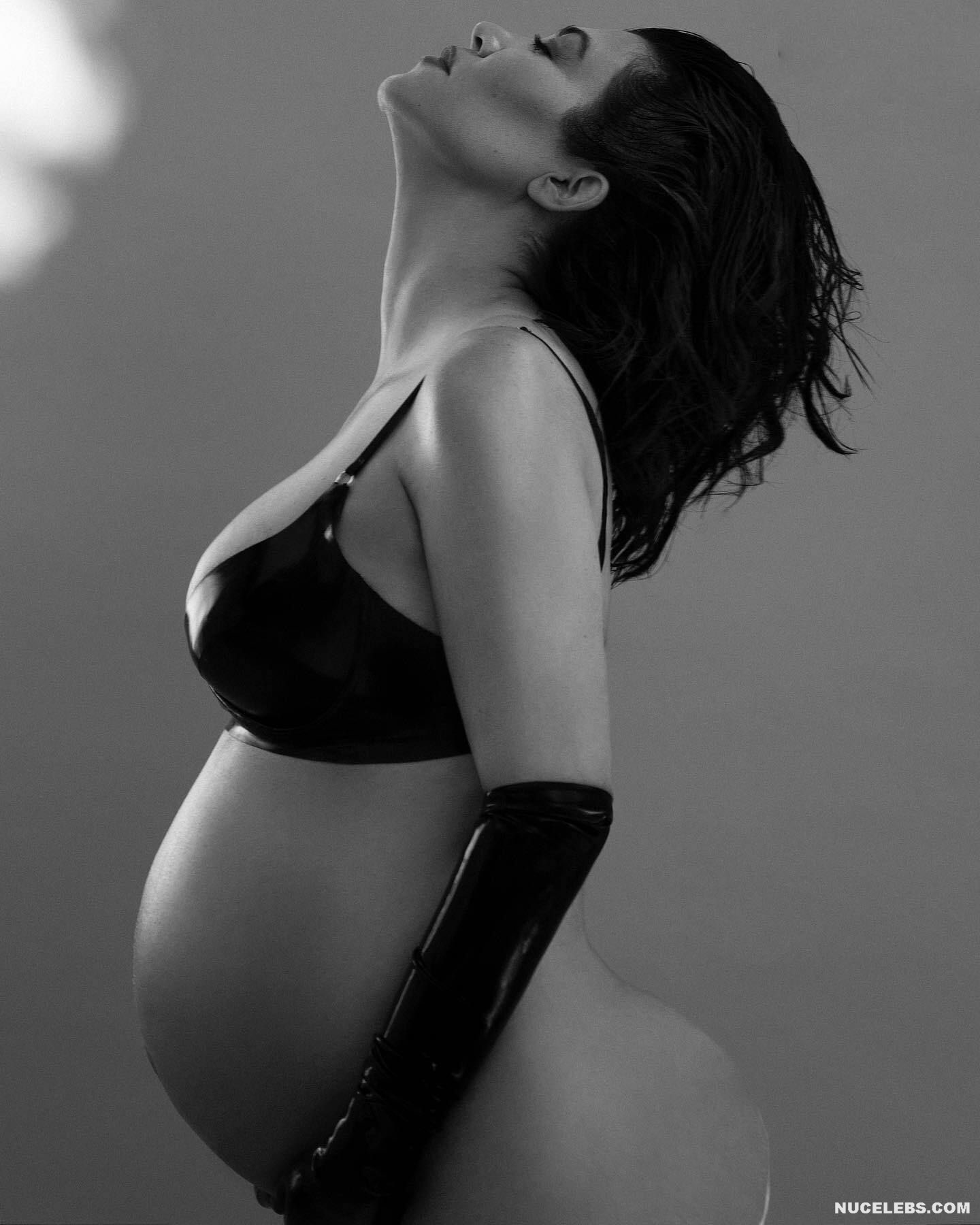 Kourtney Kardashian looks great even in the last stages of pregnancy. This American fashion model proudly showed off her rounded belly while posing in underwear. It’s worth noting that Kourtney Kardashian’s boobs have also become noticeably larger, as has her sweet ass. In one of the photos, this celebrity even posed topless. Kourtney Kardashian was wearing black tights, and she was squeezing her nude tits with her hands.