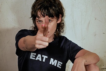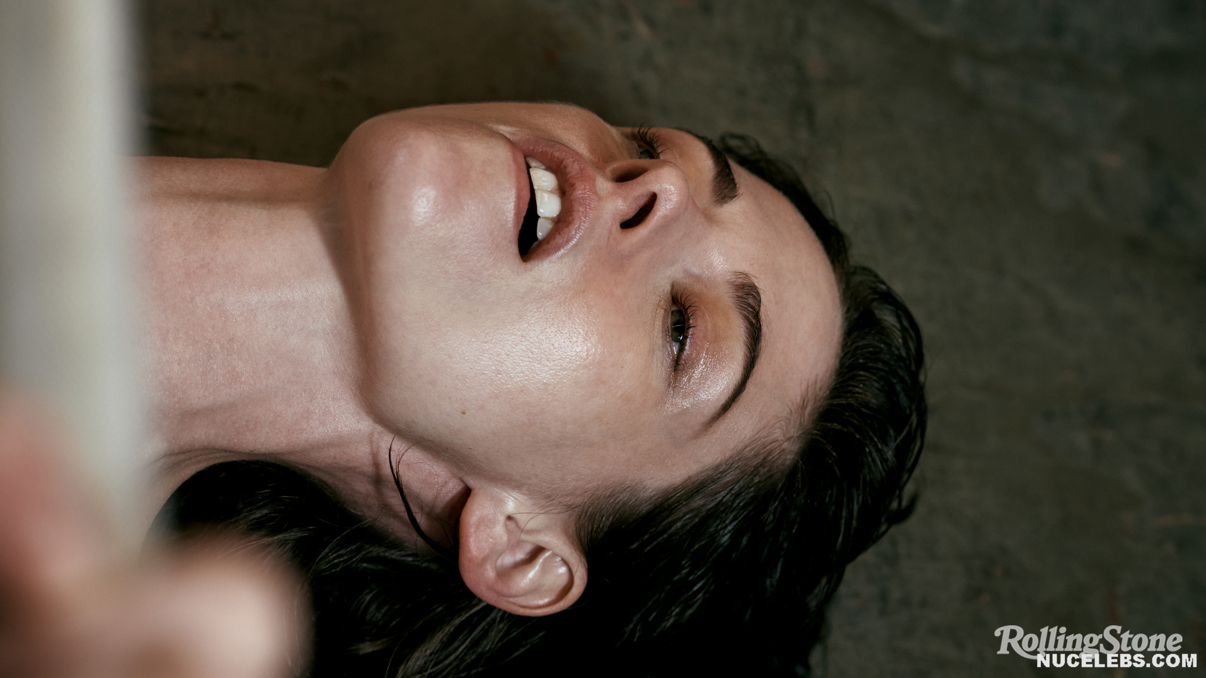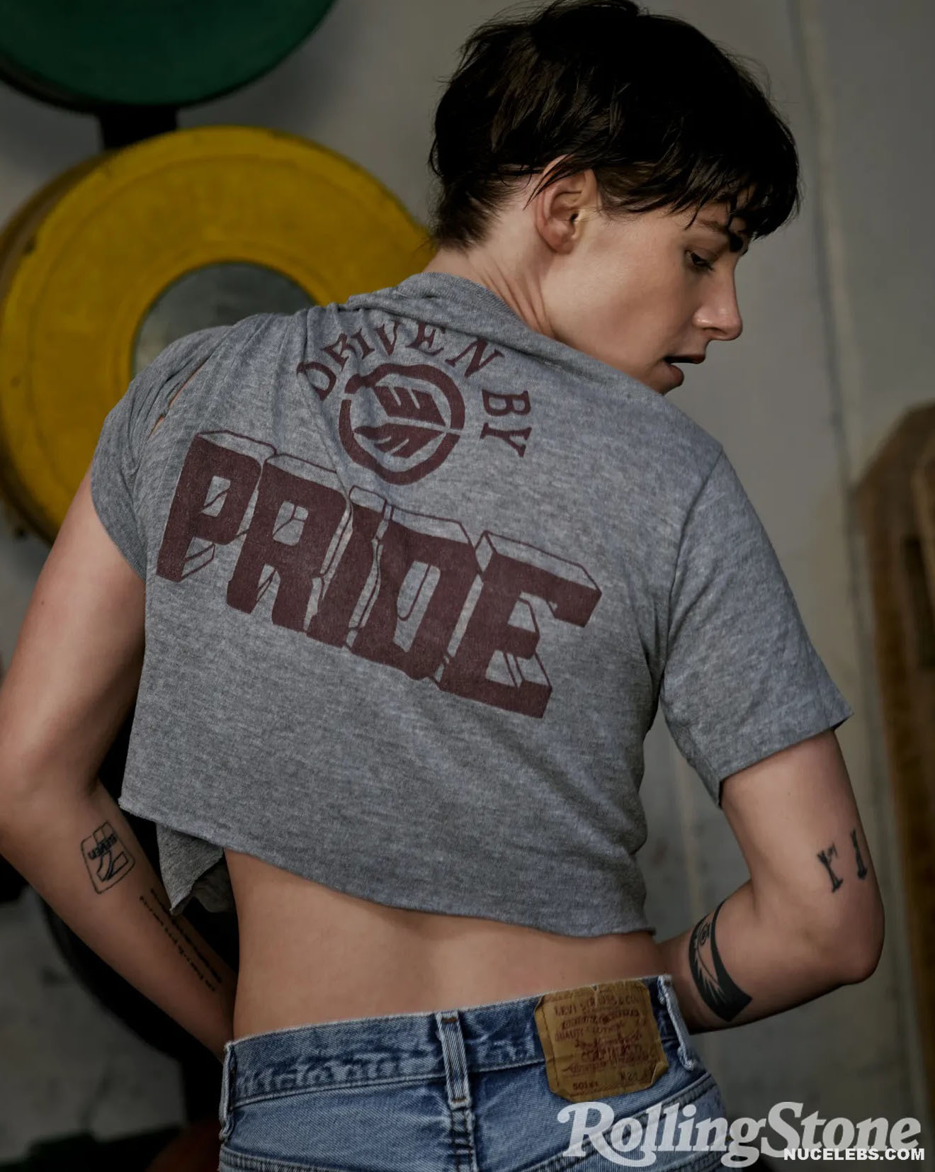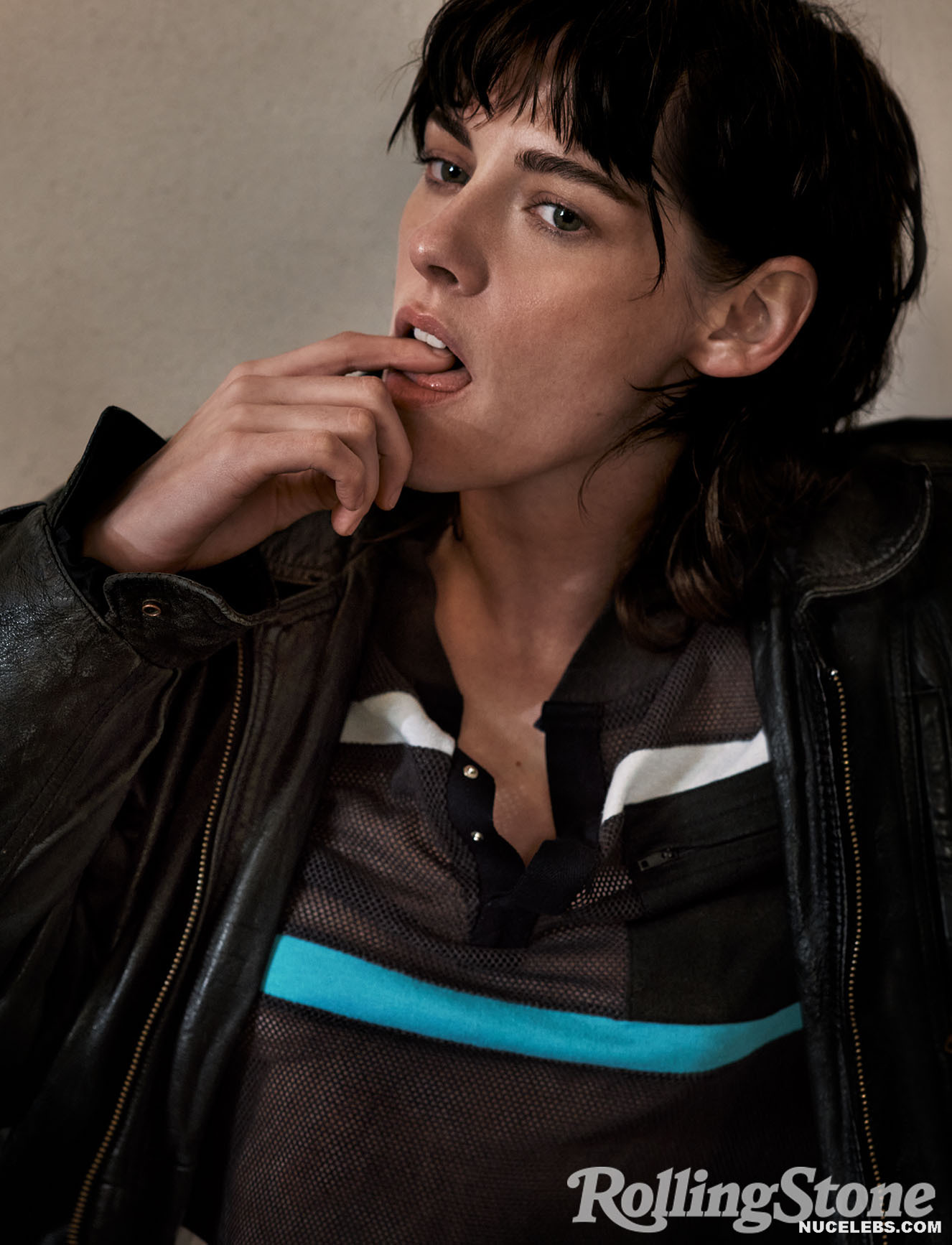 Kristen Stewart was incredibly sexy on the cover of the magazine. So, the hand of this American actress was in striped panties and it looked like she was caressing her pussy with it. A black leather vest only partially covered Kristen Stewart’s nude boobs. The celebrity also flaunted her bare back while changing clothes in the gym. She also looked super sexy while working out!