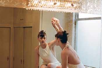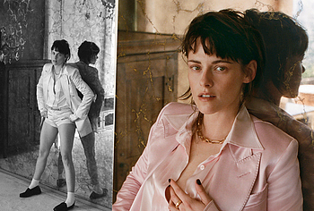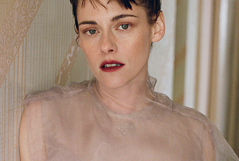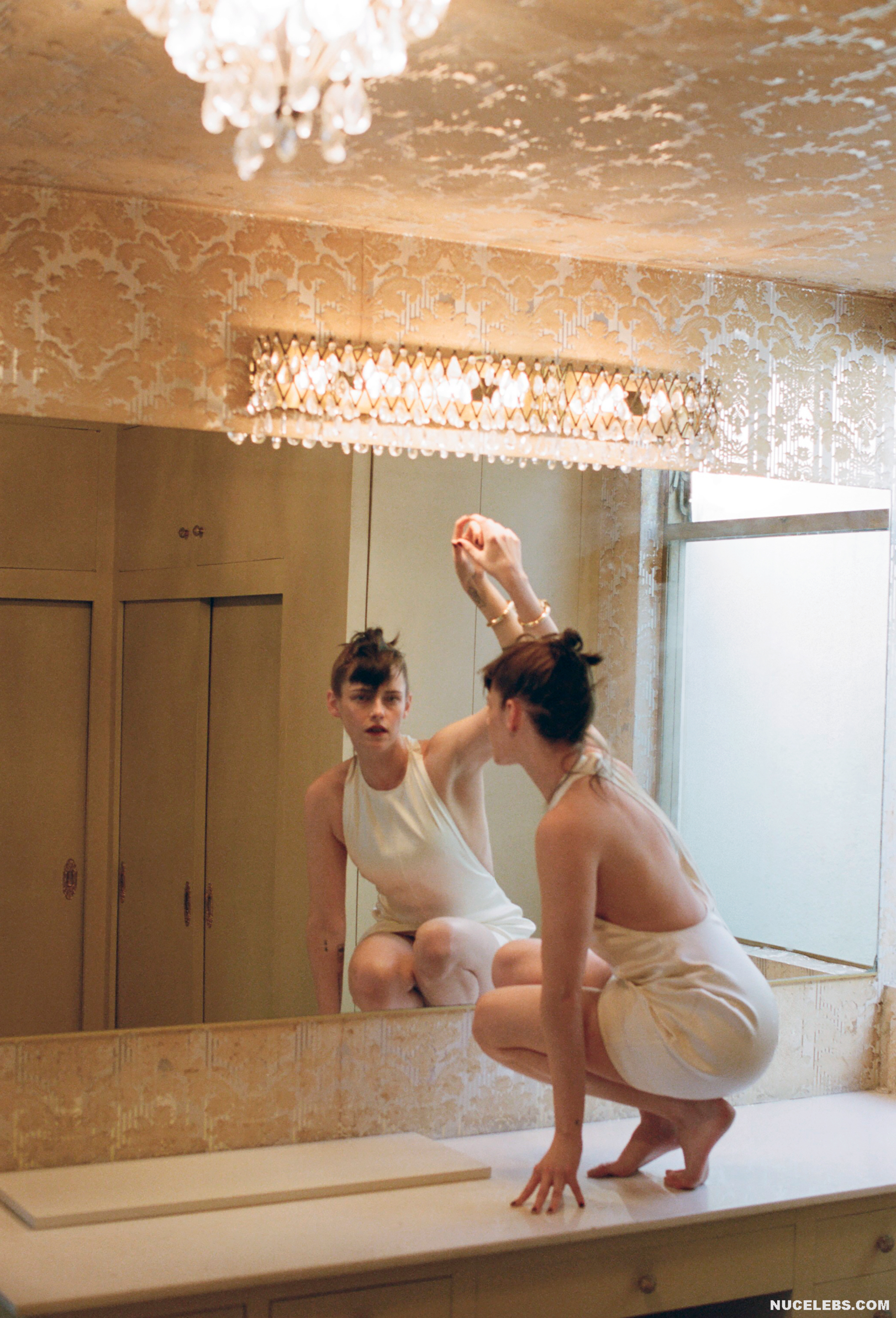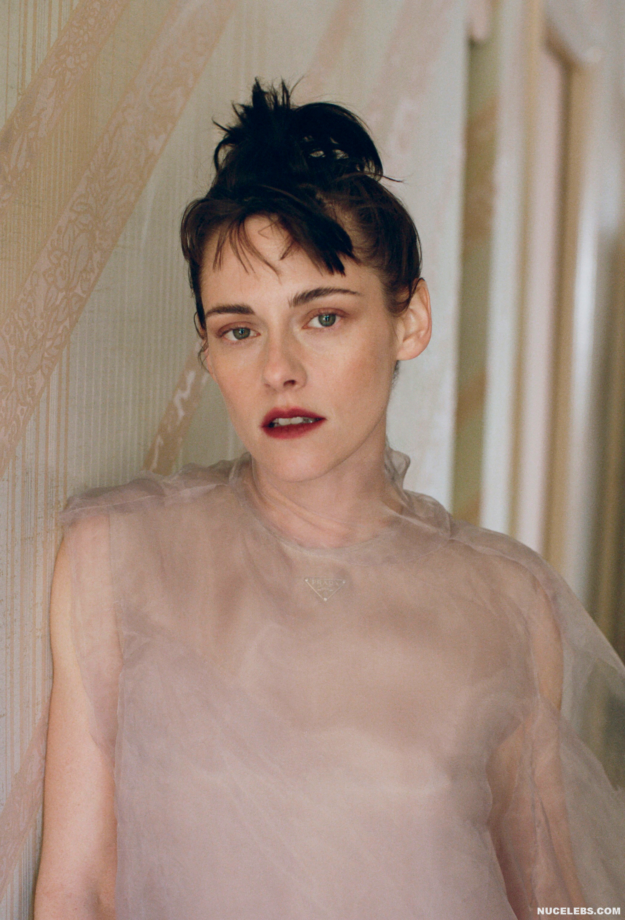 Kristen Stewart posed topless during one of her latest photo shoots! First, this adorable brunette showed off the sides of her sweet boobies in a white unbuttoned shirt as she sat on the bed. Then the 33-year-old celebrity posed in a miniature black bra with silver rhinestones and small black shorts… However, this was not enough for her! So Kristen Stewart dropped her bra and posed, covering her nude small titties with her palms!