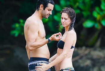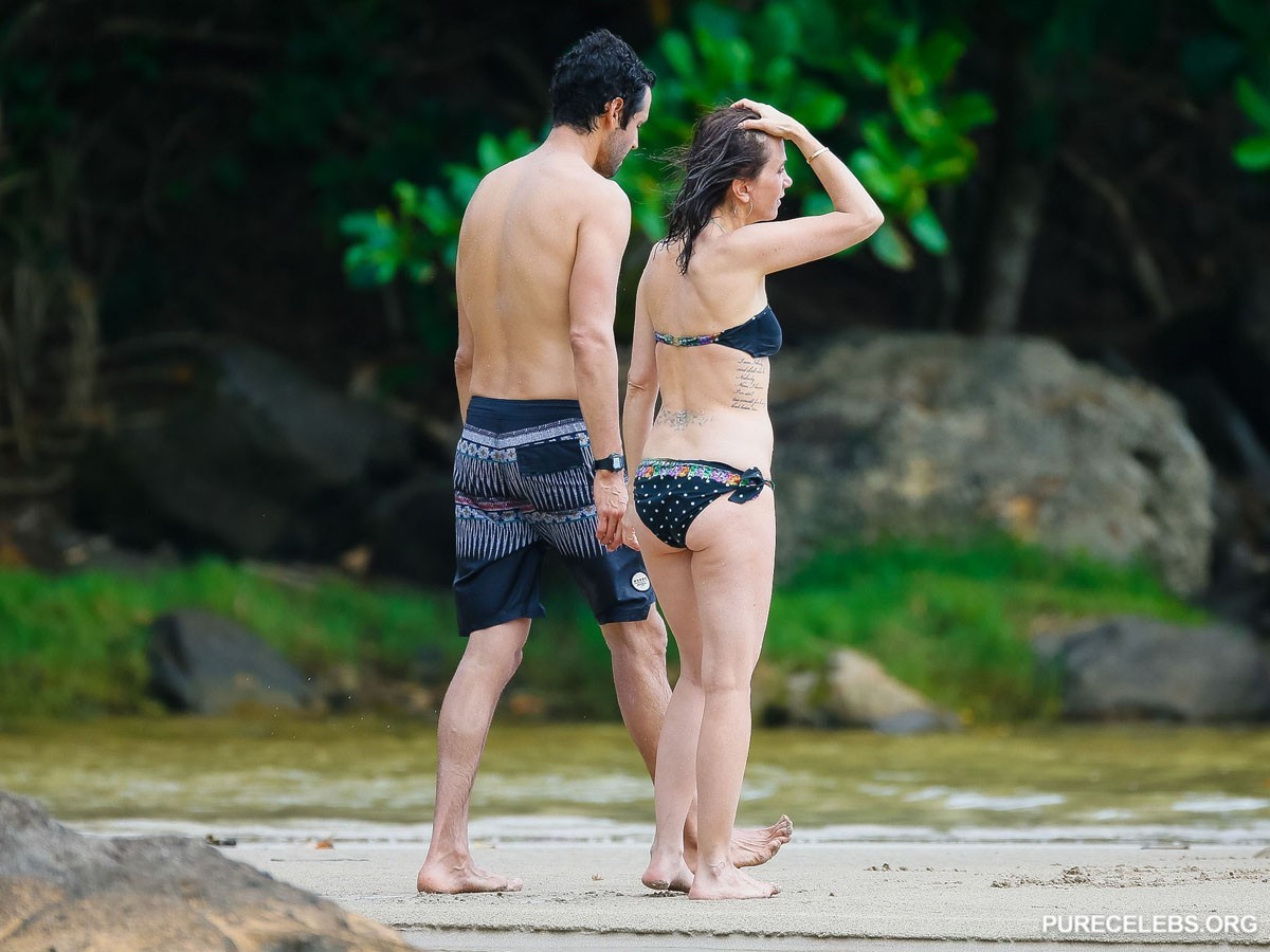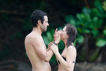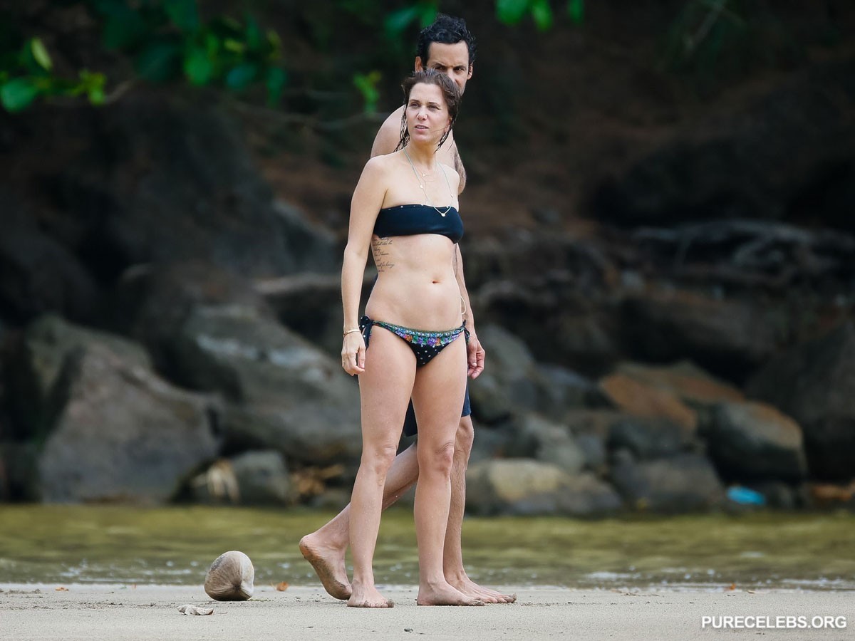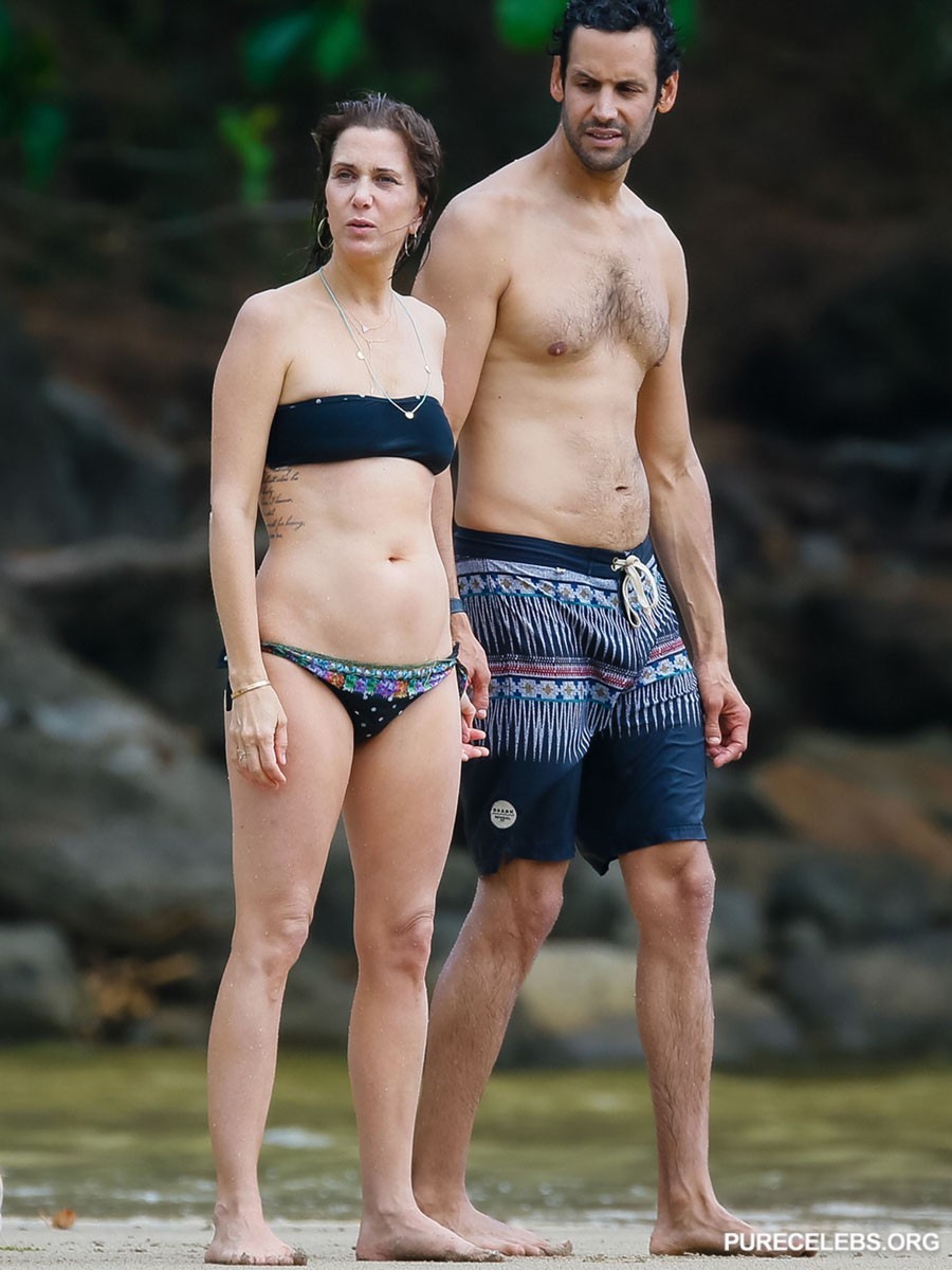 Also, paparazzi managed to photograph Kristen Wiig when she was relaxing with her boyfriend. Well, the actress chose for herself a very small bikini, the top of which barely covered her juicy boobs. Her panties were also very small and her boyfriend undoubtedly liked it.