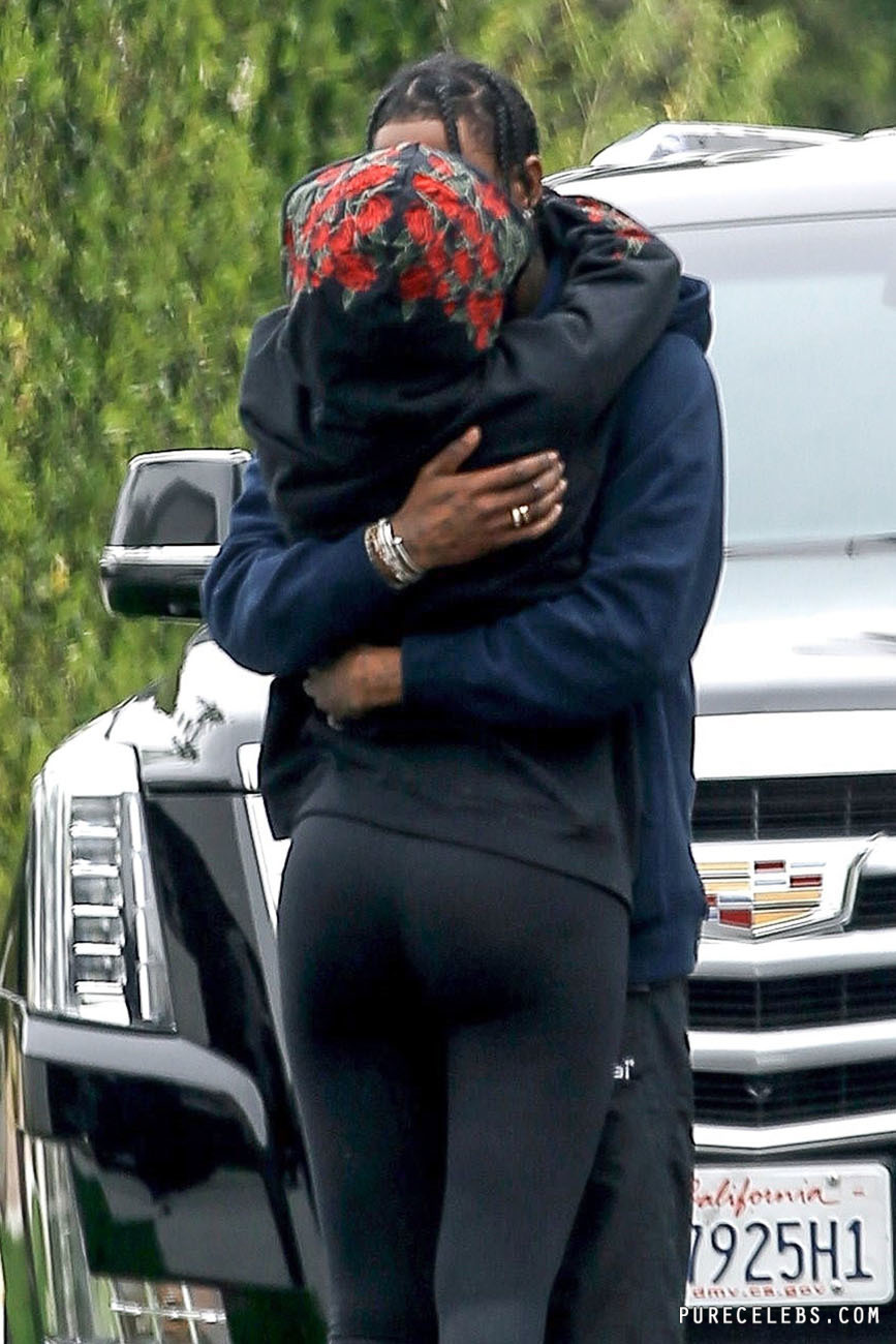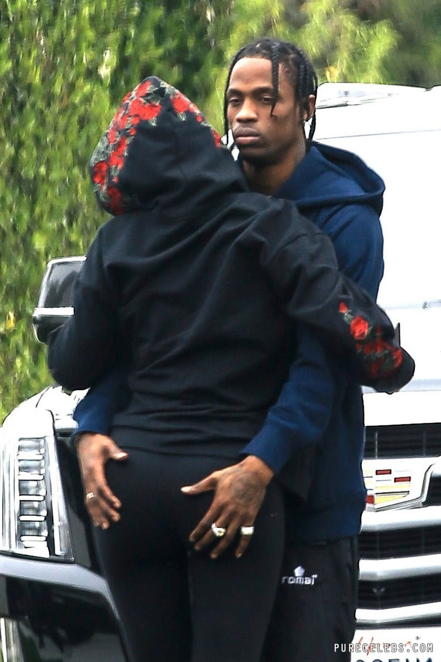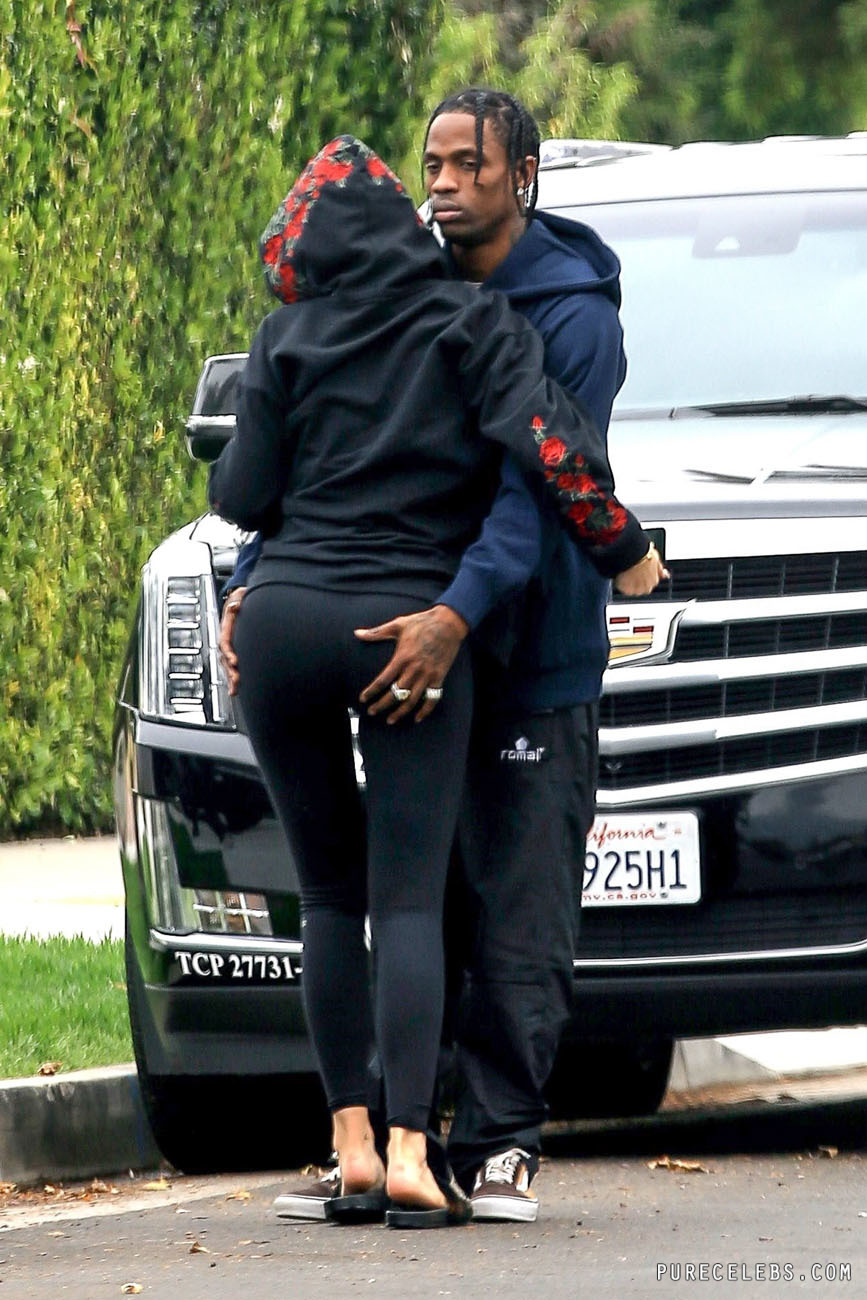 Paparazzi are constantly watching the American beauty Kylie Jenner. This time they managed to photograph this celebrity during her date. The girl was wearing a sweater jacket with a floral print. And her awesome ass was dressed in tight pants. The star hugged and kissed her boyfriend. And it is not surprising that he grabbed her awesome butt.