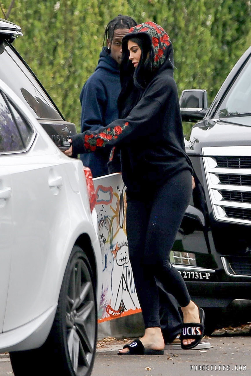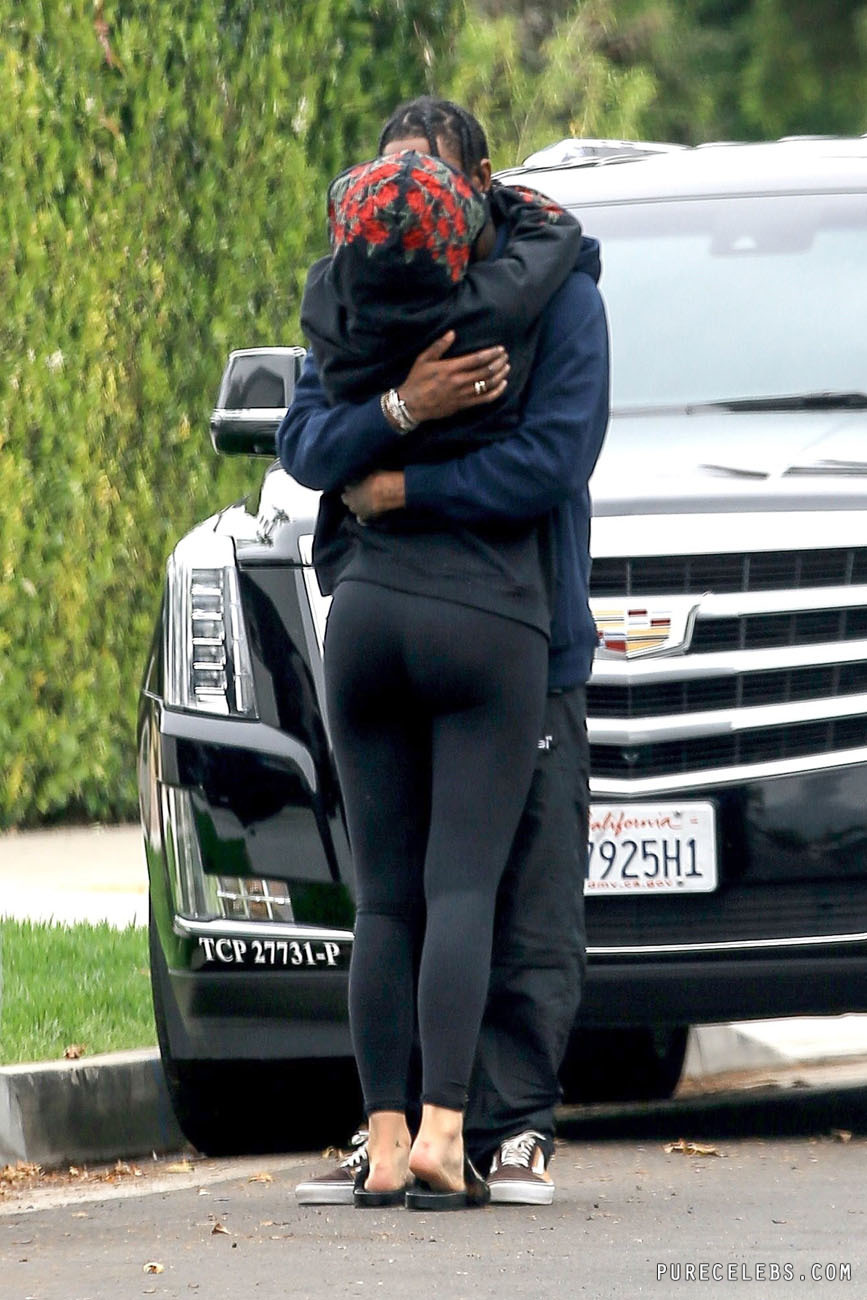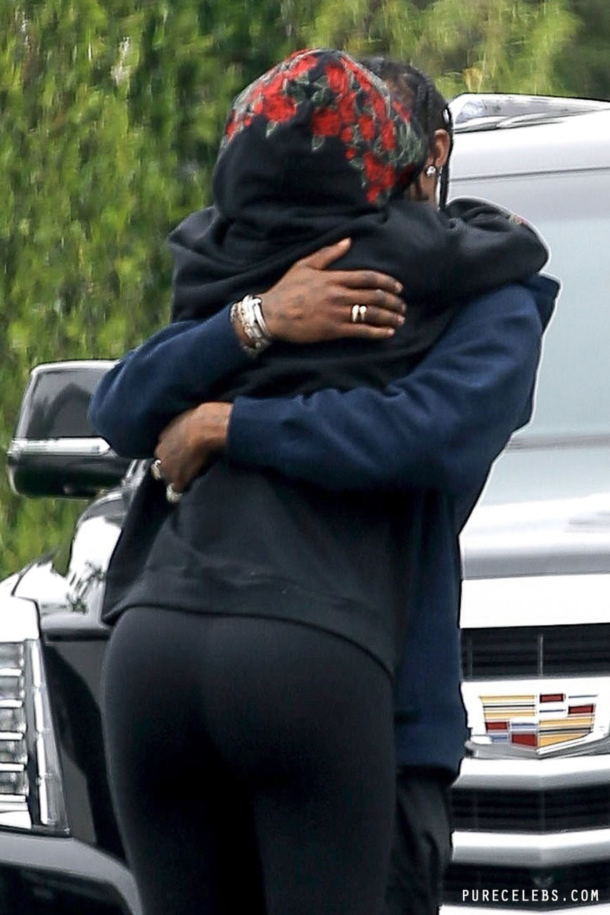 Paparazzi are constantly watching the American beauty Kylie Jenner. This time they managed to photograph this celebrity during her date. The girl was wearing a sweater jacket with a floral print. And her awesome ass was dressed in tight pants. The star hugged and kissed her boyfriend. And it is not surprising that he grabbed her awesome butt.