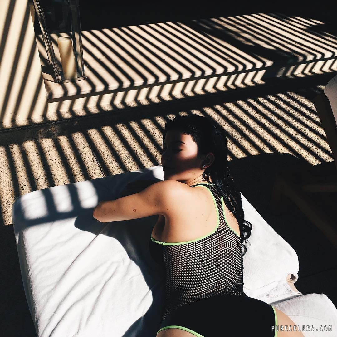 Even though she is the youngest of the Kardashians, she never stops surprising us with her amazing body figure. This time she showed her wonderful body in tight black swimsuit! She posed in very seductive way while her huge round booty is in first sight! As sexy and hot as it is right now, she can be easily compared to her older, the hottest sister Kim Kardashian without a doubt!