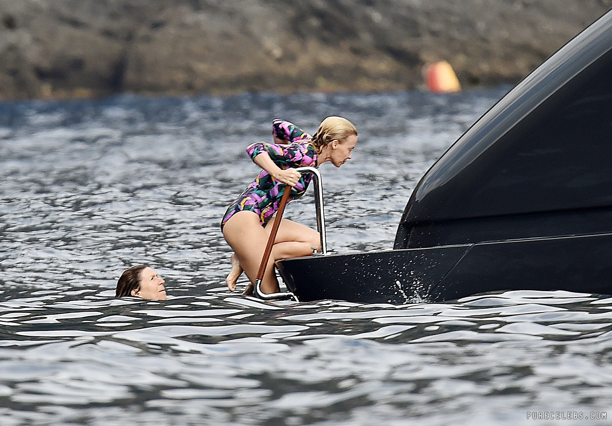 Ripe blonde Australian singer Kylie Minogue is one of the hottest babes around despite her age. Celebs never age as good as she has, so it’s no wonder paparazzi are still hot on her heels. This time we get the chance to see this stunner coming out of the water and onto a yacht wearing a one piece bikini, completely wet, and utterly irresistible. How does she do it?