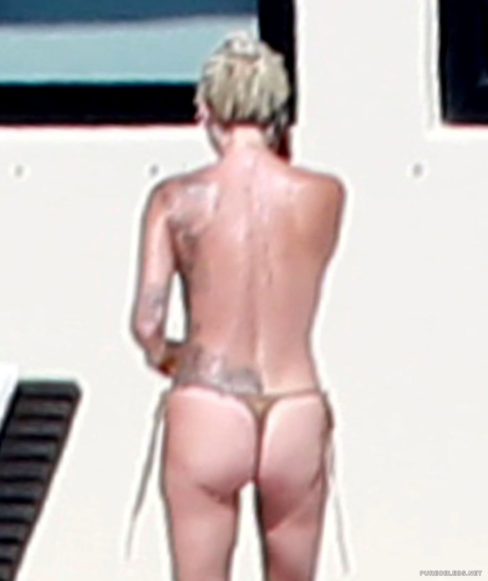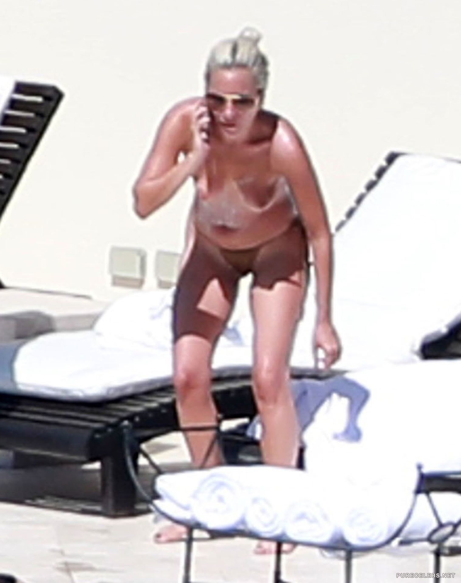 Lady Gaga is out by the pool and it looks like that she forgot to put on her bra. She probably wants to get a bit of a tan on those sexy natural pale tits and she rubs some lotion all over them. Her female friend is next to her, helping her put lotion on her sexy skin. We wish they would take the action further.