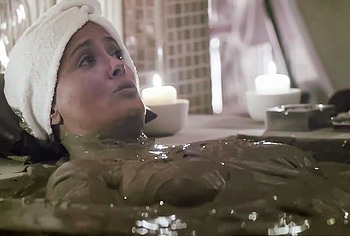 House of Gucci will make you look at Lady Gaga in a completely different way. So, in one of the scenes, this singer was fucking with a man in the office right on the table! First, Lady Gaga let him lick her nude pussy, and then he thrust his dick into her and started fucking, making her moan loudly. And in another scene, Lady Gaga emerges from a bubble bath and literally pulls a dressed man into the bath! You can also see how this charming brunette took a mud bath with her friends. And Lady Gaga almost showed off her nude titties when she plunged into the bath with her head.
