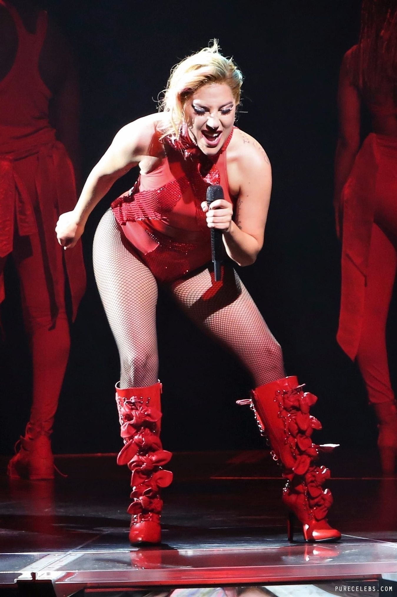 Everyone has long been accustomed to the fact that Lady Gaga’s performances are very hot and unusual. Paparazzi managed to make awesome pictures of this provocative singer. So, they caught Lady Gaga in a transparent blouse through which her awesome nude boobs with hard nipples were visible. Also, this celebrity shows off her chic booty at every performance. And paparazzi managed to photograph part of the celebrity’s nude pussy when she sat down in her white outfit on stage.
