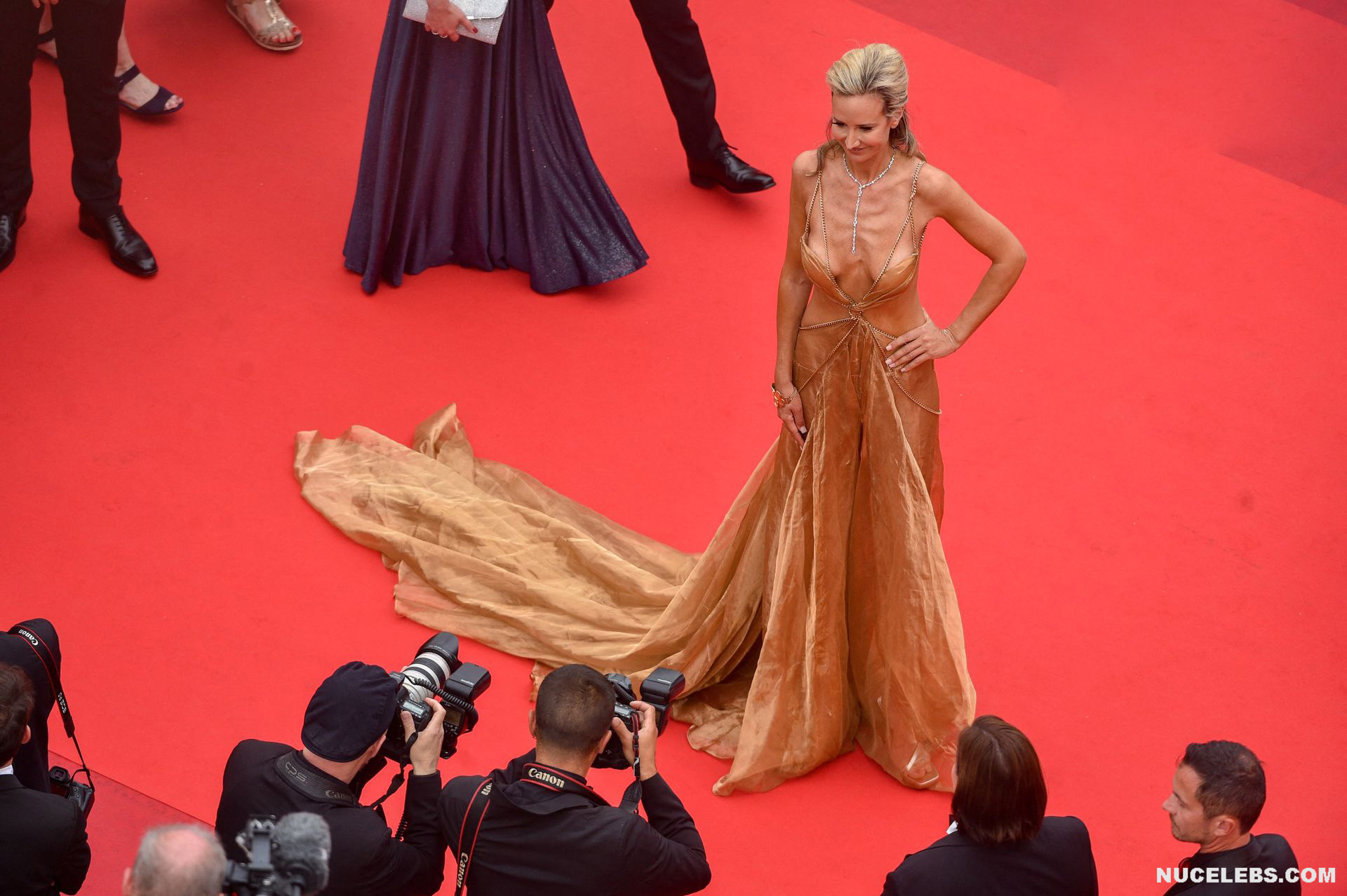 Lady Victoria Hervey flaunts her nude boobies on the red carpet! So, the paparazzi photographed this English model in a long golden dress that almost slipped off her bare buttocks. In addition, the top of the dress was also skimpy and allowed Lady Victoria Hervey’s nude, hard nippled boobs to slide out. Agree, it looked very hot and sexy!