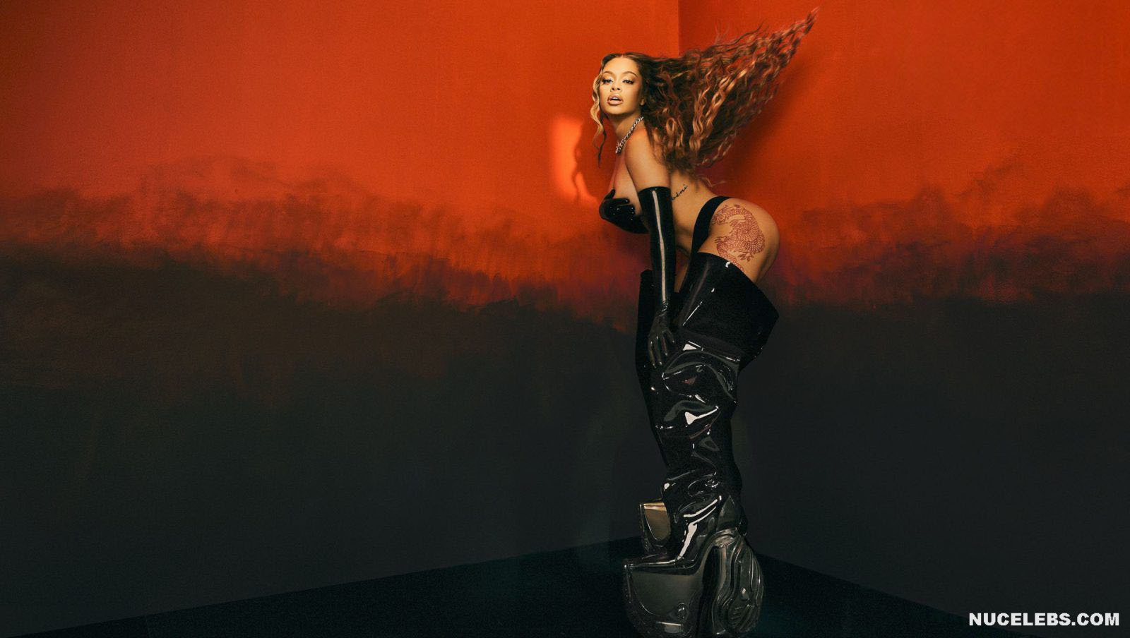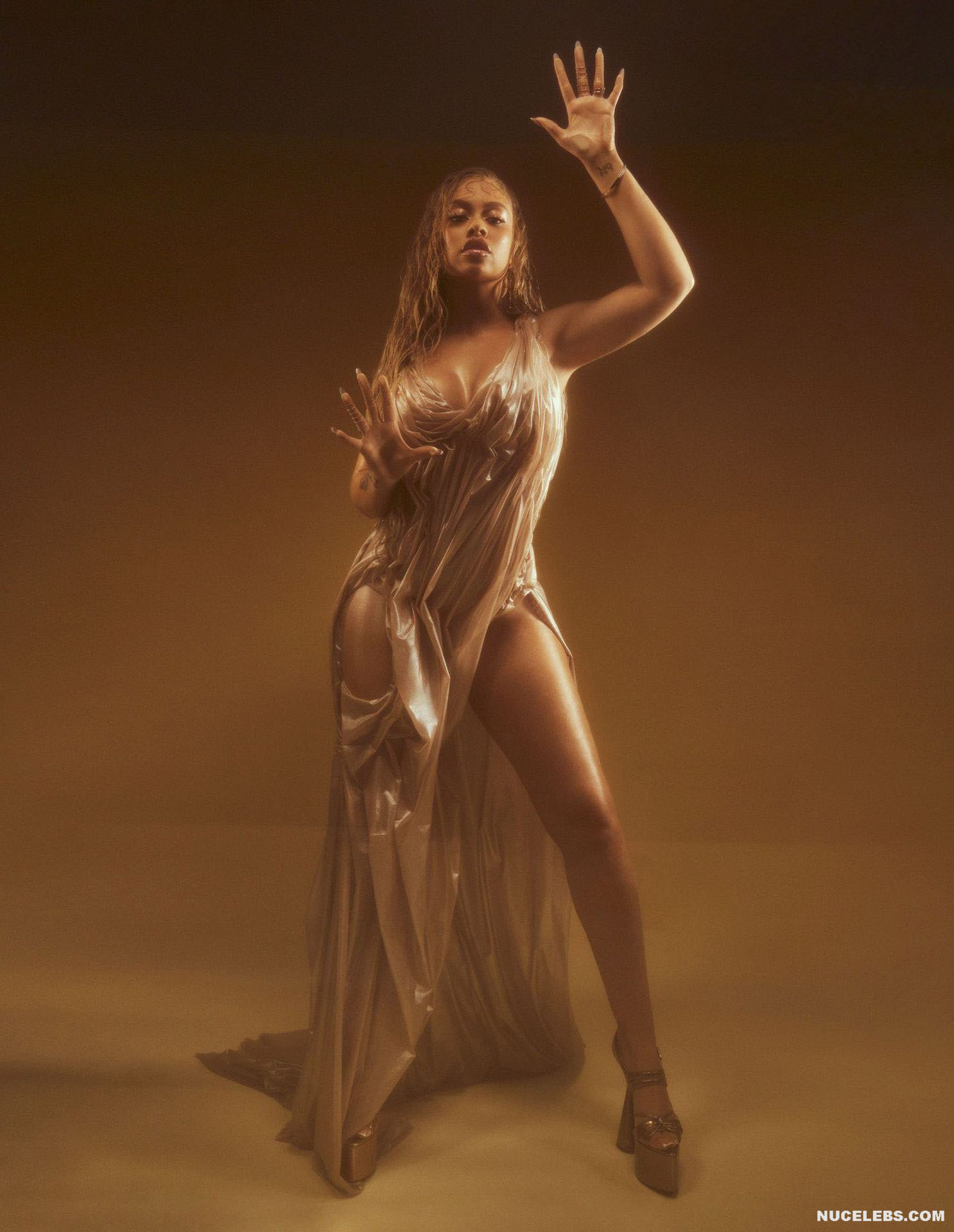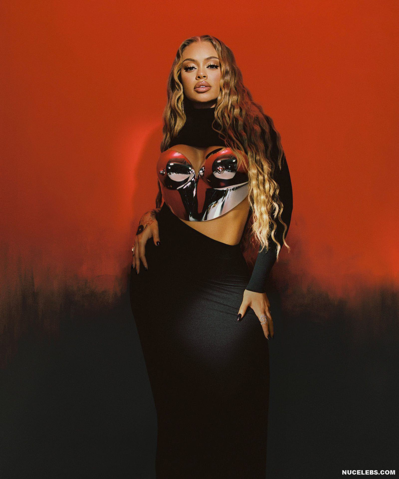 Get ready to admire Latto’s nude chic body in one of the photoshoots. This American rapper sat with her side turned to the camera, flaunting her large melons and buttocks. In another photo, Latto sat nude on the floor, her hair covered her breasts, and her legs in red latex boots looked incredibly seductive. Also, check out her Cosmopolitan cover photo where she posed in a silver metallic top.