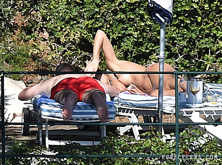 This curly dark haired chick Laura Barriales is a Spanish model and TV personality. She was spotted by paparazzi while sunbathing by the pool with her boyfriend. Paparazzi were patient enough and waited perfect opportunity to make perfect pictures. The moment finally came as she took off her bikini top exposing her awesome boobies! They snapped bunch of her topless photos which you can see here!