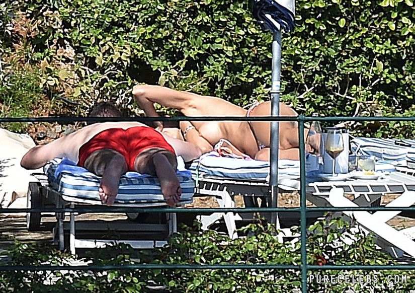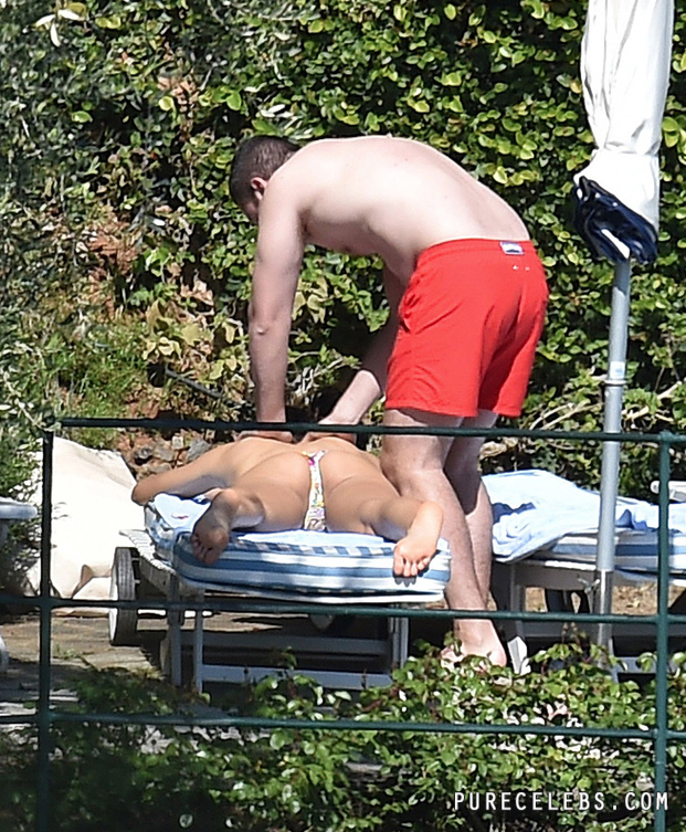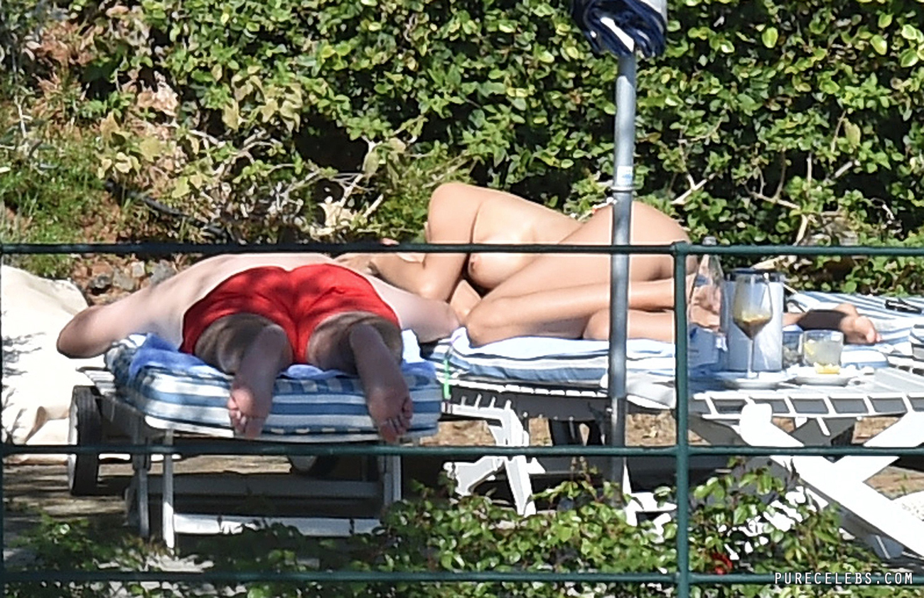 This curly dark haired chick Laura Barriales is a Spanish model and TV personality. She was spotted by paparazzi while sunbathing by the pool with her boyfriend. Paparazzi were patient enough and waited perfect opportunity to make perfect pictures. The moment finally came as she took off her bikini top exposing her awesome boobies! They snapped bunch of her topless photos which you can see here!