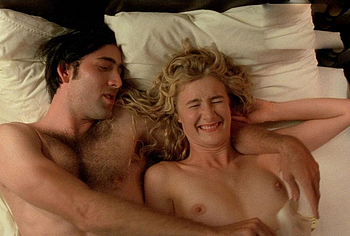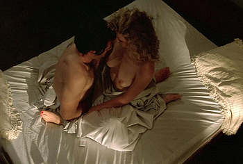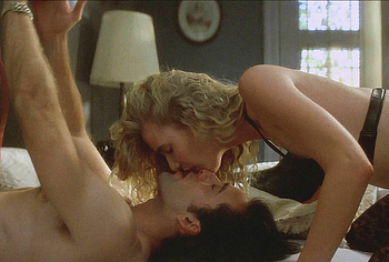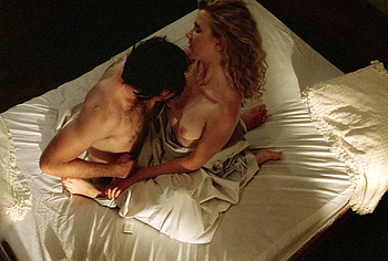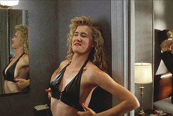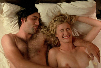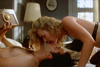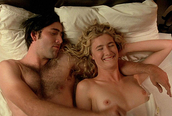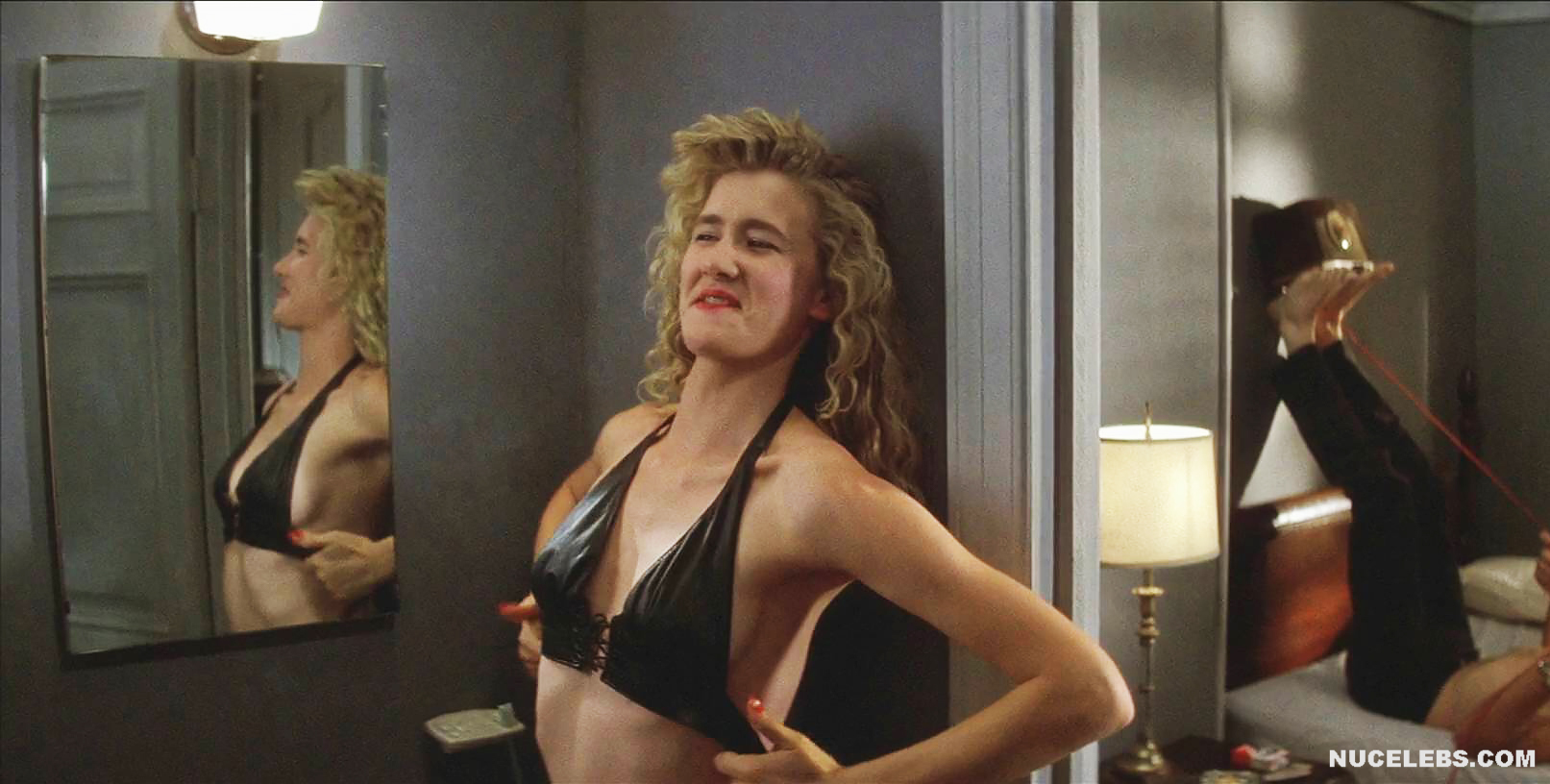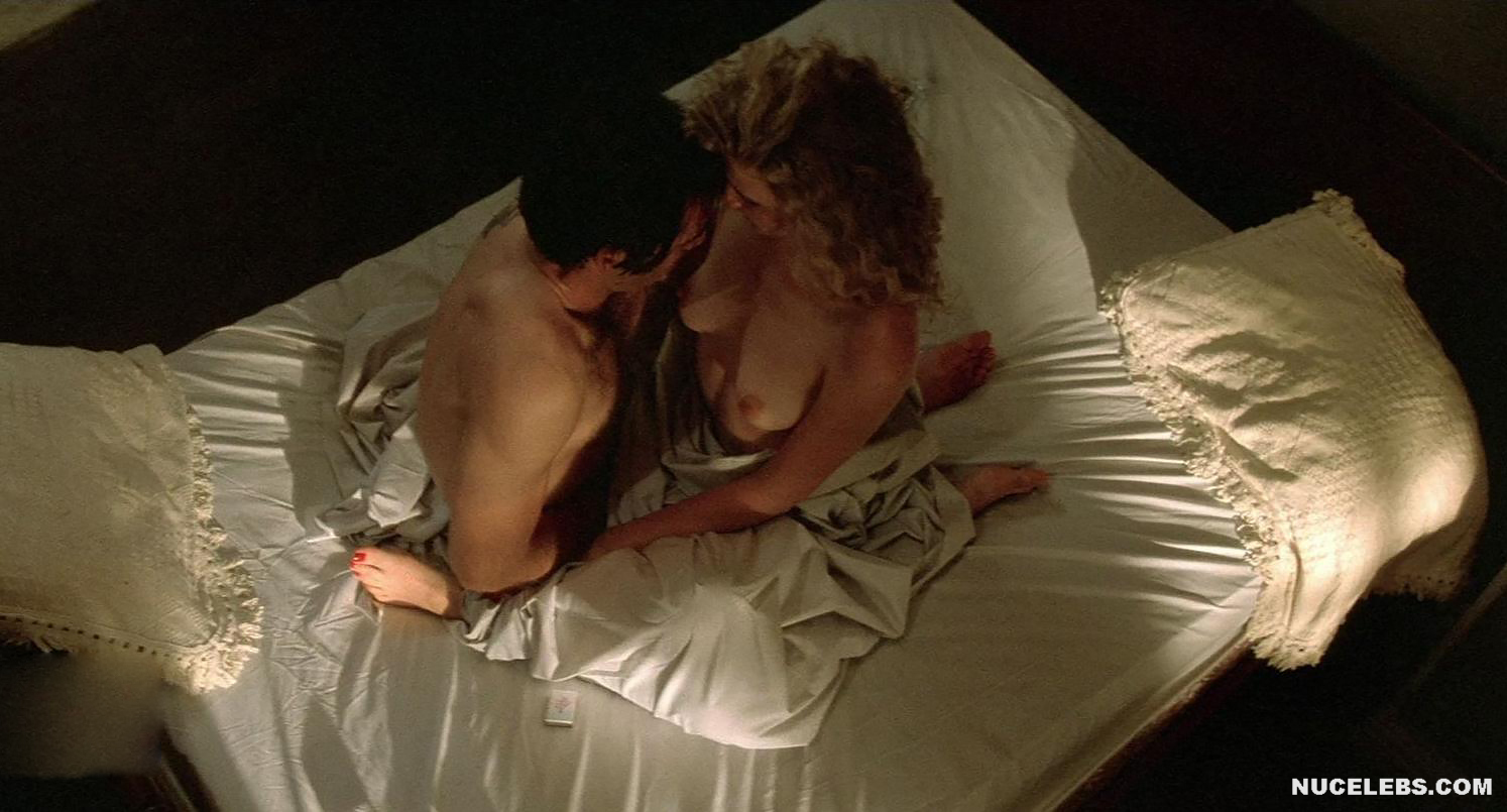 Laura Dern’s nude boobs she showed in Wild at Heart will drive you crazy. For example, in one of the scenes, this American actress was lying in bed, wearing a transparent white nightgown, through which her brown nipples were visible. And in another scene, this curly-haired blonde passionately fucked a man on the bed. Oh, Laura Dern’s nude tits looked incredibly seductive as she had sex in various positions.