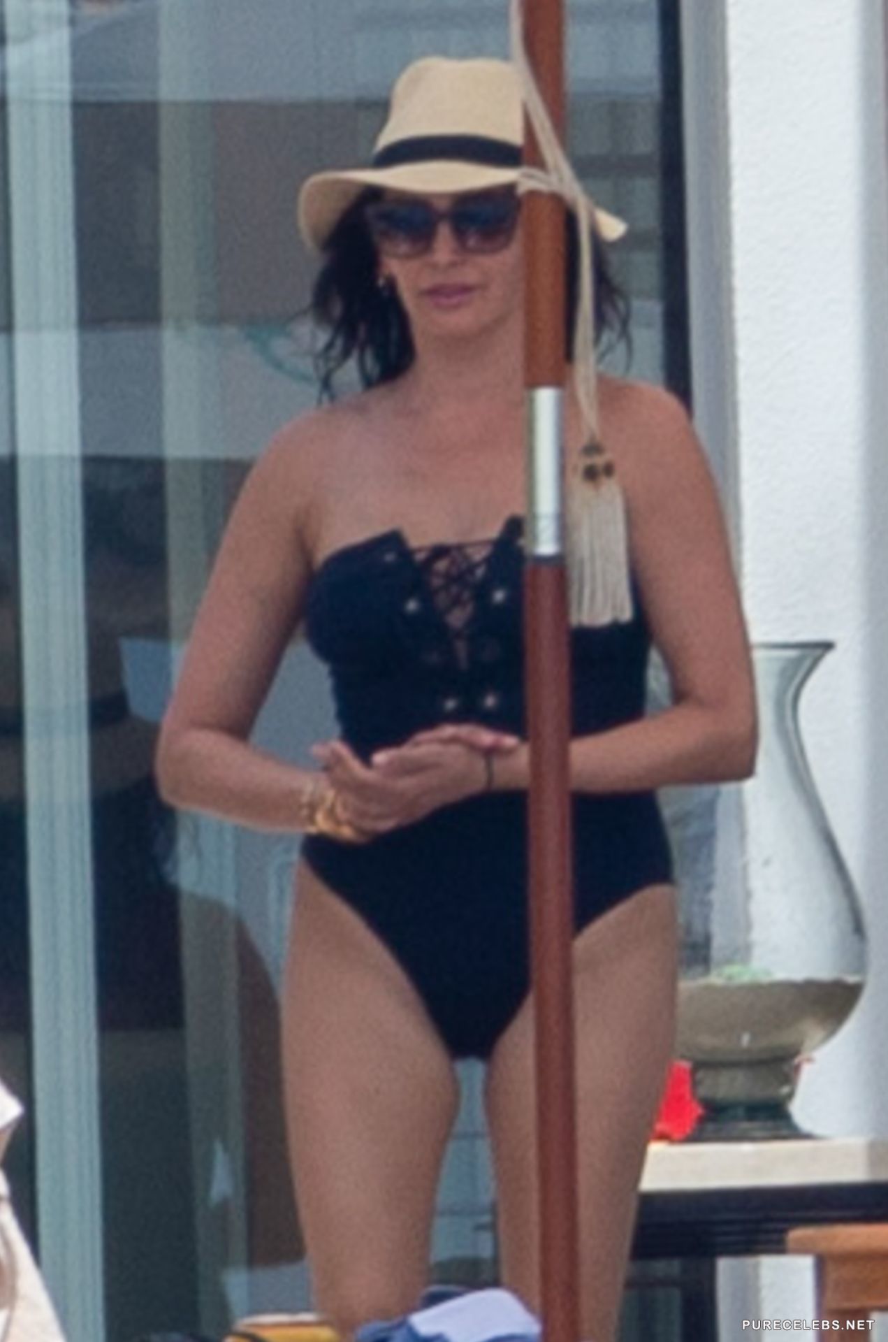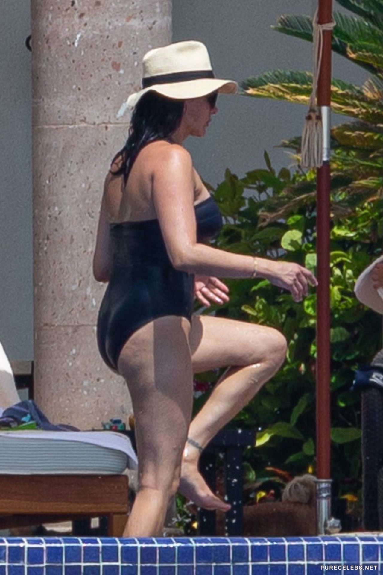 Paparazzi constantly monitor the socialite Lauren Silverman, and they recently caught her when she was relaxing by the pool. The charming beauty was dressed in a black swimsuit, a large light hat and black sunglasses. It is worth noting that the booty of this celebrity looked incredibly sexy in a wet bathing suit when she left the pool. And her beautiful boobies were ready to jump out of a small swimsuit at any moment.