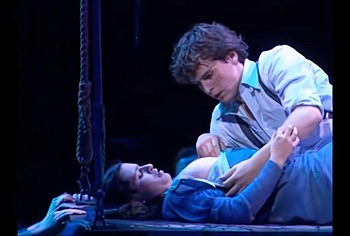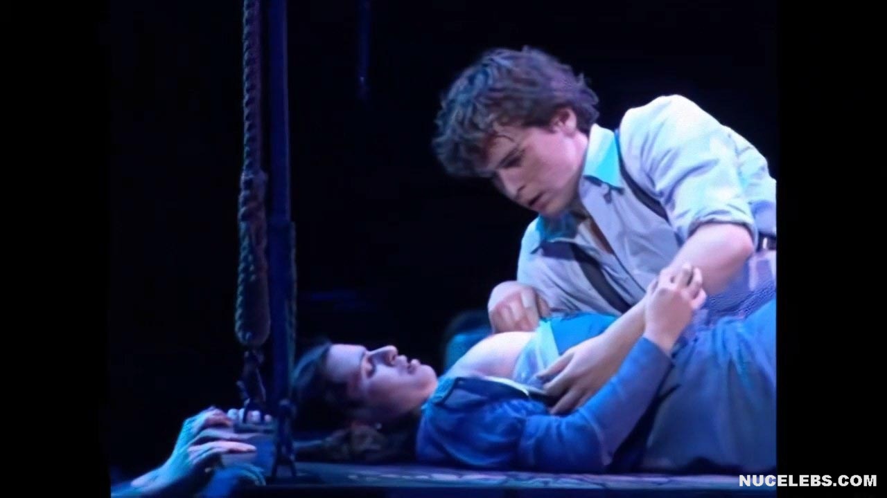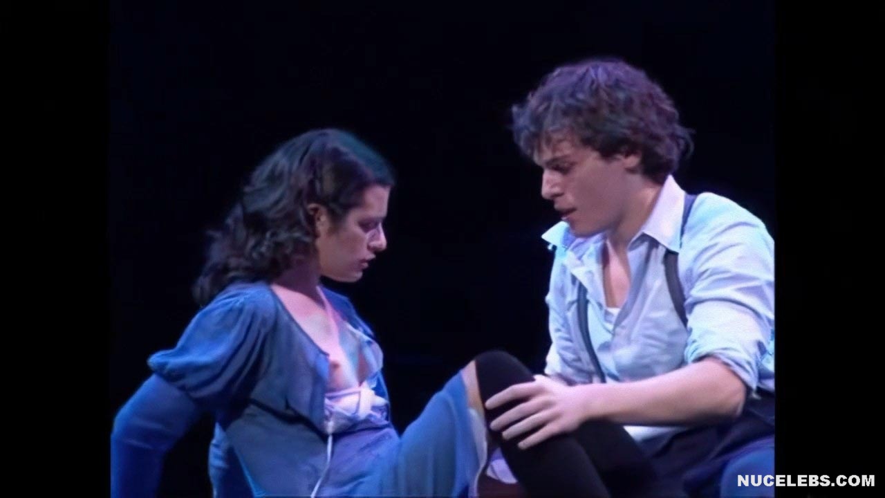 American actress Lea Michele showed her nude boobies on stage! So, this beauty starred in a hot erotic scene with a man. She was lying on a large swing, and the man was kissing her and unbuttoning her clothes. Lea Michele nude titties with brown nipples jumped out of her dress looked so tempting! The couple kissed so passionately that it looks like everything could turn into sex right on the stage!