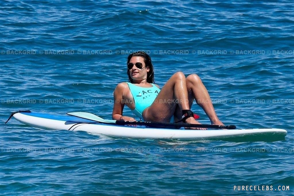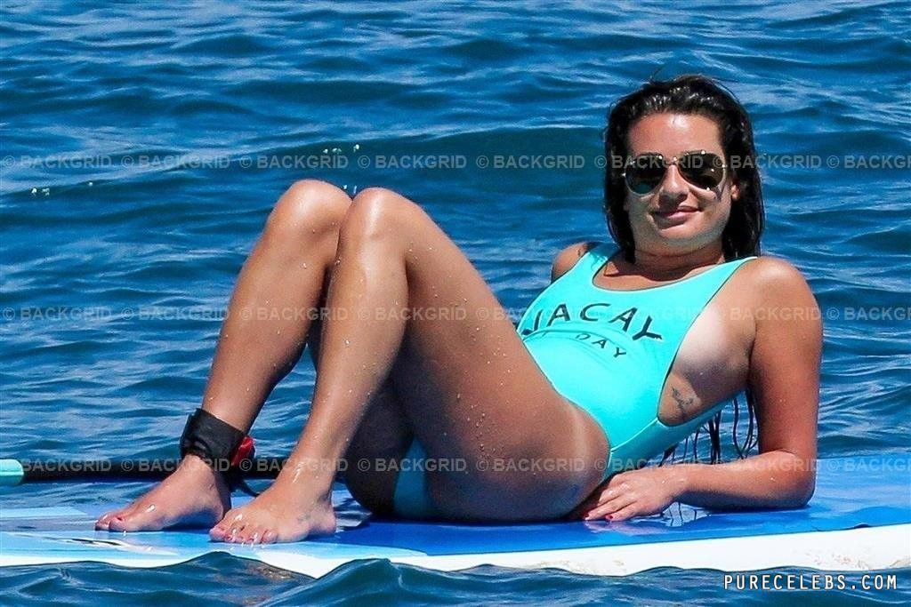 American actress and singer Lea Michele looked very sexy in a wet blue bikini. Paparazzi managed to catch this hot beauty just during her beach holiday. Well, it is worth noting that the juicy ass of this celebrity looked very sexy in a tight swimsuit. In addition, the swimsuit had a rather low neckline. Therefore, it seemed that Lea Michele’s nude boobs could slip out of it at any moment.