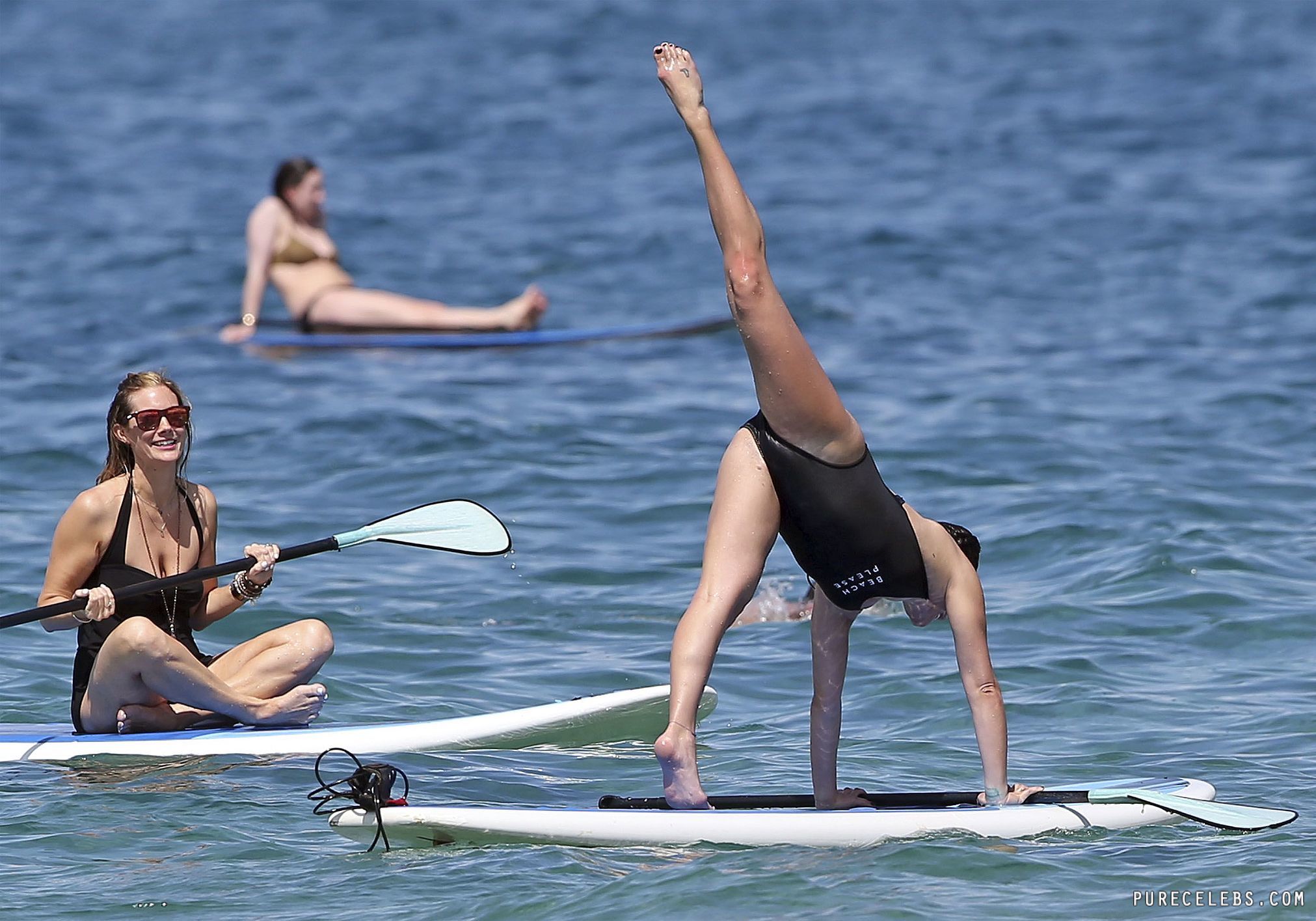 Hollywood star Lea Michele is currently on a holiday at the sea! And she simply can’t stop teasing men there on the beach! This time she was caught by paparazzi flashing her big butt in a tight black swimsuit! She simply loves bending over while standing on a surfing board! And being bended like that she makes her ass even sexier! By the way, you’ll see her pokies as well!