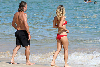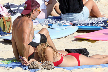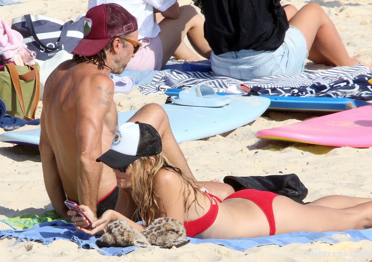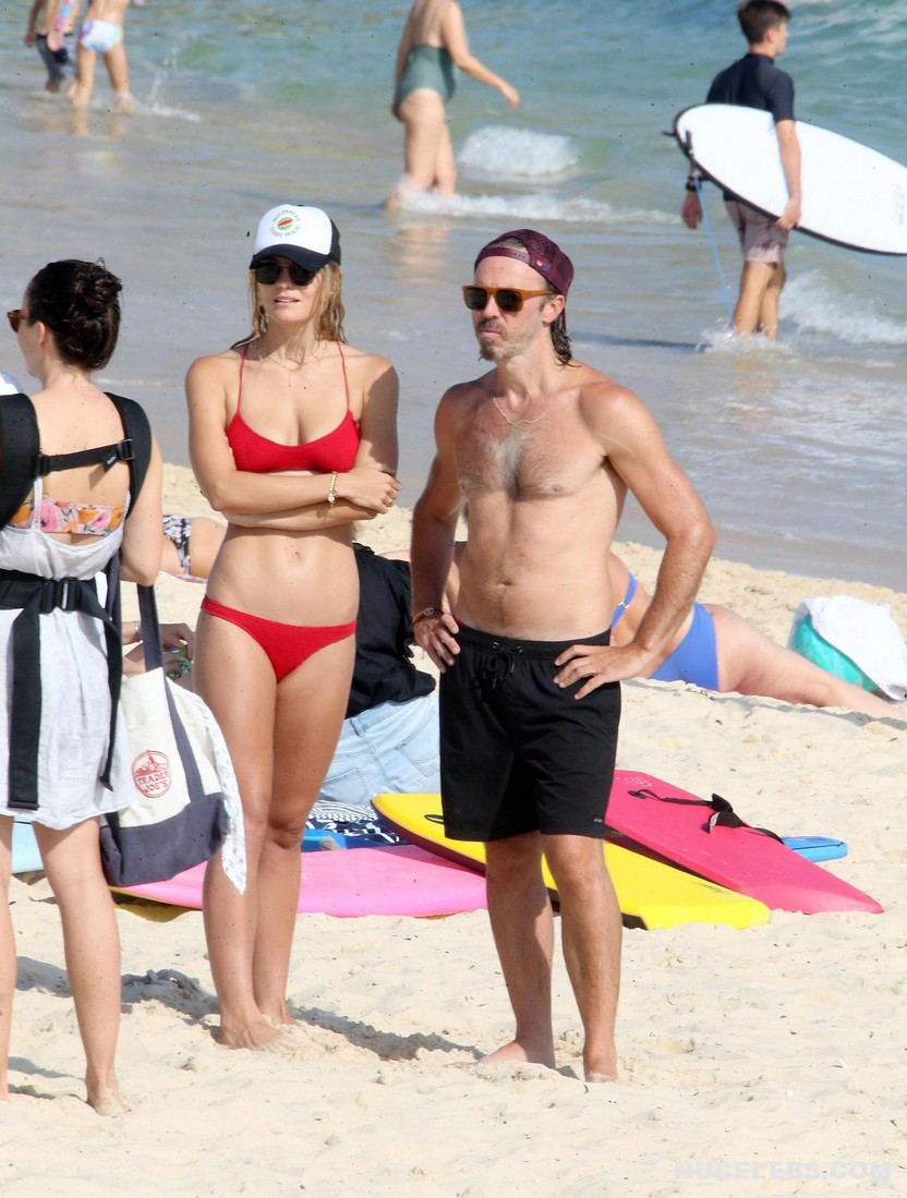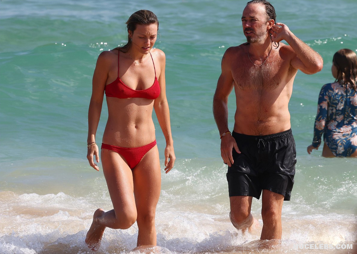 It’s time to admire the pictures of 29-year-old beauty Leila George. All eyes on the beach were on this blonde as she emerged from the water. And this is not surprising, because the wet red bikini perfectly fitted Leila George’s nude boobs and ass. As you can see, this beauty has an awesome figure, and every girl can envy her narrow waist and slender hips. Although this time Leila George did not show her nude boobs, but her poking nipples were perfectly visible through the wet bra.