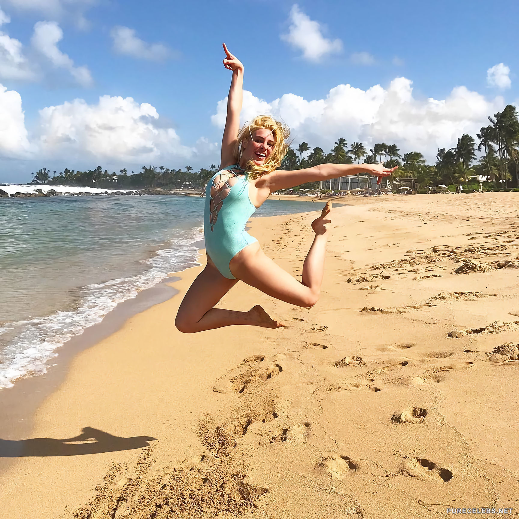 Bootylicious blonde nymph, Lele Pons likes to pose for the camera and certainly knows what to do to look as fuckable as she can. This set of photos from various moments of this honey’s life show us that she is steamy hot in every occasion, wearing a bikini, robe, one piece swimsuit or just underwear, covering her boobs with her hands. When she is giving, she is giving it all.