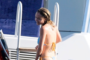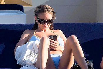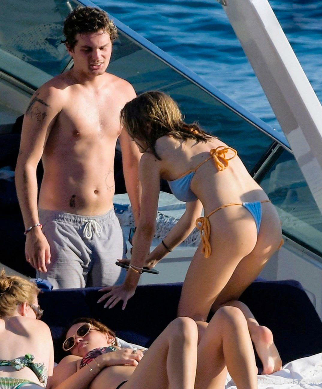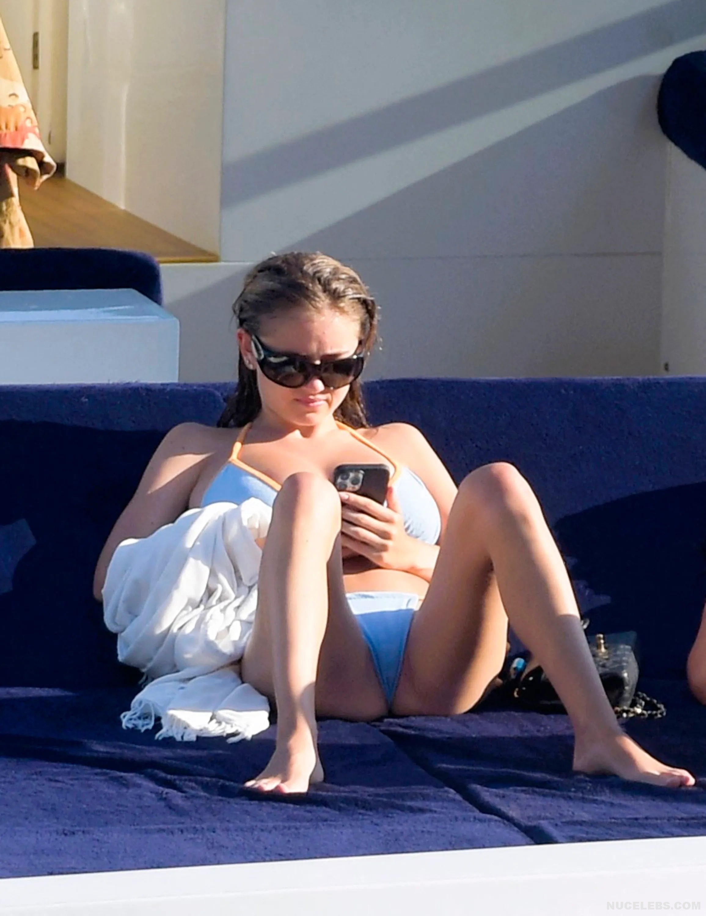 Leni Klum captivates the audience with her enchanting beauty. Discover how this hottie finds solace in the gentle lull of the waves and the warmth of the sun. Namely, they managed to capture the moment when Leni Klum’s nude boob with a hard nipple appeared for a moment from her blue bra. Also, this 19-year-old girl went swimming and sunbathing in a red bikini. And when she emerged from the sea, her awesome cameltoe in a wet red thong looked amazing!