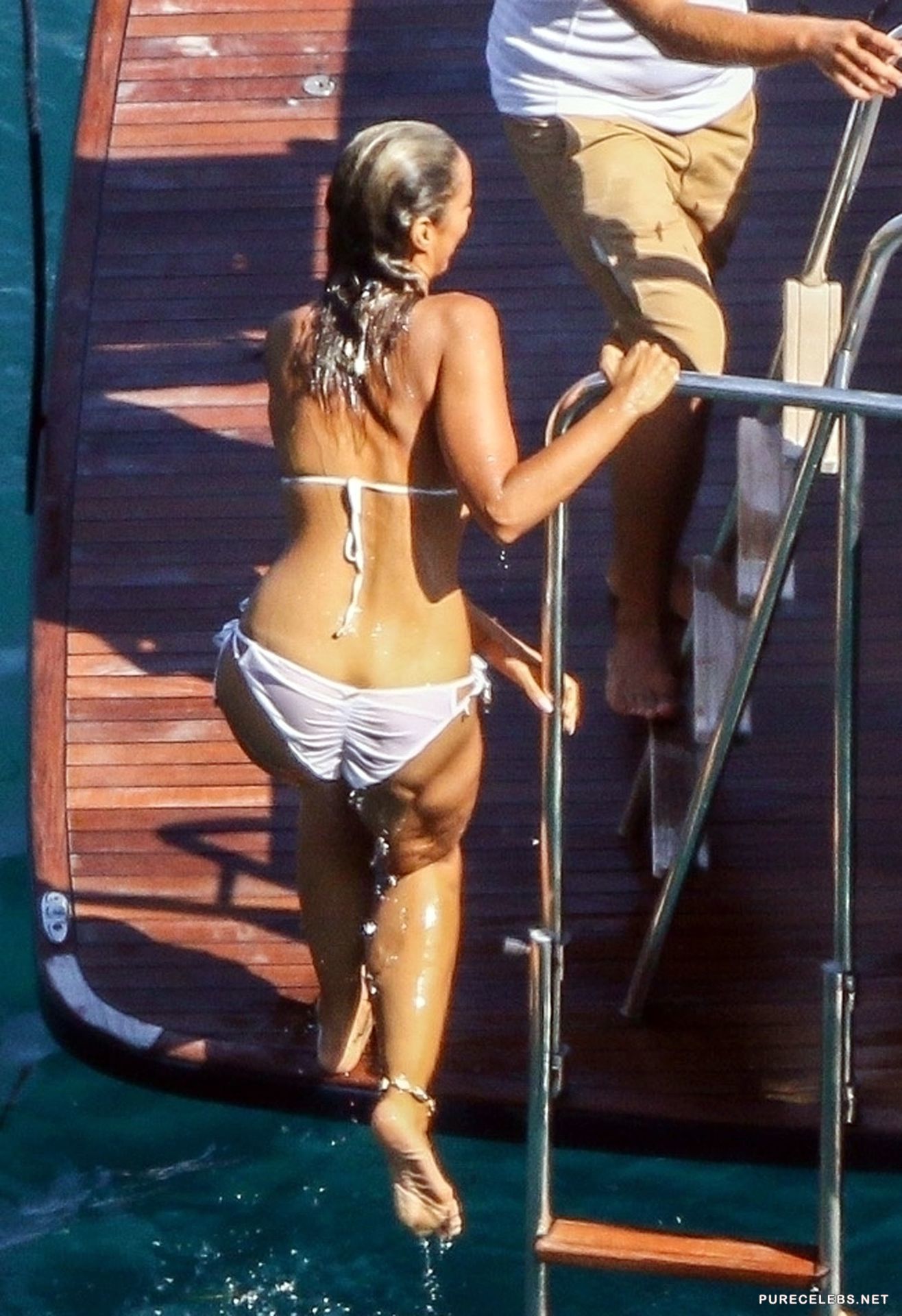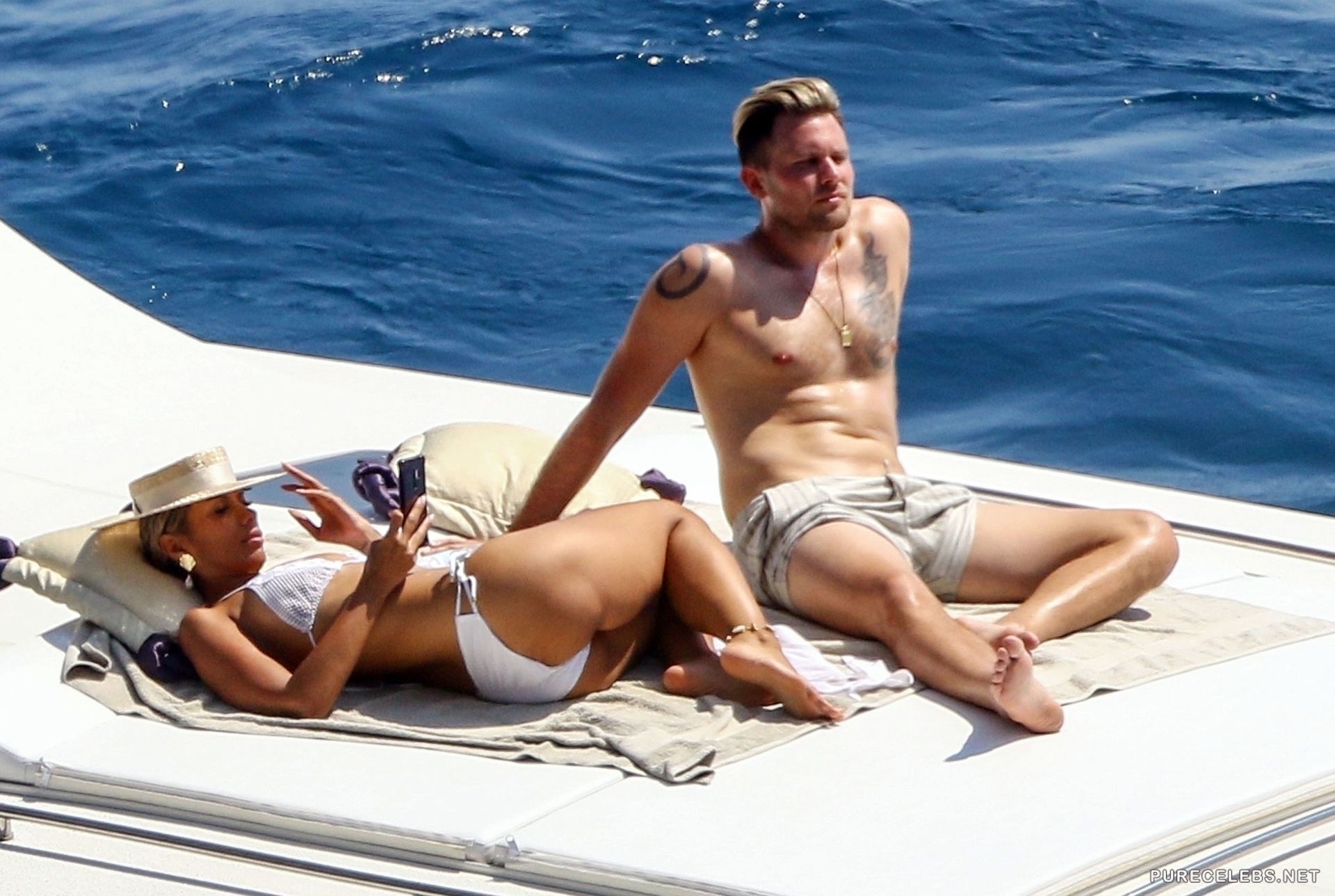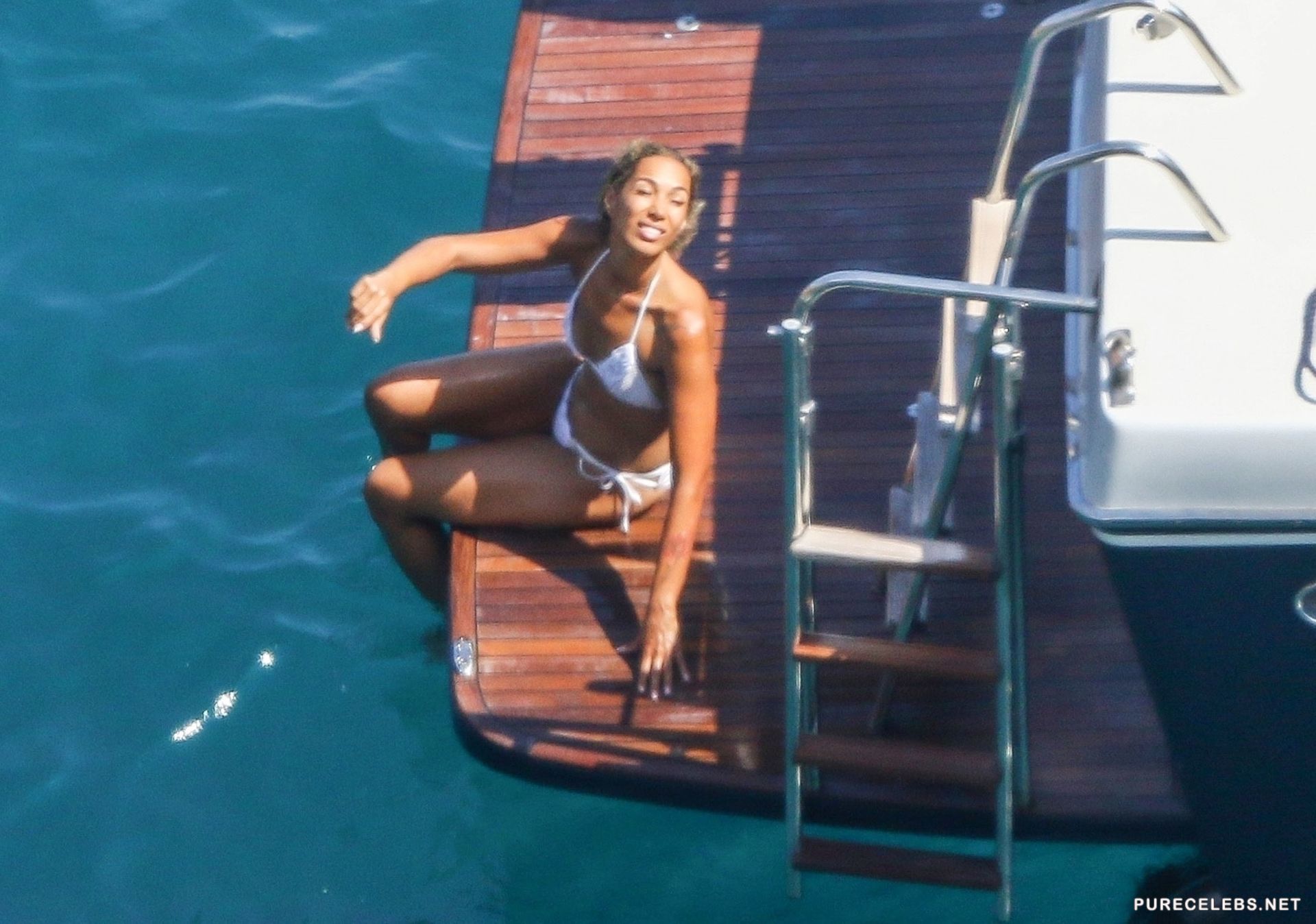 British singer Leona Lewis does not lose the opportunity to relax. Like many other celebrities, she prefers a boat trip. This charming beauty was wearing a white bikini that contrasted perfectly with her tanned body. Her ass looked very seductive in white panties. And her boobs at any moment were ready to jump out of her little bra. The celebrity was lying on a towel, exposing her flat tummy to the sun’s rays.