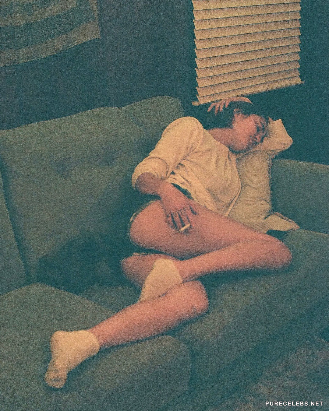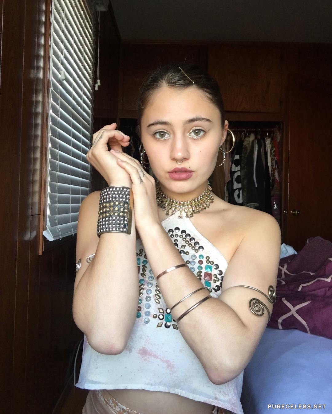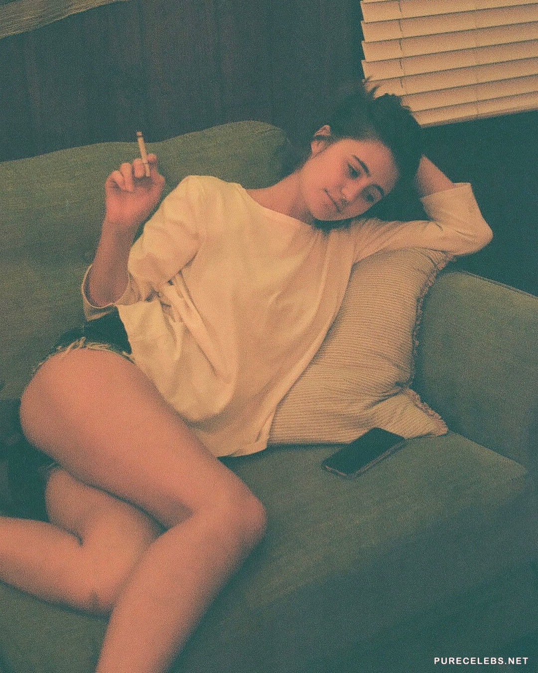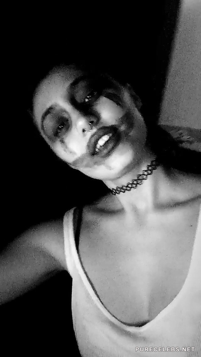 Since it’s not enough to give us sexy photos in erotic lingerie, here and there, Lia Marie Johnson decided to treat us with a sexy video, too. She is wearing only black, lacy bra with thin straps that make us all hope that they would snap, revealing boobs for a moment. To make sure that we saw it all, including a small tattoo there, she also made a close up.