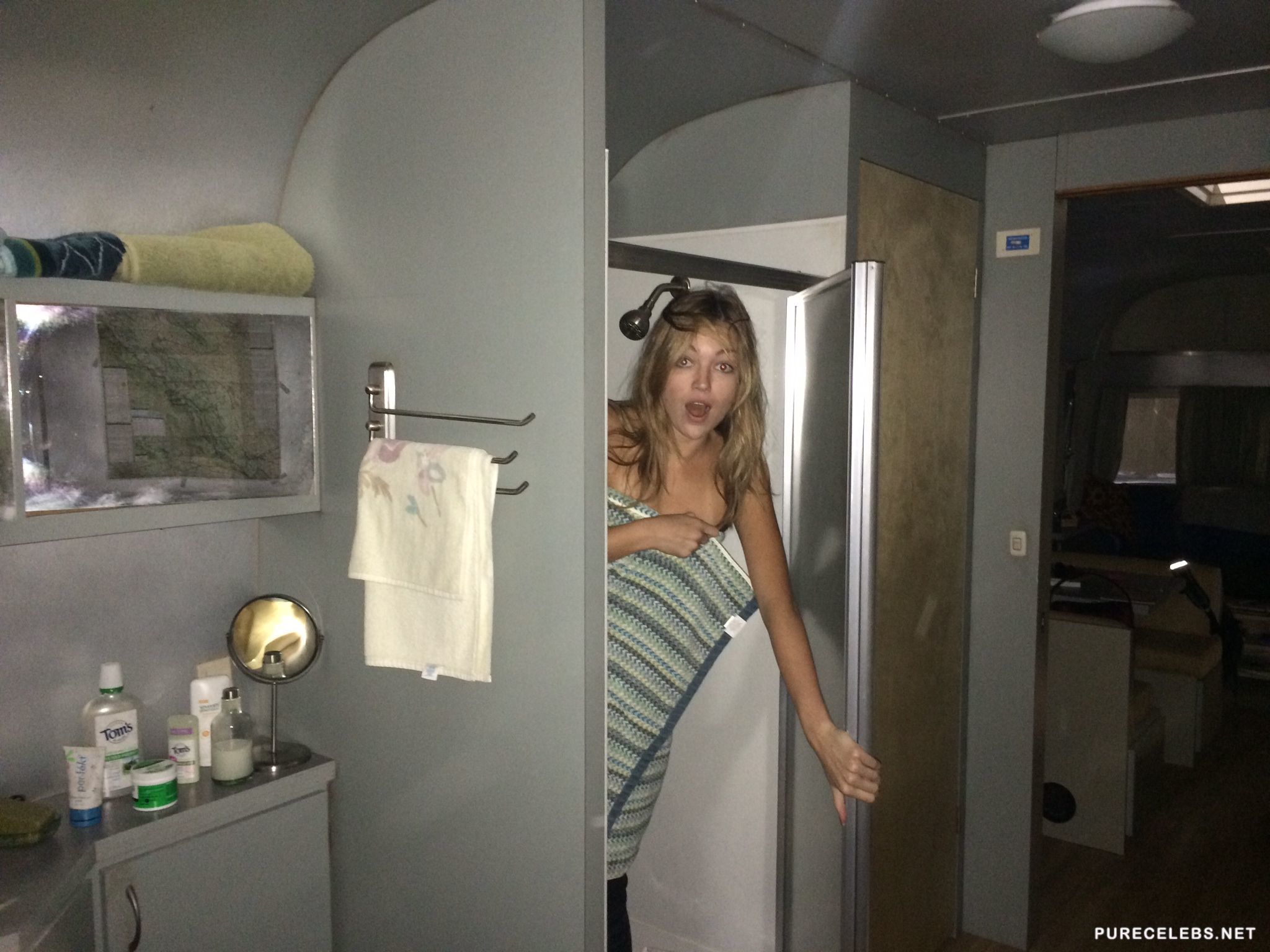 The start of this year was a very busy time for hackers who took part in The Fappening, nobody’s private nudes were safe and that includes Lili Simmons. Photos of this hot blond coming out of the shower were leaked to social media and by the surprised look on her face, you can tell she was not ready to pose. Her naked body looks excellent despite her efforts to conceal her tits and pussy with a large towel.