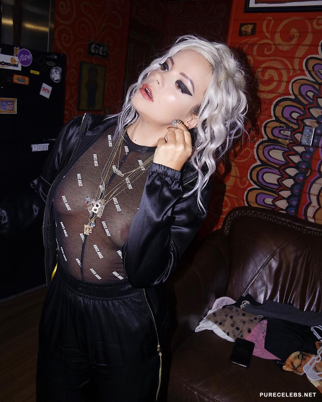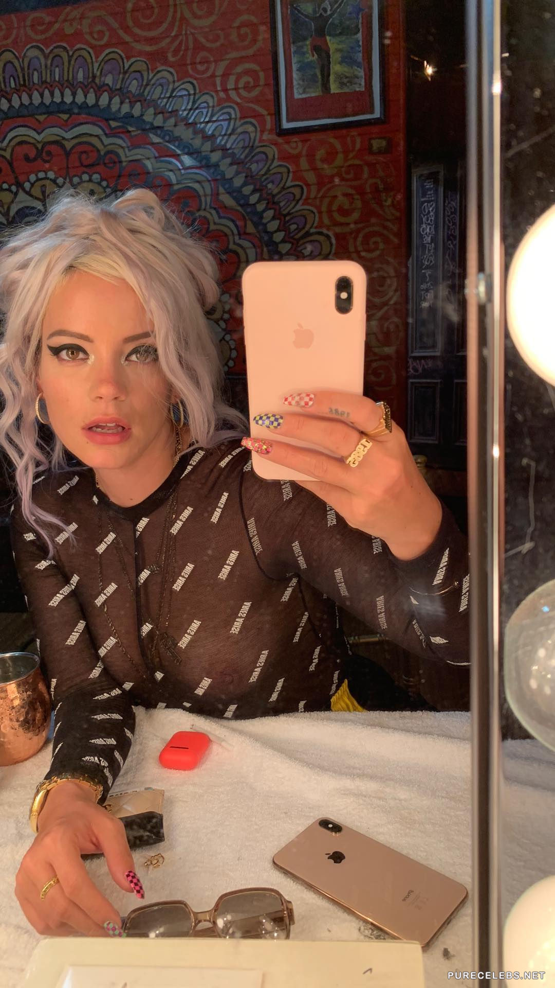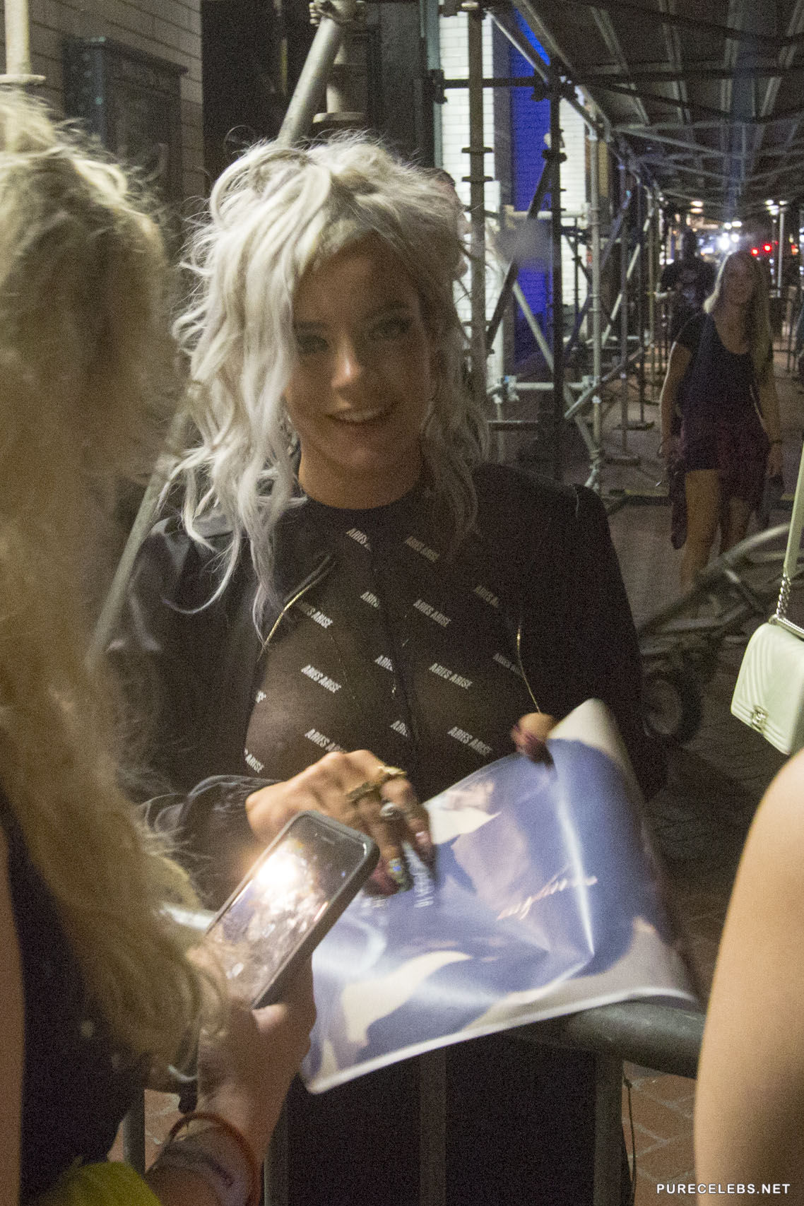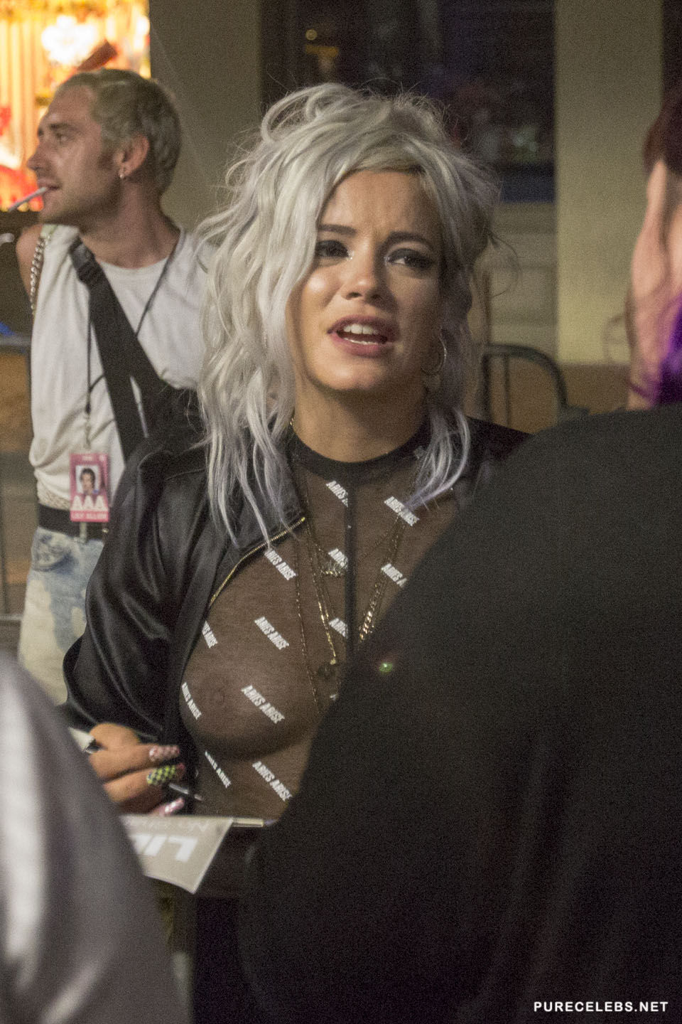 Lily Allen decided to wear a black, see through blouse and no bra for her performance at The New Orleans House Of Blues and of course, she got caught by paparazzi after going out, who would not miss an opportunity to take photos of her chest and even making some hot close- ups, to make sure that we will all get to see those titties, before she walks away.