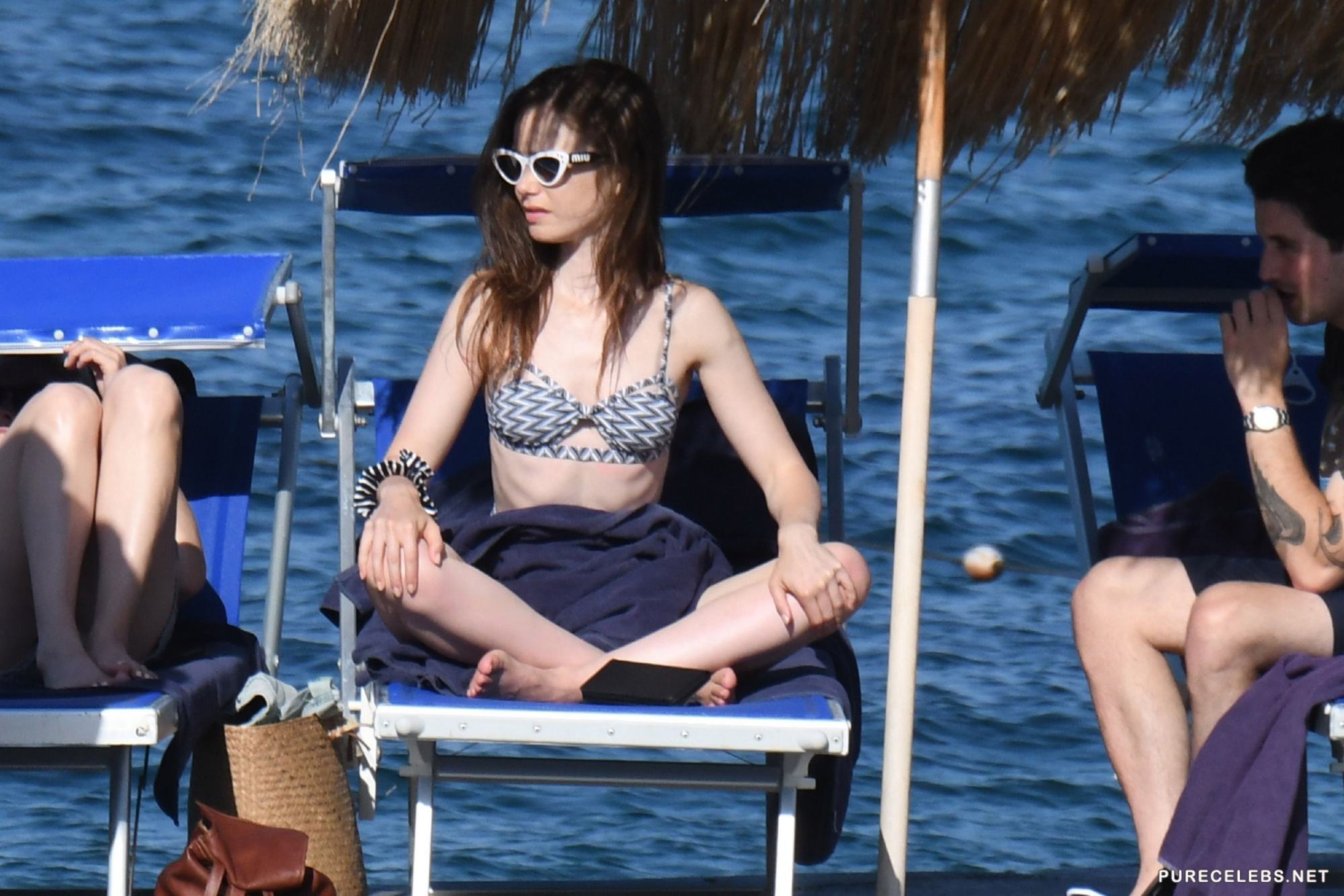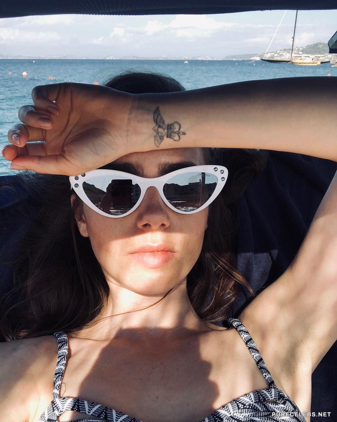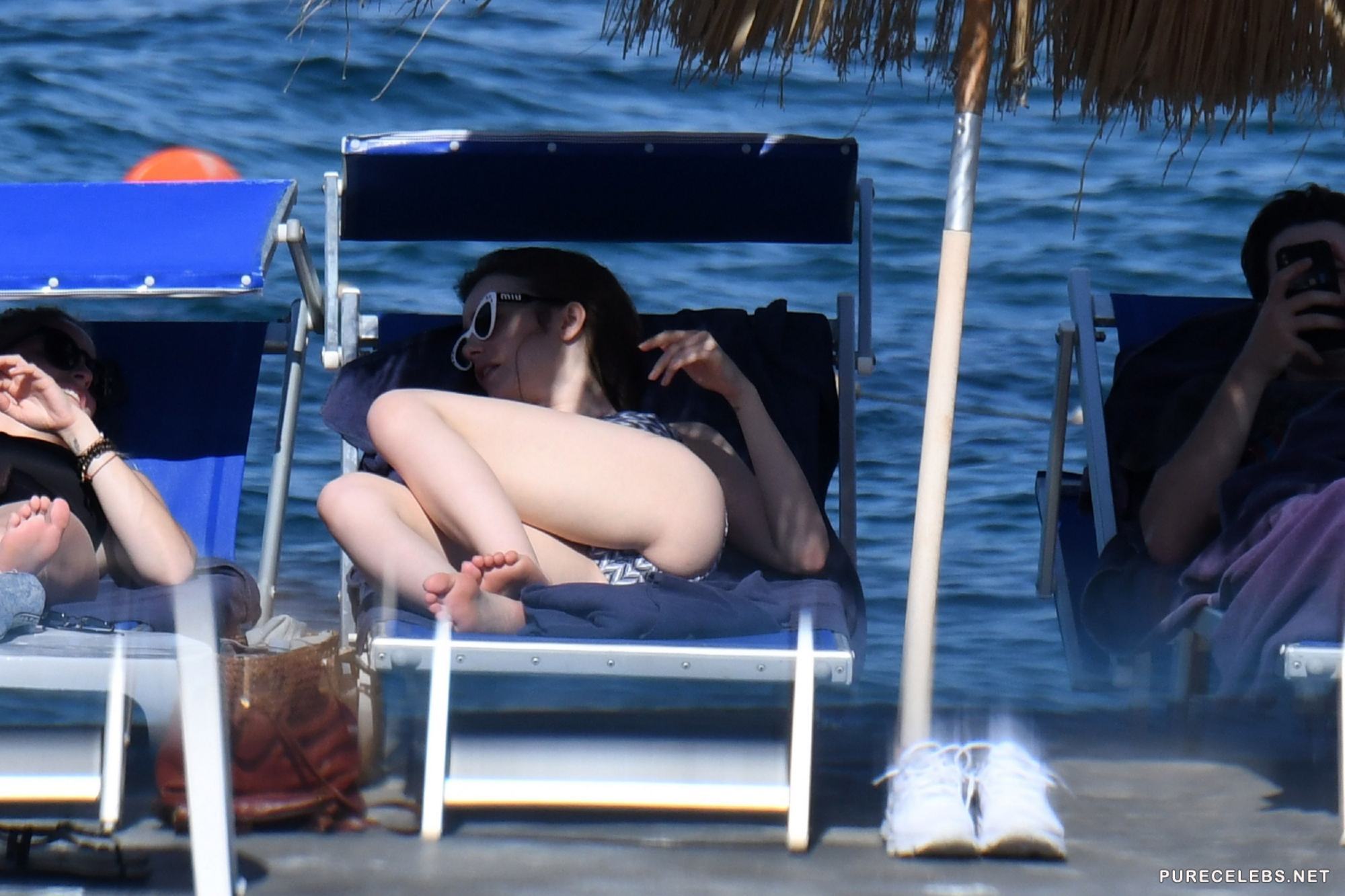 What could be more hot on an already hot summer day, by the sea? It is Lily Collins who has decided to relax from all the work she was doing lately and simply enjoy spending some of her well earned money. This slim beauty kept changing from a bikini to a one piece swimsuit, refreshing herself in the water and sunbathing all day long and just looking so hot.