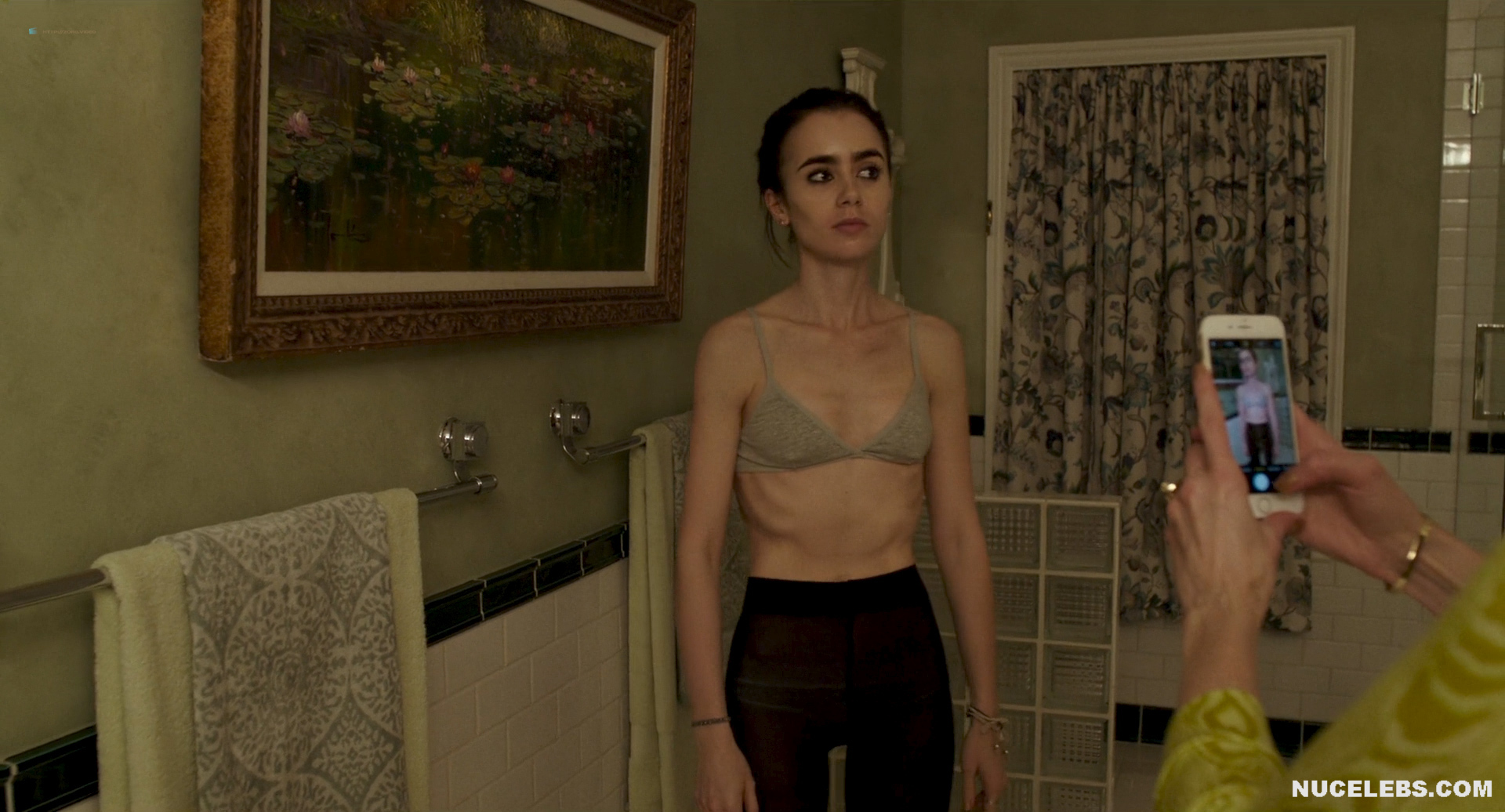 Lily Collins joined the list of celebrities nude in movies. This charming actress gave an amazing performance in To The Bone (2017). In some scenes you can see her posing in lingerie. However, the most memorable was the scene in which Lily Collins lay nude on the sand. This was a great opportunity to get a better look at her naked, skinny ass, as well as her sweet titties.