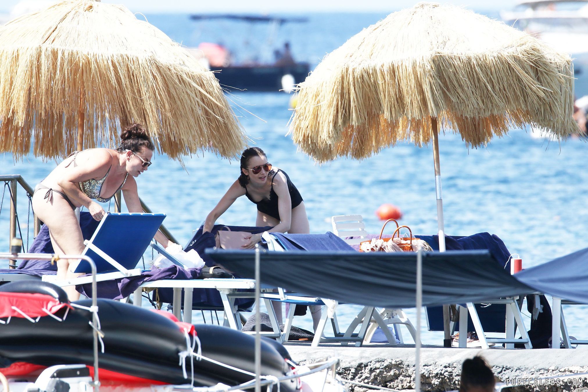 American actress Lily Collins showed her nude boobies right on the beach! Nimble paparazzi managed to catch this piquant moment. So, the celebrity was wearing a black swimsuit with a very low neckline. Therefore, it is not surprising that when Lily Collins leaned over her awesome nude titties slipped out of it. It is worth noting that it looked very sexy! Particularly seductive were her small hard nipples, which I would love to lick.