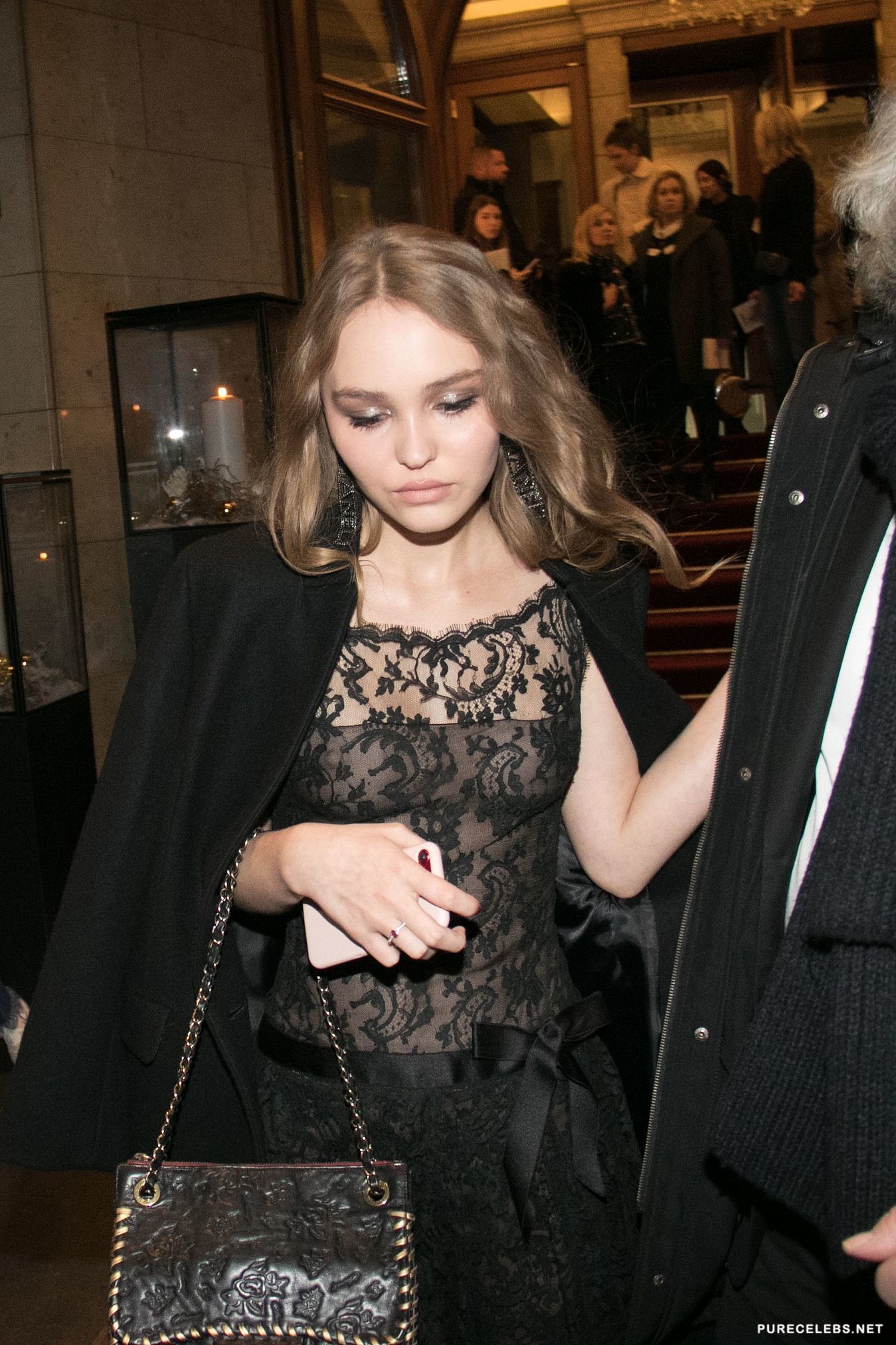 Lily-Rose Depp is 18 years old daughter of Johnny Depp and his French wife Vanessa Paradis and we can say that she’s good looking just as her parents. If you don’t trust our judgment then you just need to see these paparazzi shots. Lily is dressed in a very elegant black outfit which outlines her nice titties in the perfect way.