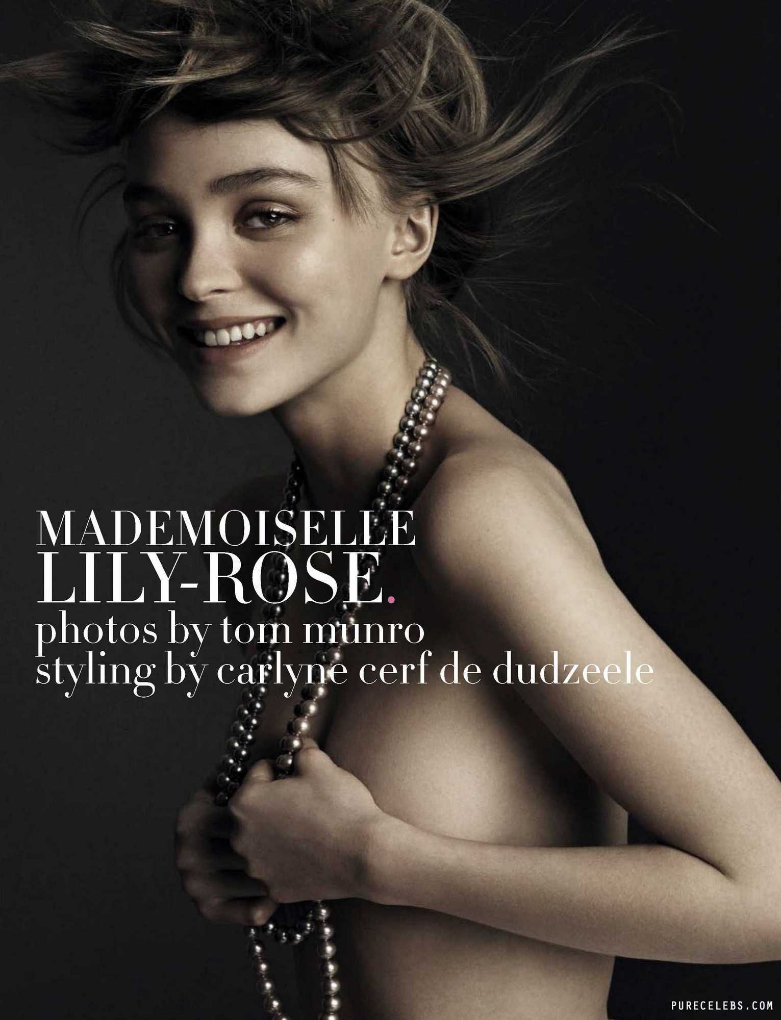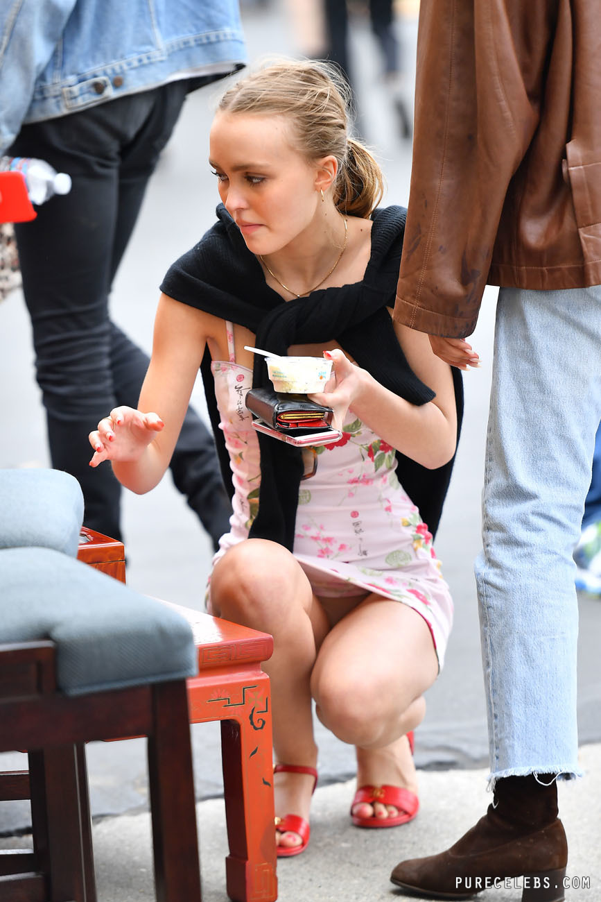 American-French actress Lily-Rose Depp is not shy about showing off her nude body. So, she posed topless for the cover of the magazine. There was a necklace on the celebrity’s neck, which she held with her hands, covering her bare breasts a little. In addition, paparazzi also caught this beauty in a short white dress on the street when she sat down . It was a great upskirt moment! So you could see the white panties of Lily-Rose Depp, which covered her nude pussy.