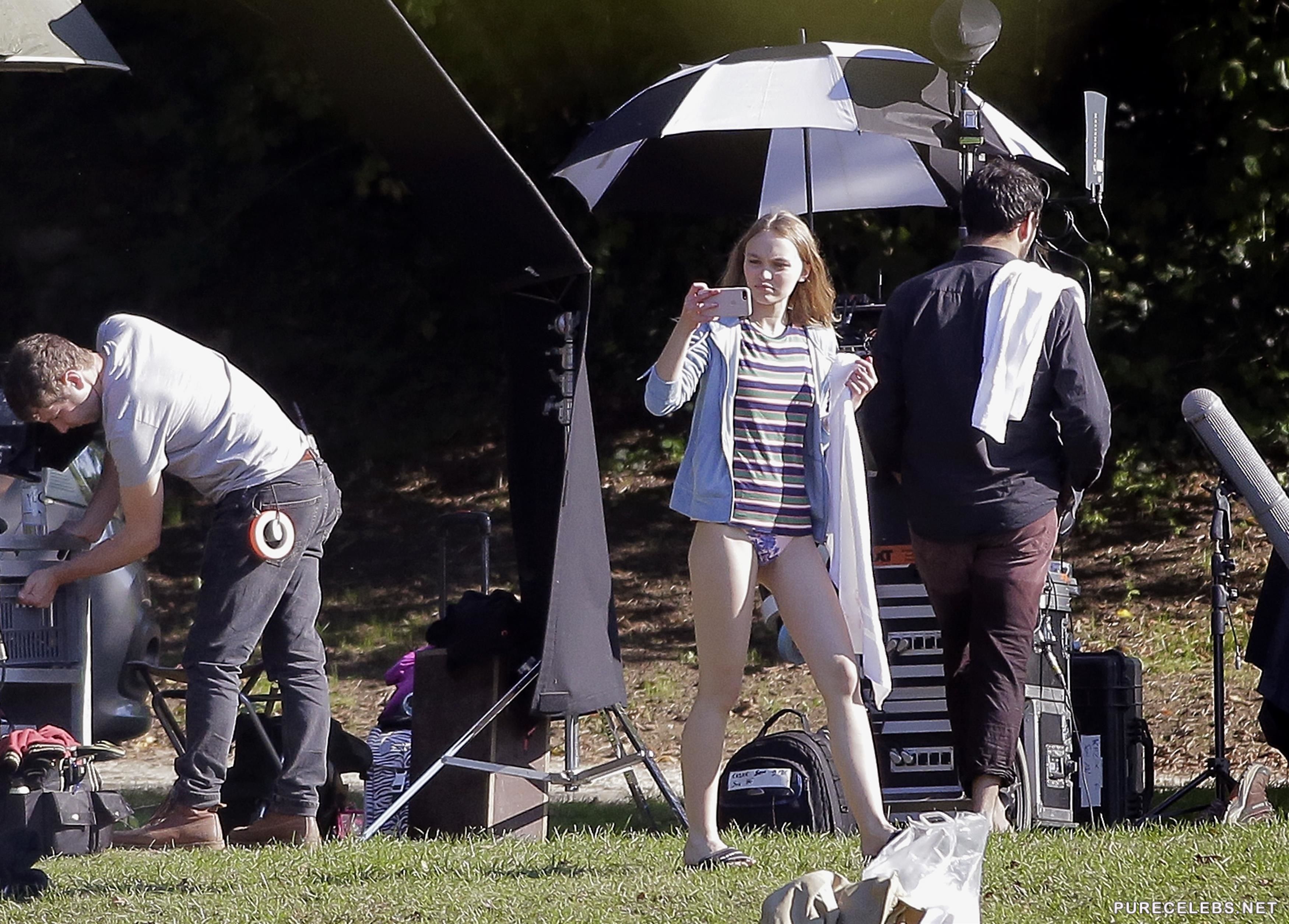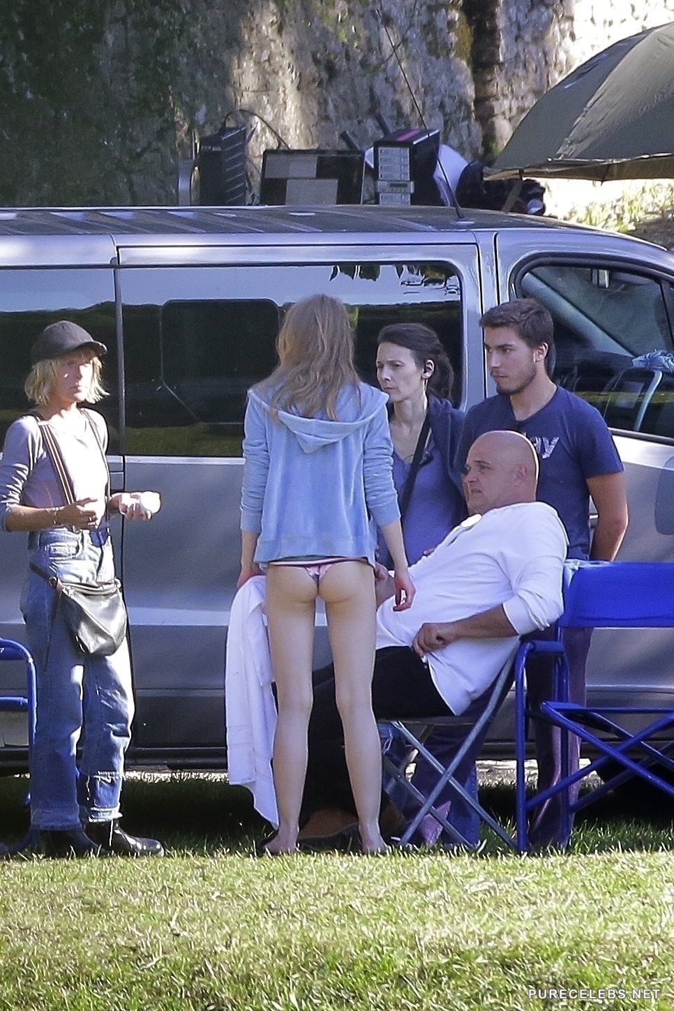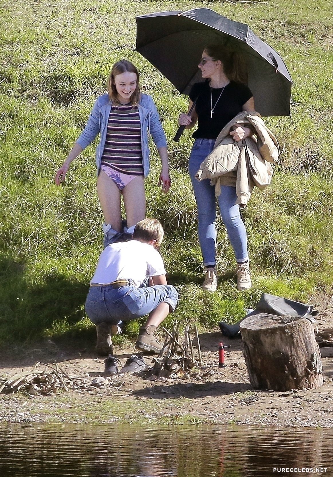 Sun and smooth pale skin are making this young model look radiant. Lily-Rose Depp has that unique Lolita look, but we all know what that means. As she just recently turned eighteen, this model is trying her best to look grown up and feminine as she can by posing for famous magazine. She sports big hoodie and only tiny bikini thong to accentuate her shapely legs and nice firm ass.