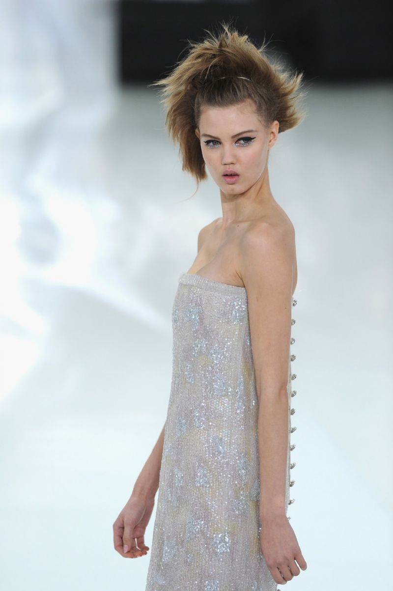 American model Lindsey Wixson loves to tease the audience, showing off her nude body. For example, she posed on a topless yacht and in pink shorts. Well, her petite boobs with hard nipples looked very seductive, right? This girl is not used to being in the spotlight of the public, thanks to her appearance, especially her “bee-stung lips”. Also, this beauty often appears in provocative outfits. For example, she posed in a black coat, showing her juicy ass in fishnet tights.