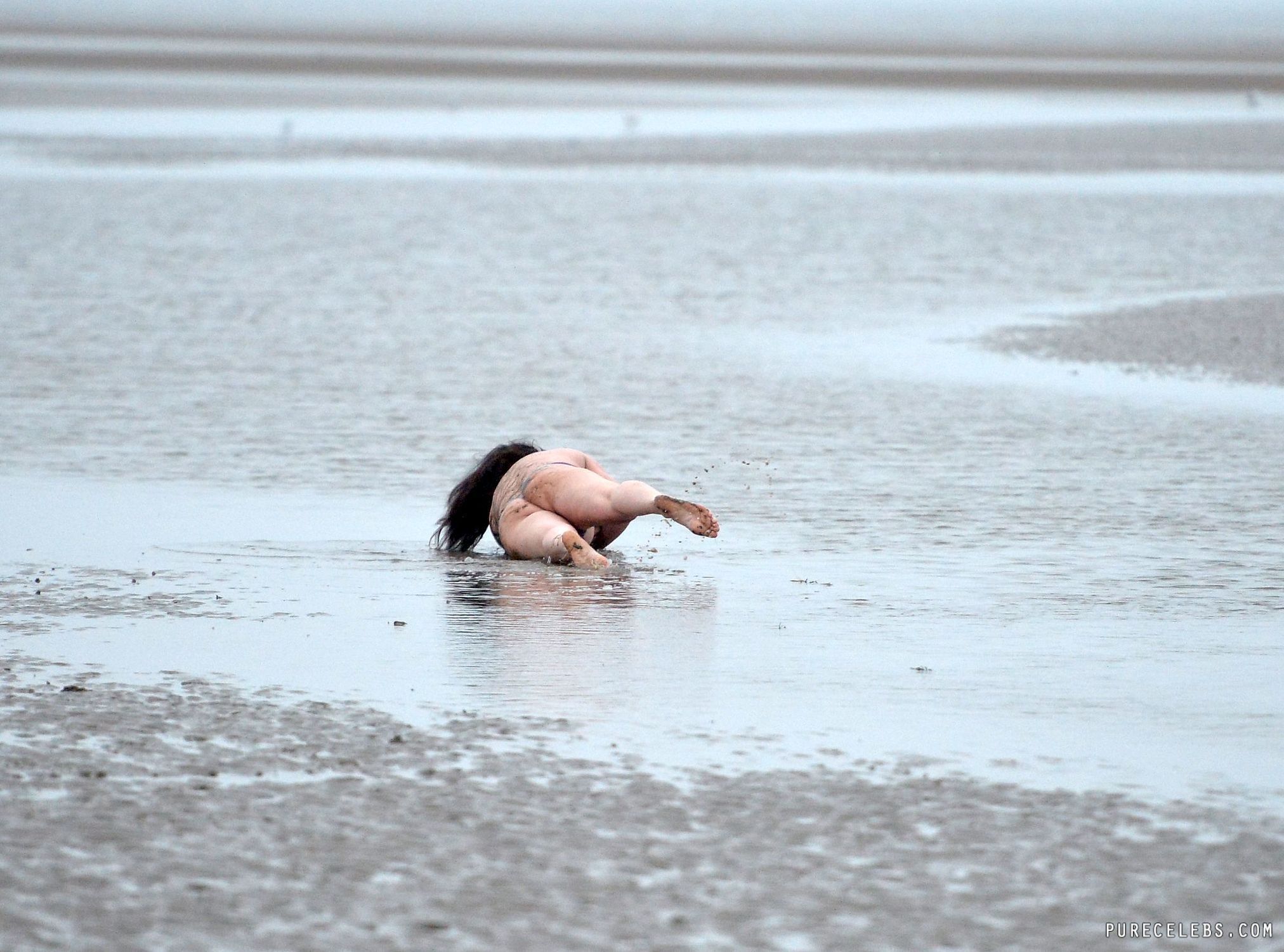 Brunette Lisa Appleton is TV personality from Britain. Her sex topless pictures surfaced on the internet after she was a little freaky during her last holy day and removed her bra as she went in the water and rolled around in the shallows. This hot MILF was having fun doing those kinky rolls exposing both her big juicy breasts and big booty.