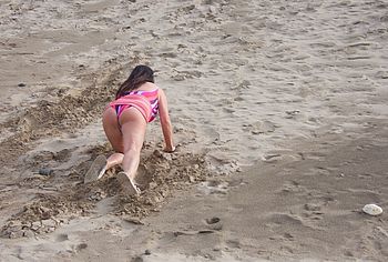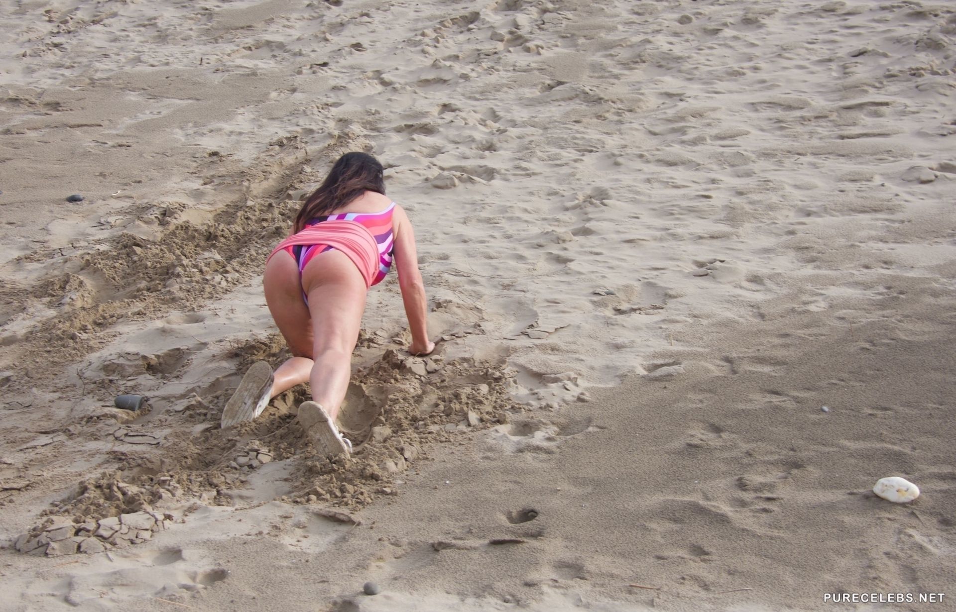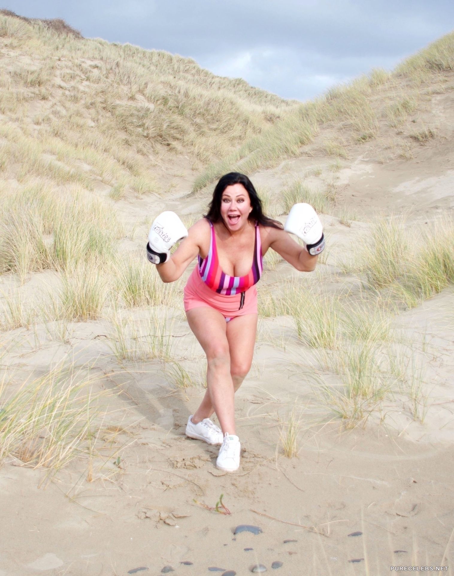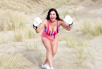 The former Big Brother contestant Lisa Appleton manages to get her tits out on the beach. She is preparing to have a fight with someone so she has her boxing gloves on and she pulls down her shirt so it seems like it is going to be a topless boxing fight. She may have overdone it on her lips, but she is still looking hot.