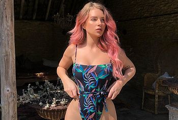 English model Lottie Moss will drive you crazy with her almost nude butt in a tight bikini. This celebrity posed in front of the camera in a tight-fitting black swimsuit with a multi-colored print. Her luscious breasts looked very seductive at that. But her chubby booty in the narrow thong of a swimsuit, which she flaunted, looked even sexier.