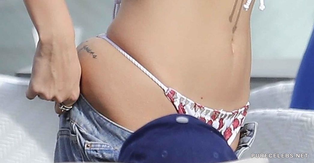 Hot young British model Lottie Moss is following in her sister Kate’s footsteps and pursuing a modeling career. Paparazzi reporters caught her while she was on vacation relaxing with her friends. The thin blond was wearing a bikini that barely covered her nipples and ass. She was happy to expose her smooth pale skin to the sun’s rays and we were happy to see her perky tits and petite figure.