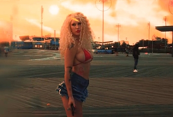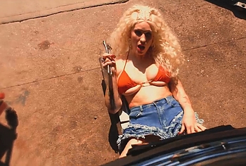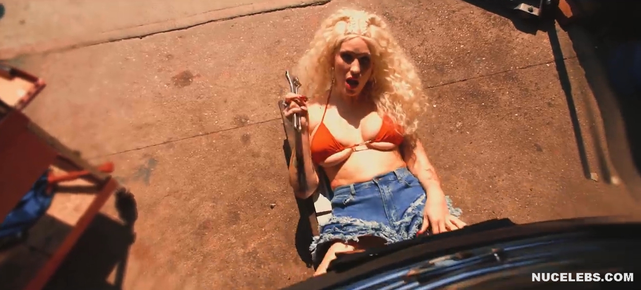Joyride. Well, these girls were very naughty and you can see for yourself. So, Lourdes Leon appeared there in a miniature bikini that did not hide her nude buttocks at all. And Eartheater sported her almost nude boobies, slightly covered with two pieces of orange cloth. Agree, these babes know how to ignite your imagination!