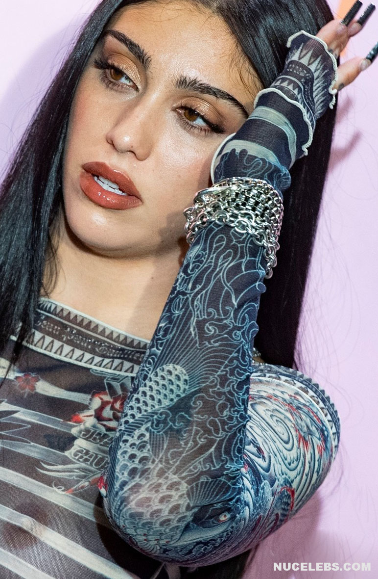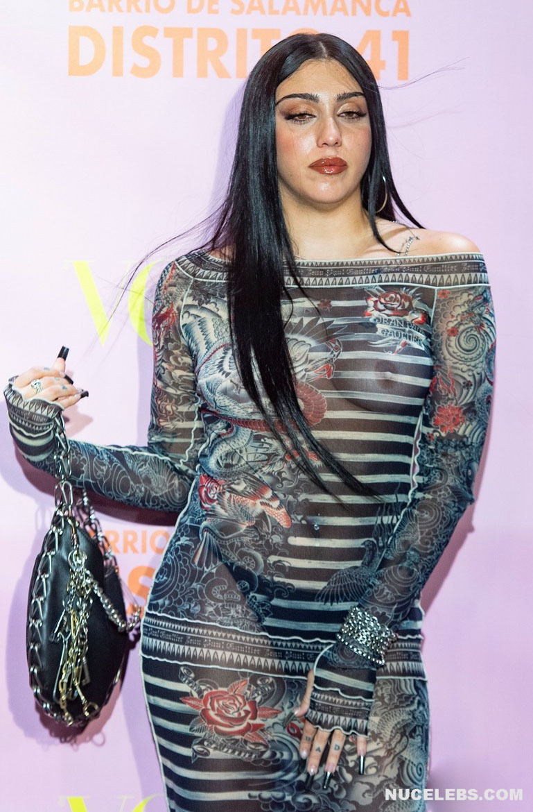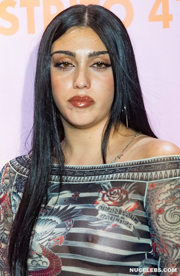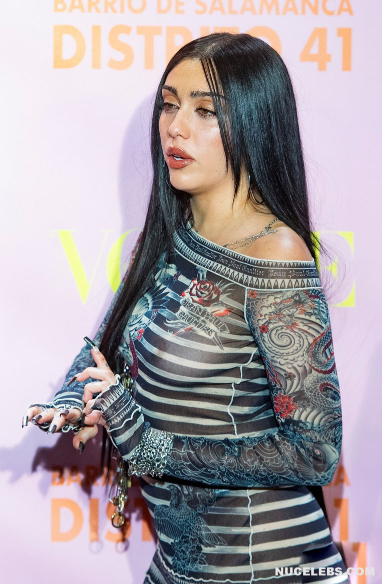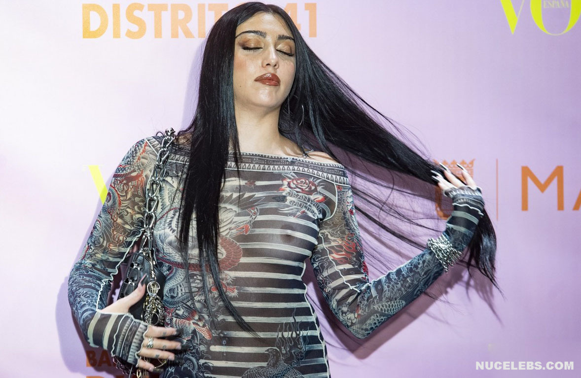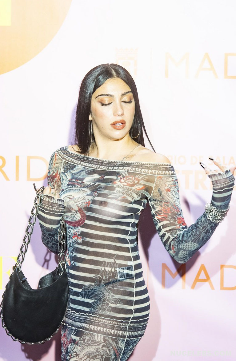 Lourdes Leon loves to tease the audience with her nude tits. Her graceful beauty and charisma have solidified her status as a fashion icon. This American fashion model allowed herself to appear at one of the events in a black striped translucent dress. And by the way, you could admire Lourdes Leon’s nude juicy tits through the transparent fabric! This celebrity happily turned around in front of the camera so you could check out her amazing breasts from different angles.