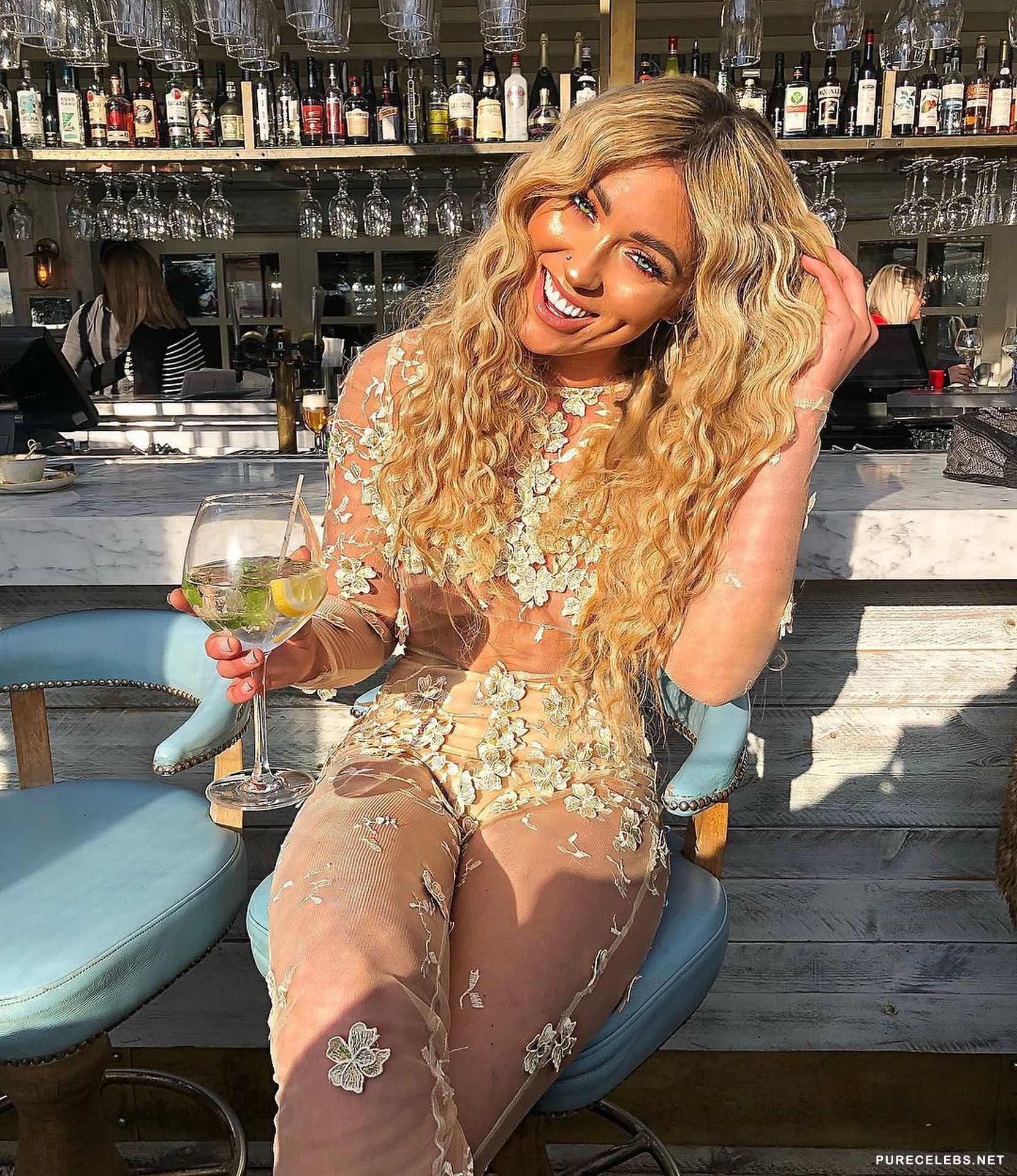 Sam Dewhurst, a reality star, best known for the Love Island, is constantly trying to draw attention to his fans and keep them interested in her. So recently she attended a party in a very provocative outfit. The star wore an unusual light suit that was translucent with little lace. In this costume, the star looked completely naked exposing her wonderful tits without a bra and her awesome ass in light panties.