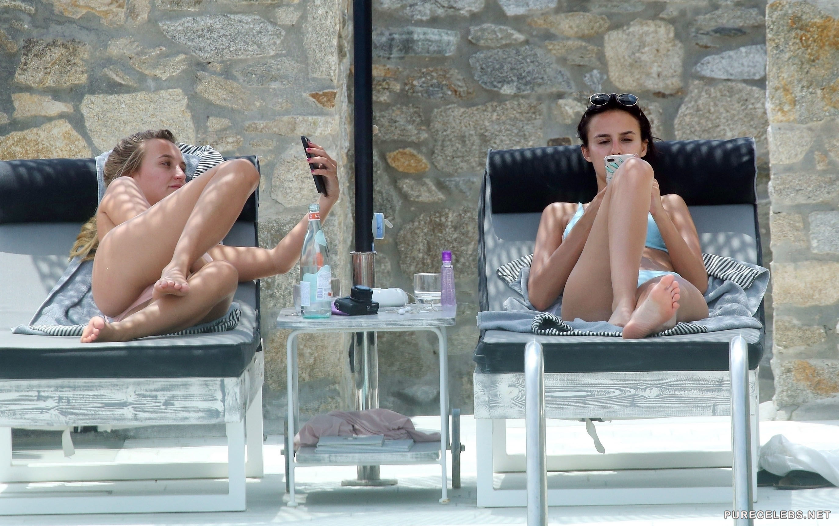 Lucy Watson & Tiffany Watson seem to be good friends and they like going to catch a tan together. They look like naughty babes that have fire between their legs and they add to each other’s allure while they are sitting on the lounging chairs this way in their swim suits. Check out how they adjust them in this series of pictures as the sun shines on their skin.